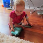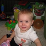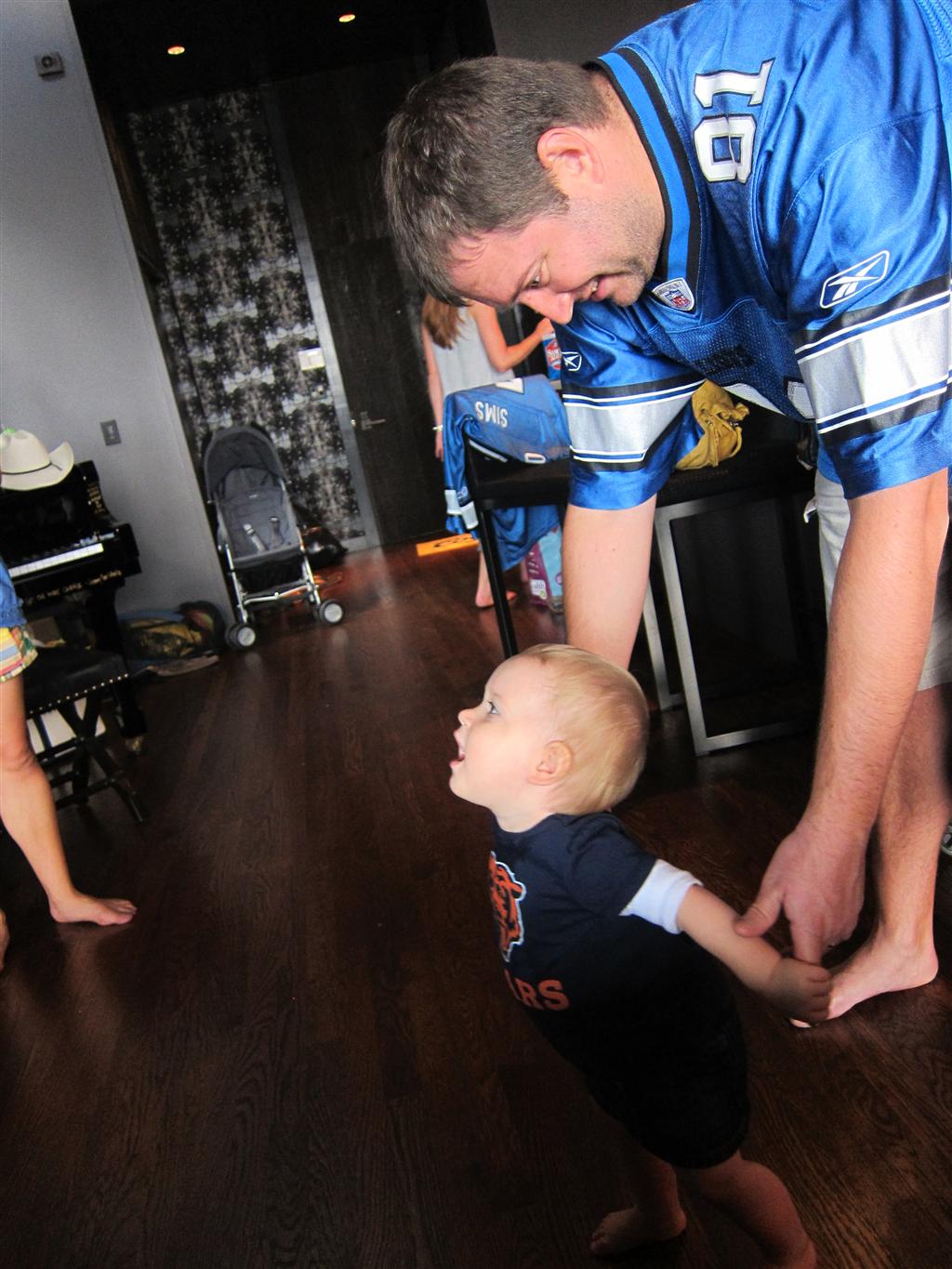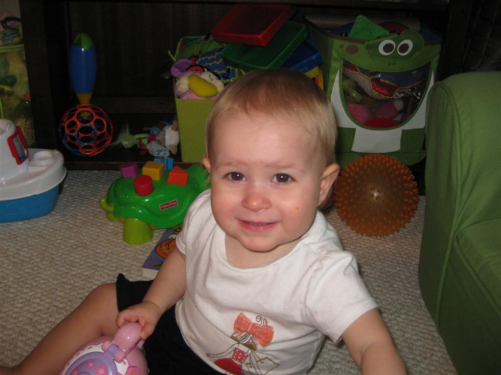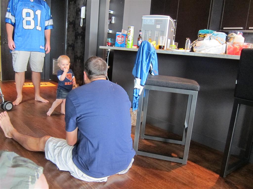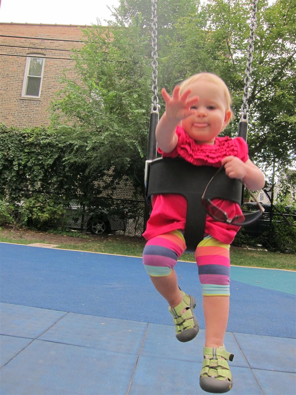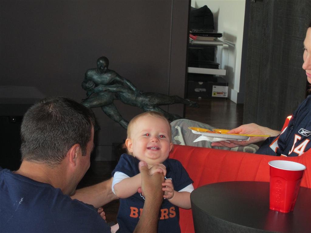 Eleanor celebrated the opening of the NFL season with a party at Uncle B’s house. She was sporting her new Bears outfit, but only because her Lions outfit doesn’t fit anymore. Dad will have to get her a replacement soon – I can’t have another Bears fan in the house. Eleanor also turned 13 months this week – although we took the official pictures a few days late (whoops!). We also had a few firsts this week – including going down a slide on our tummy, and successfully turning over the shape sorter to find the correct hole. Next week – algebra.