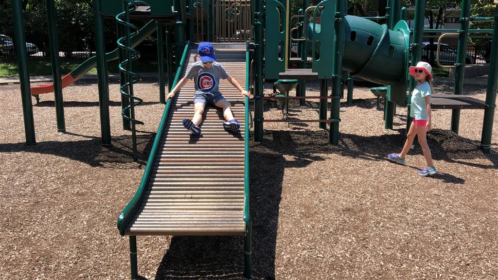 Henry and Eleanor were rooting for the Cubs this week, with a fun outing to Wrigley Field. We ate lots of snacks, and showed mild interest in the game till about the 6th inning. We managed to stay for the 7th inning stretch, and then we were headed home. All in all a successful outing! Eleanor had soccer camp with her friend Lincoln, Henry was supposed to as well but his was cancelled at the last minute. We also managed to fit in an overnight with Lala for Eleanor, and lots of park time. Eleanor mastered riding her bike, which was very exciting. Henry is getting close as well, but currently isn’t highly motivated to keep trying.