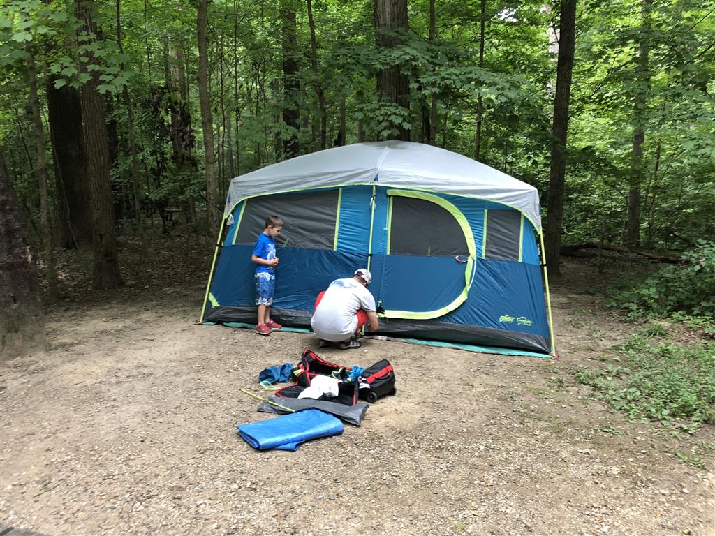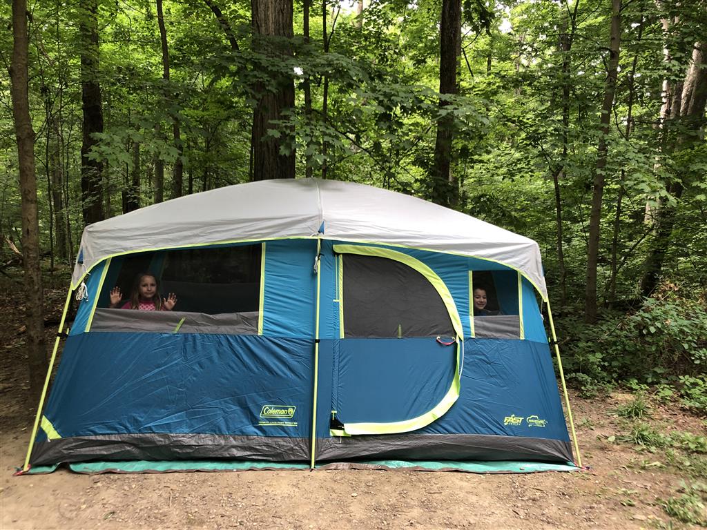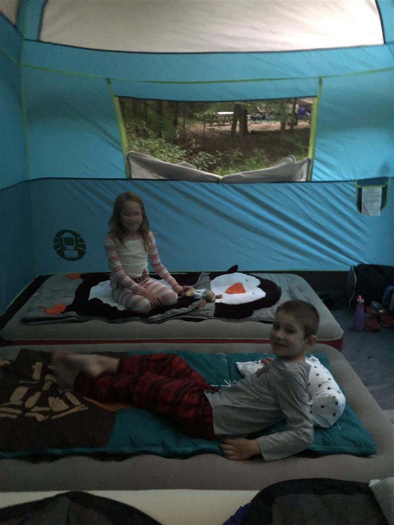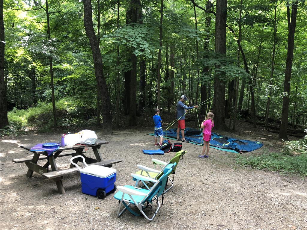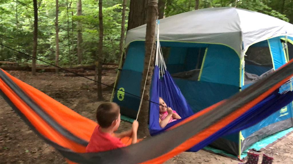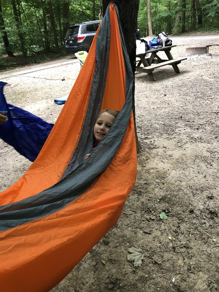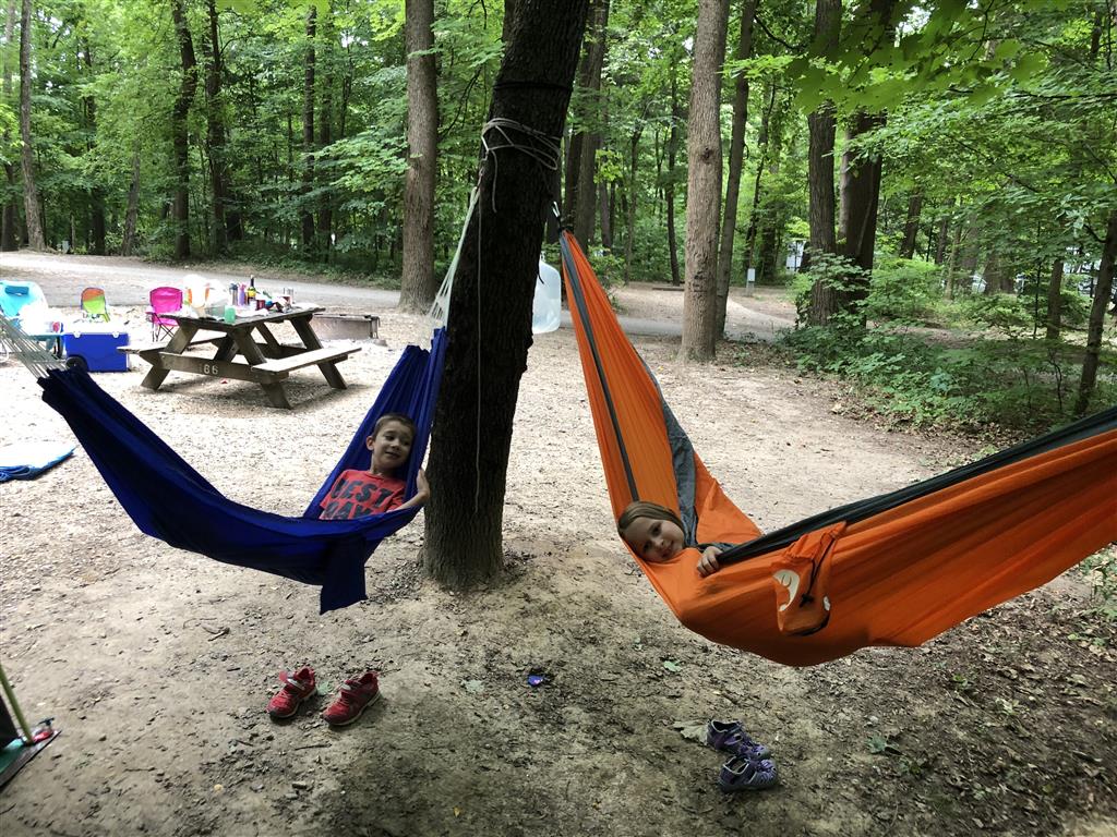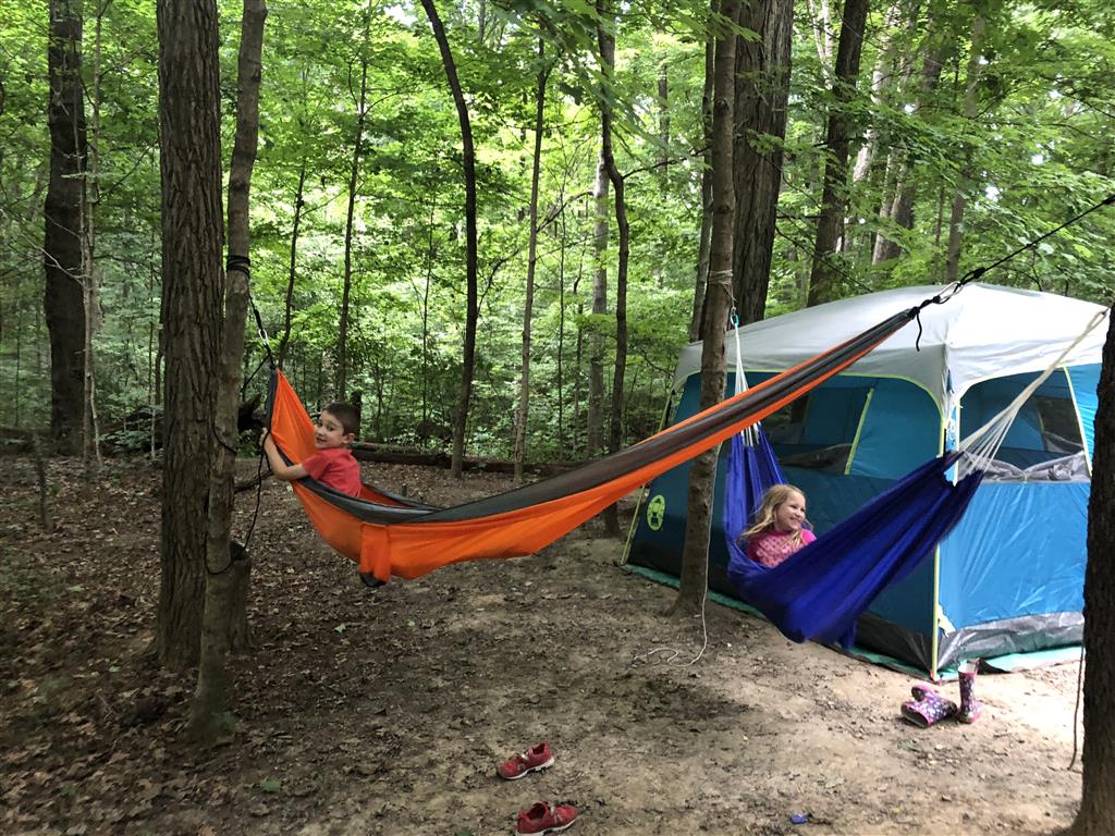 This week Eleanor and Henry headed out for a camping adventure. We visited Turkey Run State Park in Indiana, where we did some canoeing and camping. The kids enjoyed the canoeing for a while, but got a little restless at the end. Good thing we didn’t do the 6 mile adventure! After setting up camp, the hammocks were definitely the hit, both kids spent a good hour playing in them. After some dinner and campfire smores, we finished off the day with some board games in the tent.