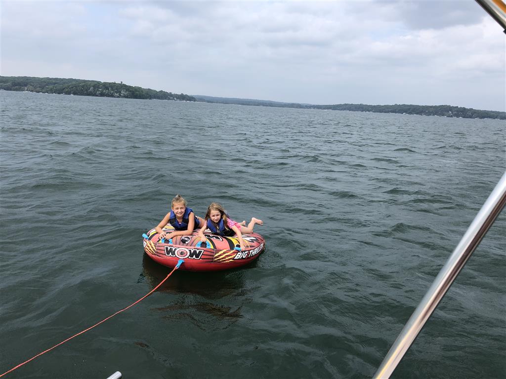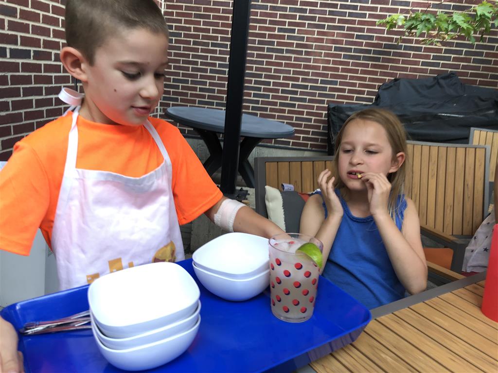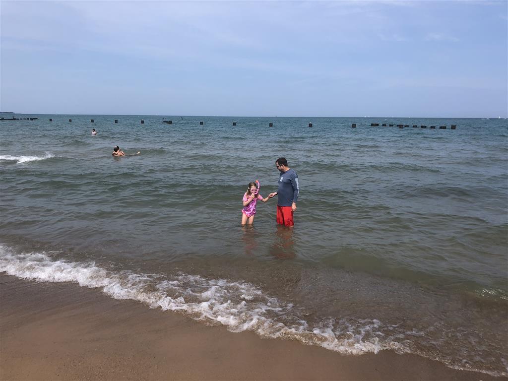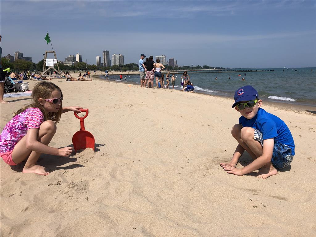 Eleanor and Henry enjoyed the last week of summer vacation with some big activities and lots of downtime at home. We took a quick day trip up to Lake Geneva to visit some friends and had a great day out on the lake. Eleanor really enjoyed tubing and swimming, Henry didn’t want to tube, but really enjoyed being a helper on the boat and some swimming. The next day we took a trip down to the Harold Washington Library, and then enjoyed some time at Dave and Busters. We also managed to squeeze in a day at North Avenue Beach, and a fun cookout with Lala, Uncle B and Aunt Breanne – with Henry as the waiter.
