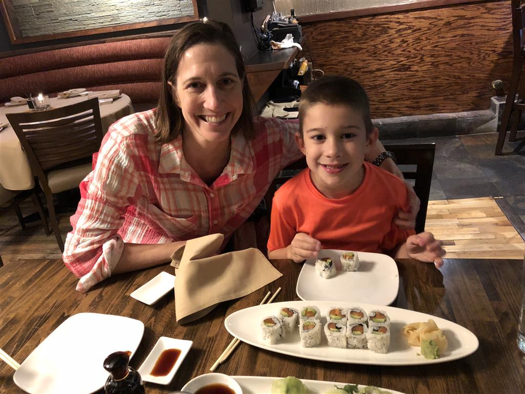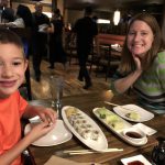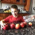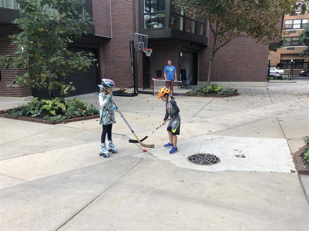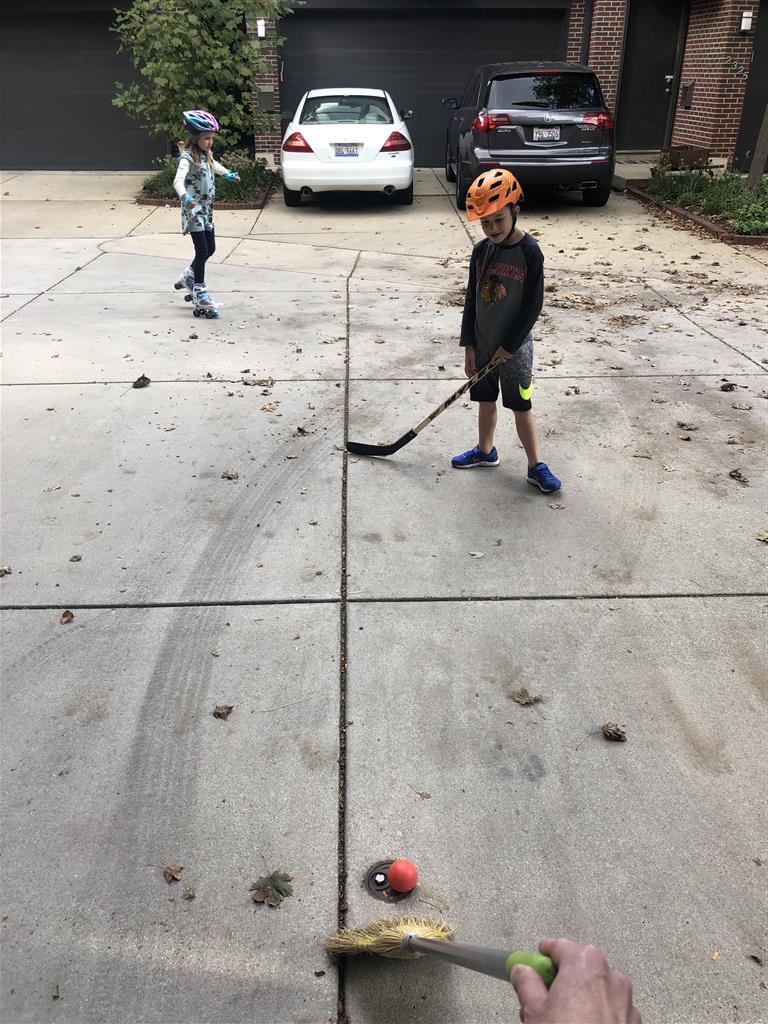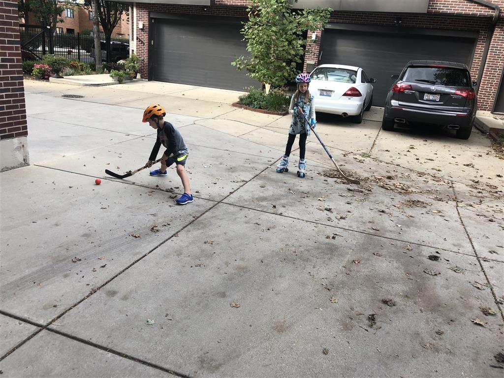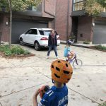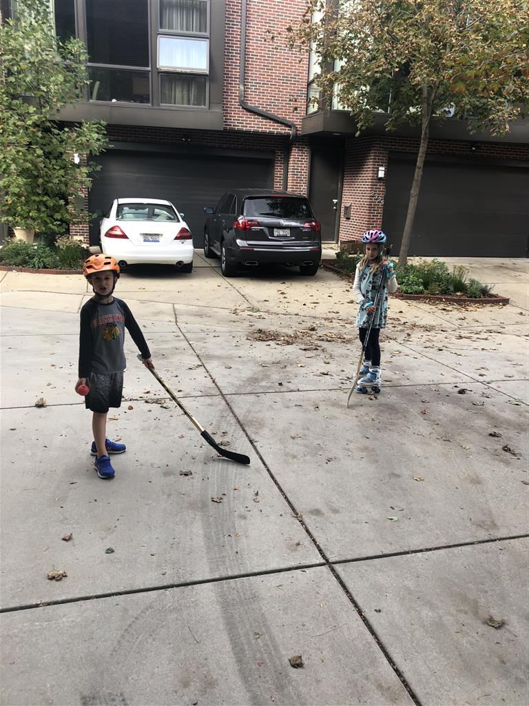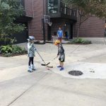 Henry had a big food week this week – starting off with a field trip to an apple orchard. He was really excited to eat the apples that he got there – even though he only picked one directly from a tree. He has also decided that he wants to be a chef when he grows up, so he is very into helping in the kitchen. He was also really excited to go out to a sushi dinner with Lala and Mom, and really enjoyed watching the sushi chefs at work. Eleanor had a fun birthday party to attend, so she didn’t join in on the sushi fun. She has really been enjoying her bike recently, and loves to ride it around the courtyard. She has also been practicing her roller skating, and this week even added a hockey stick into the mix!
