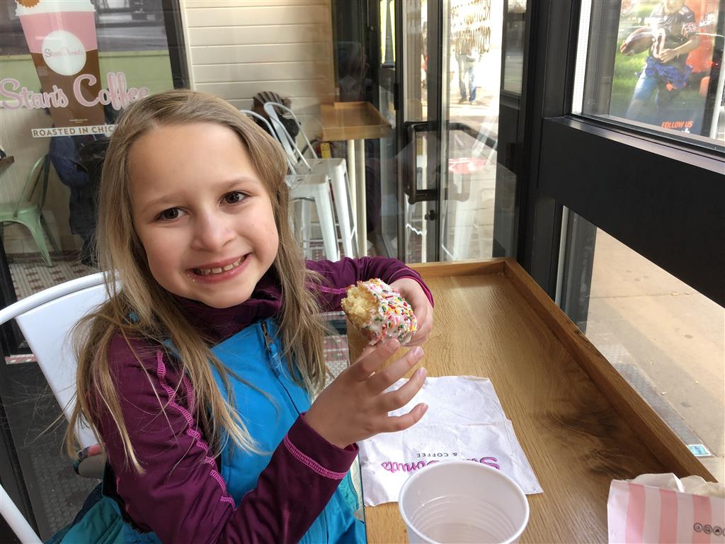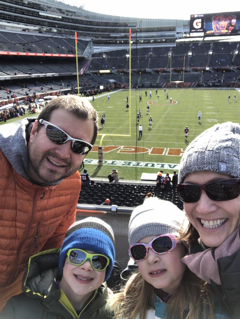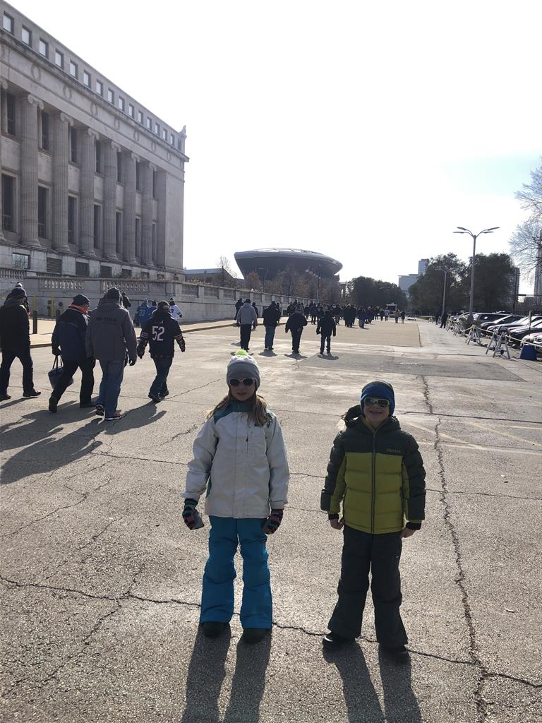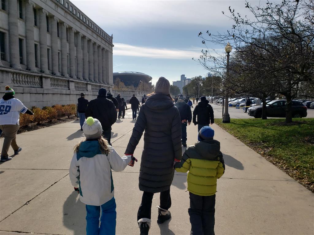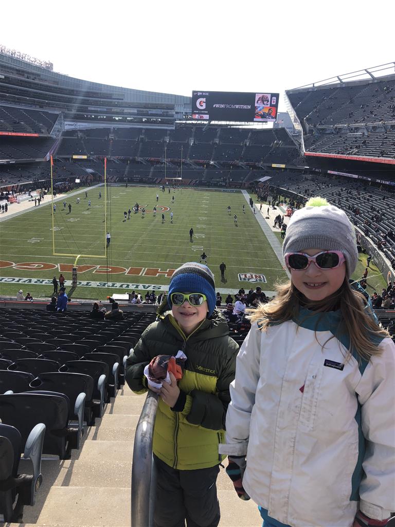 Eleanor and Henry went to the Bears Lions game this week – Eleanor went last year but this was Henry’s first time at Soldier Field. It was a bit chilly so we had to bundle up in our ski clothes, but both kids were troopers and had a good time. Mom and Eleanor watched the first half, and Dad and Henry stayed till the end of the game. We had a helicopter flyover to start the game in honor of Veterans Day, which was a fun special treat.