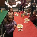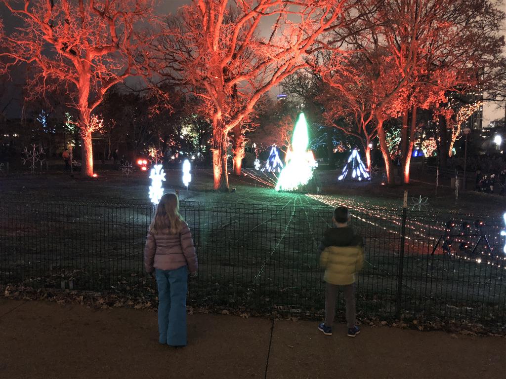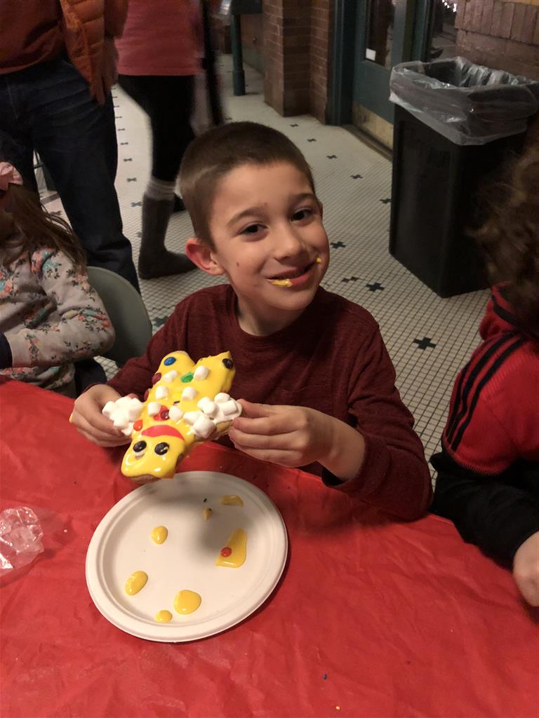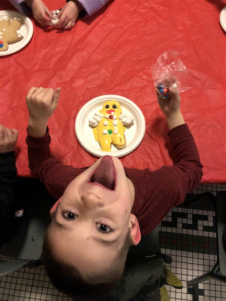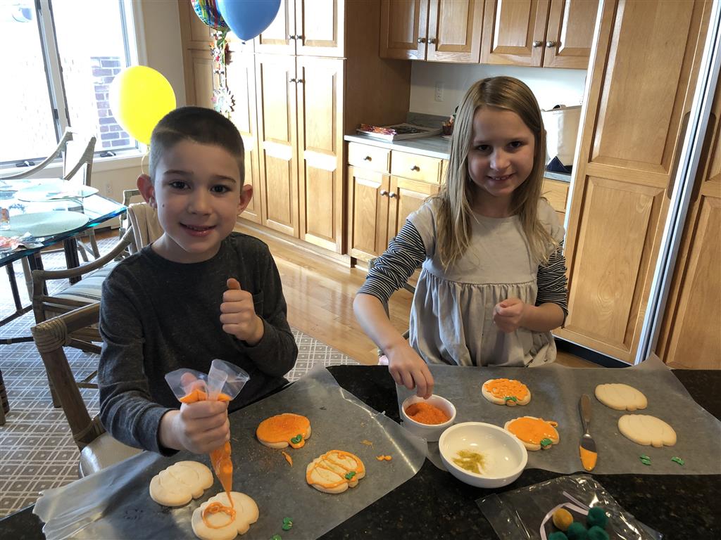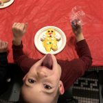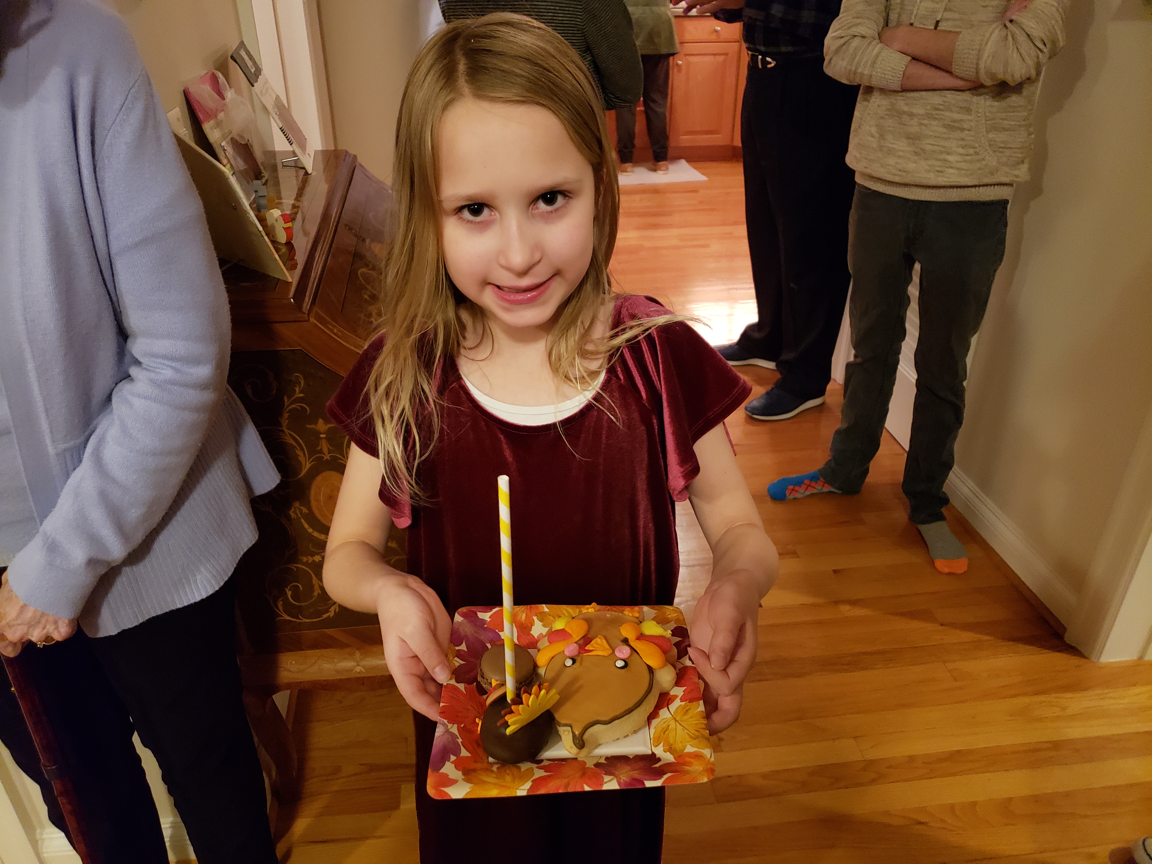 It has been a busy two weeks for Eleanor and Henry. We had a dentist appointment, Zoo Lights, the Tree Lighting Parade – including dinner at Benihana, and finally Thanksgiving. The kids favorite part of Zoo Lights was definitely the cookie decorating, where Henry liberally applied the iceing to the entire cookie. We were also lucky to run into some friends from school, so that made the decorating that much more fun. On Saturday, we went to the Tree Lighting Parade, and got to see about an hour of the parade before it was time to head to Benihana for dinner. There were several Disney floats, and a giant Rudolf, along with some bands and a float from Garret Popcorn that actually sent popcorn flying out of its top. Dinner was fantastic as usual at Benihana, Eleanor discovered that she likes the soup, and Henry got a combination of shrimp and sushi.