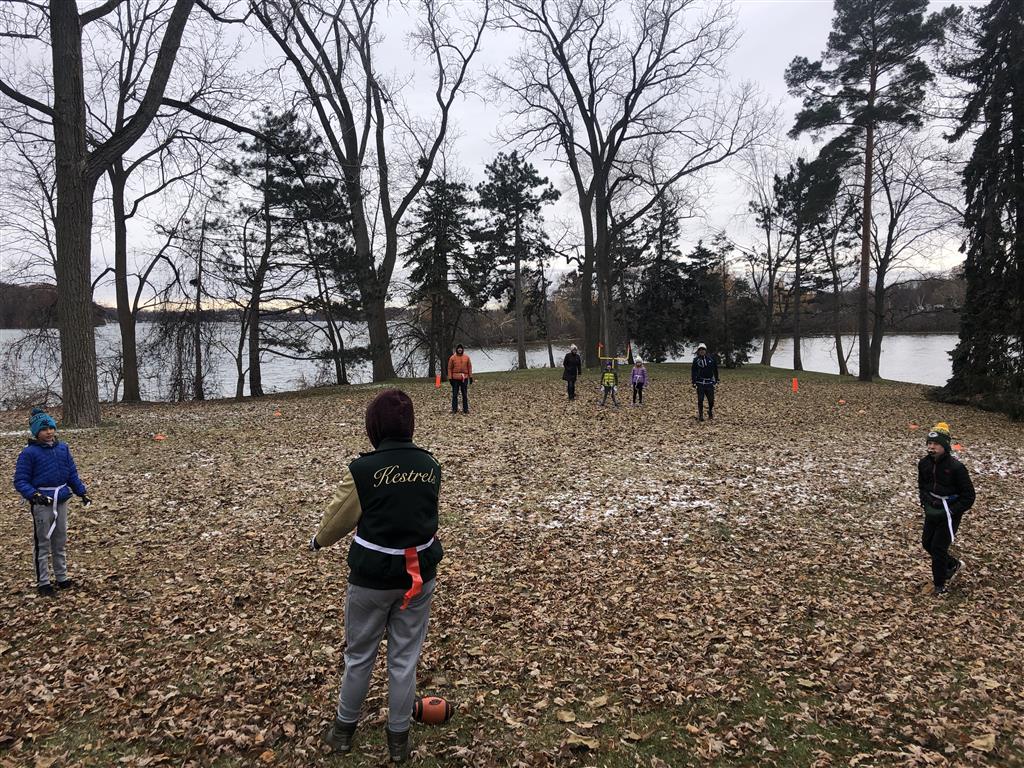 Next, it was off to Grandma and Grandpa’s house for Thanksgiving. We recreated last year’s football match – an abbreviated game on Thursday due to the cold, followed by a full session on Friday. Henry was excited to catch a touchdown pass, and Eleanor completed several passes as quarterback. Amazingly, only one extra point was successfully kicked.