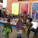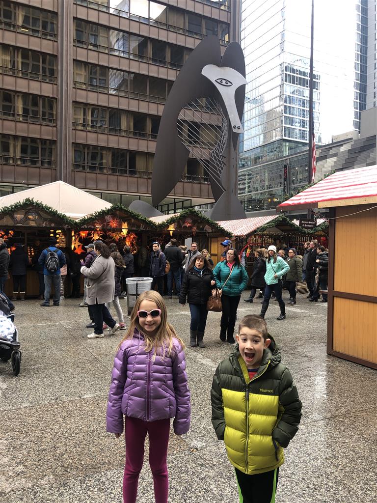 On Friday, we gathered a group of school friends and headed over to ride on the CTA Santa Train. The kids were all pretty excited for the train ride, although it was pretty full so we really had to pack in to make it on. On Saturday, Henry had his first basketball game of the new season. It went well but was quite a change for him as they are now playing man to man defense, and stealing on the pass is now allowed. Eleanor had her first soccer game of the new season – she is playing in a dome this season which was neat to see. On Sunday we went down to the Chriskindlemart for some hot coco and shopping.