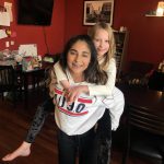 Merry Christmas! Henry and Eleanor had a great weekend prior to Christmas with our friends Stacey, Ben, Anna and Jackie. We went to a new museum that was a combo art and science focus. It won’t be replacing any of our favorites, but was fun for a change. Then we headed down to Navy Pier for the annual Winter Wonderfest. This was the first time Dad was able to make it, so that was fun. We did some rides, ice skating and got some funnel cake. We also had our friend Alex and Allison’s holiday party to attend, which was also fun and featured a garage transformed into a cookie decorating wonderland and a mobile gaming truck! On Christmas Eve our friends Mark, Lin, Lucas, Simone and Juliana joined in and we had a big pizza lunch celebration featuring Giordano’s!