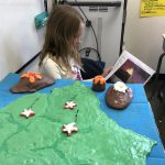 This week Eleanor had her big presentation on everything she has learned about Hawaiian Volcanoes. She was very nervous about it, but she did it and was happy with the result. Her model island and volcanoes came out well, and she was pleased with them which was the most important part. Henry got to come visit Eleanor’s class to see the presentation and he was pretty excited about it – and double excited when he learned that some of the other kids had chosen foods as their topic and brought in samples! Looking forward to next week’s festivities with the green river and visitors!