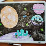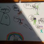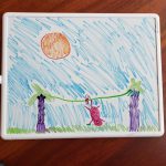 Sunday was our cookout, and it was Henry’s turn to be in charge. He made the menu, took the orders, and served the food. He decided to call his restaurant Chili Dog, despite us not having chili or hot dogs on the menu. He made menus on dry erase boards that he could carry and show to everyone. After dinner, the kiddos made some fun pictures on the boards and did a little art show.