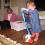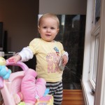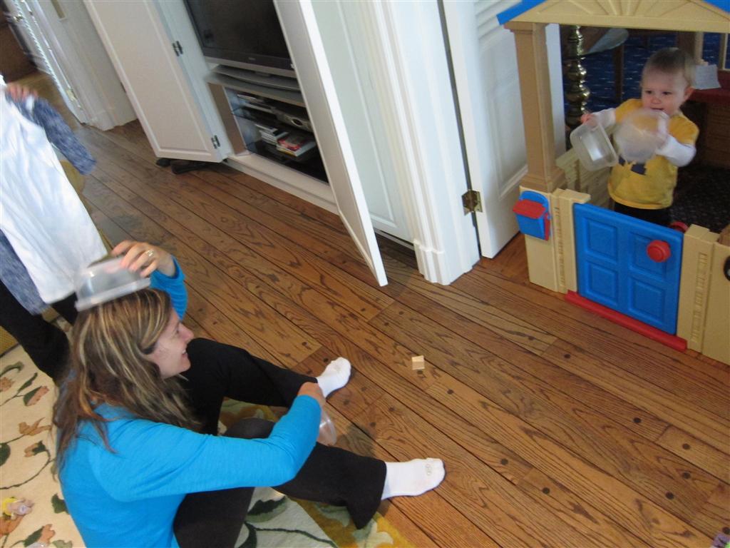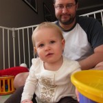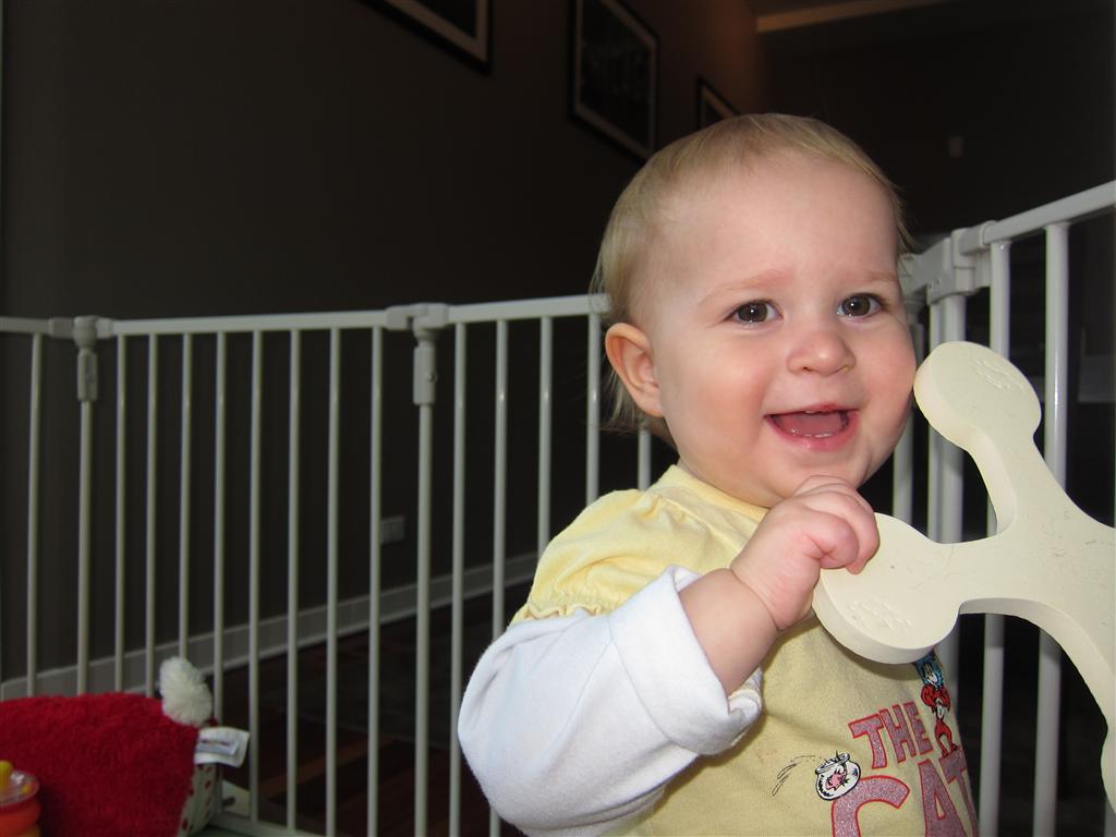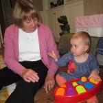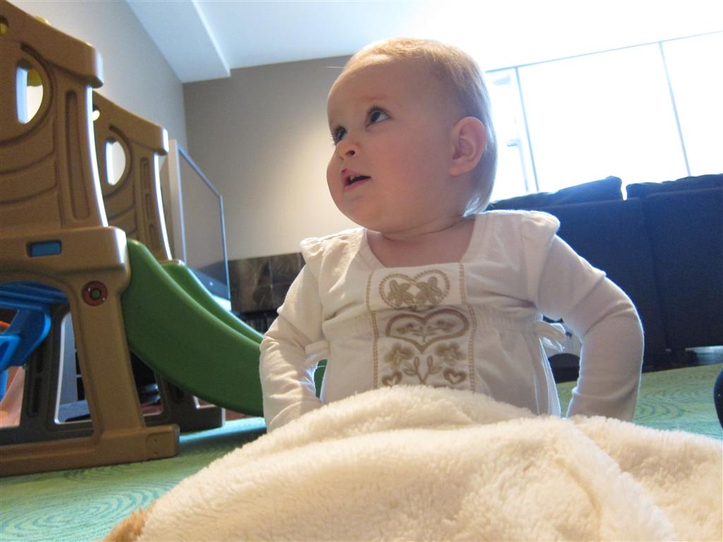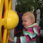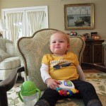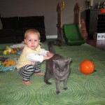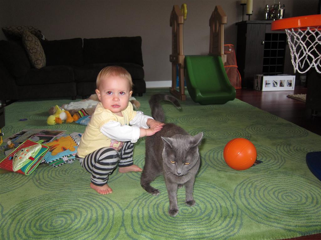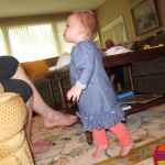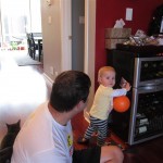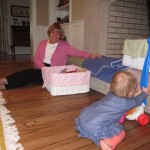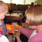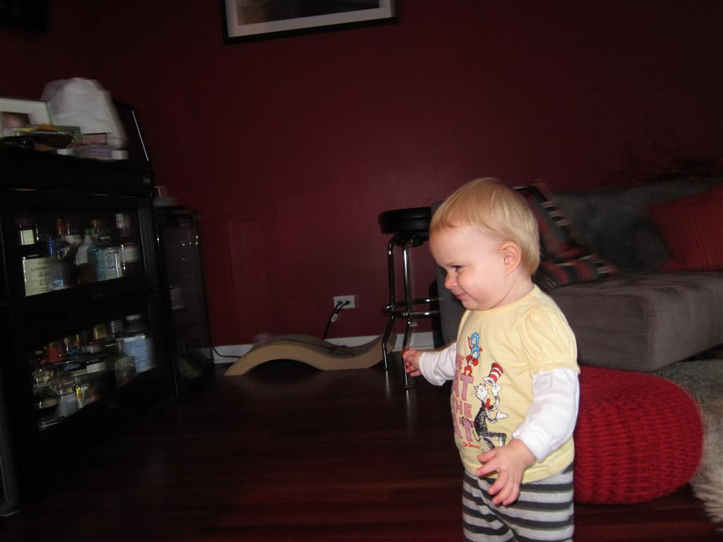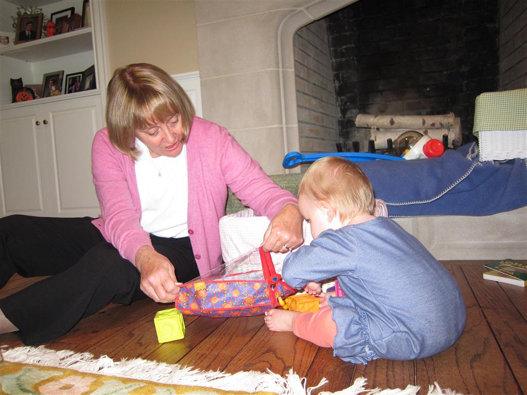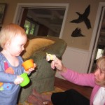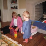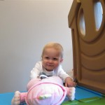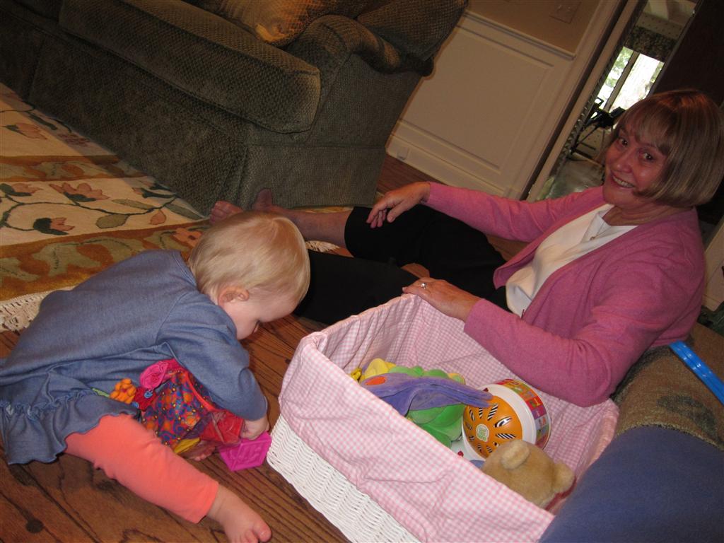 Eleanor had a week full of fall fun! Early in the week she took a trip to the aquarium for the first time. The ducks were definitely the biggest hit (I know – ducks at an aquarium – who knew?). At home there was lots of chasing the cat, and a new habit of holding all sorts of items up to her ear as if she was talking on the phone. The second half of the week brought a trip to visit Grandma and Grandpa, and Aunt Susan, Uncle Gabe, Mackenzie, Jack and Ben. They all took good care of Eleanor while Mom and Dad hit the town for a wedding. Eleanor did pretty well, and Grandma got some good snuggle time. Eleanor mastered saying “Zee” and “Ak” for “Mackenzie” and “Jack”, but the “Bee” for “Ben” still needs work.