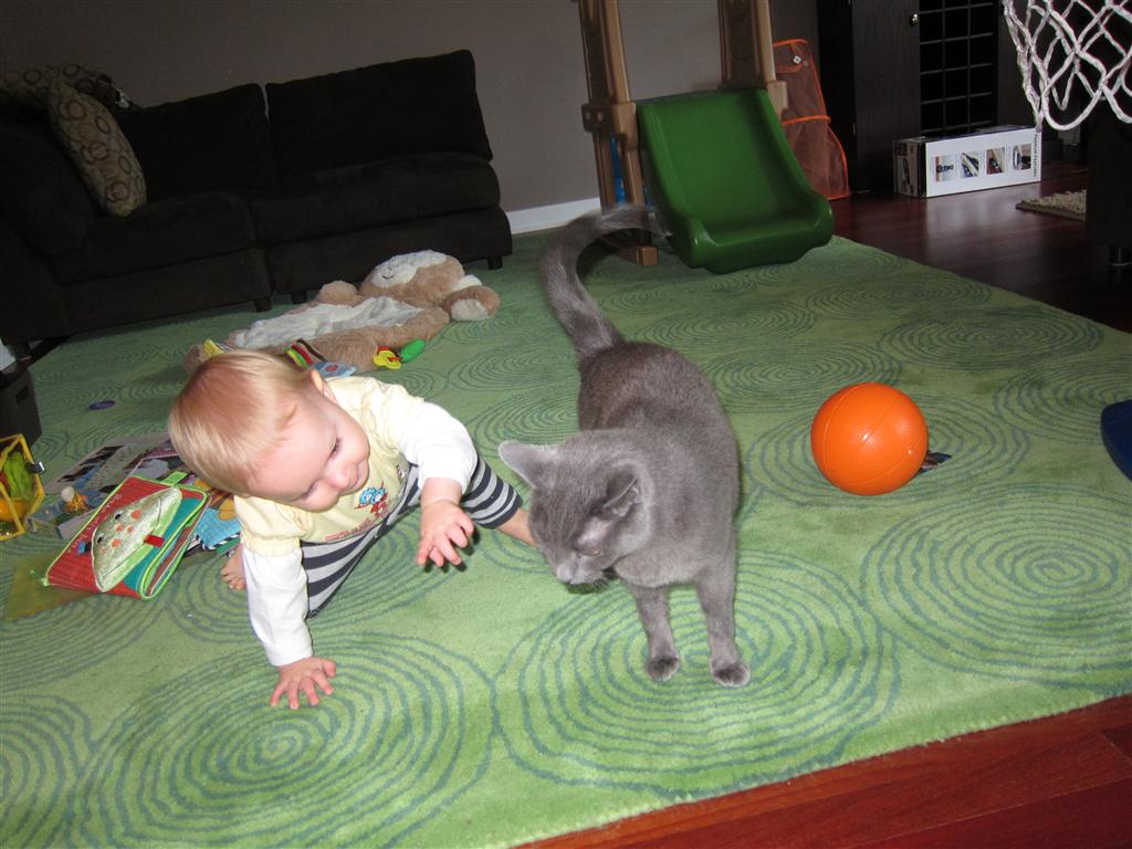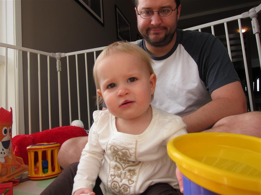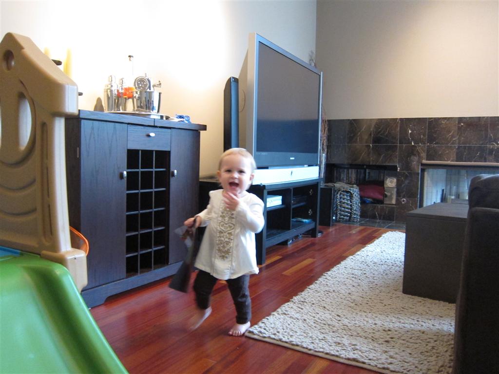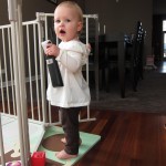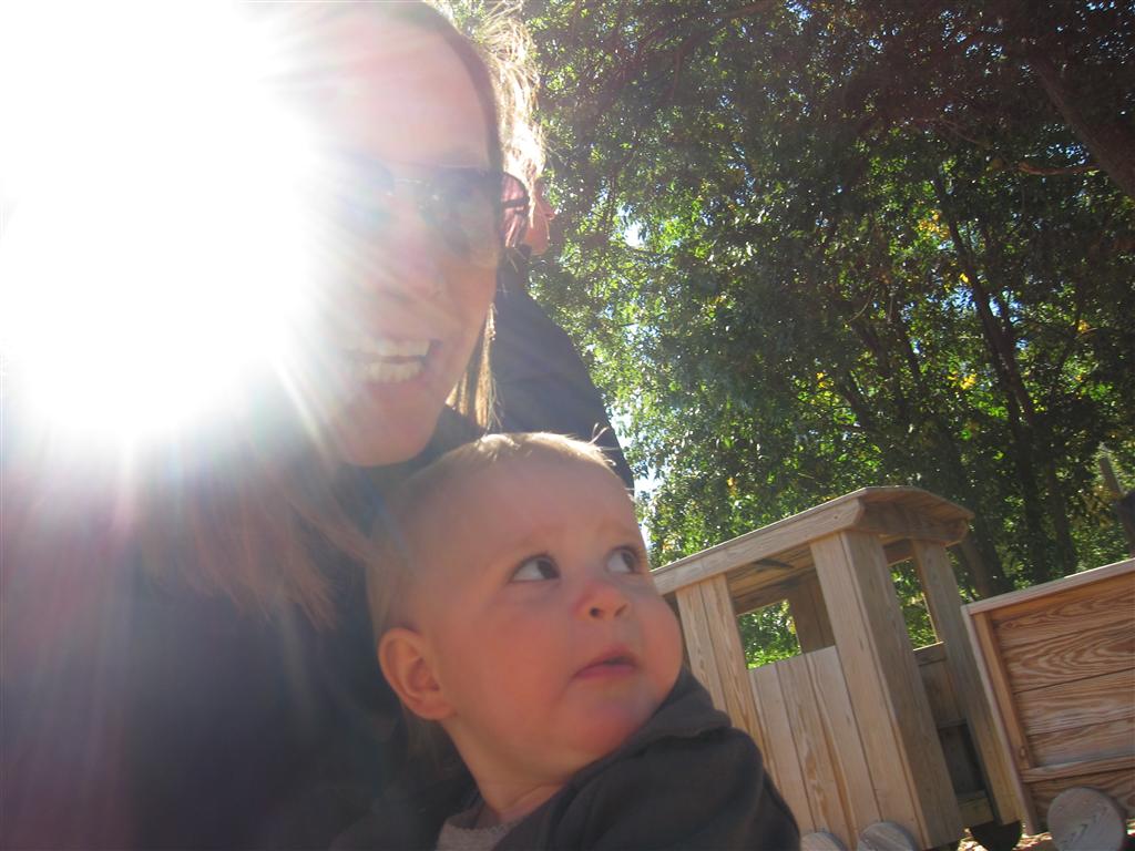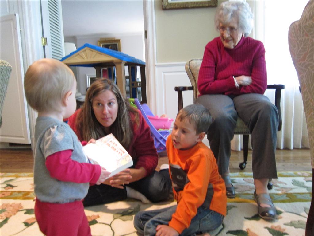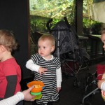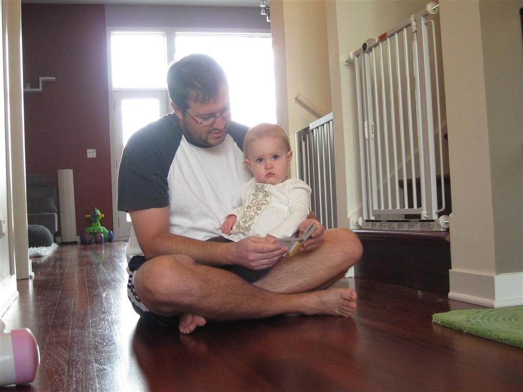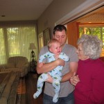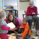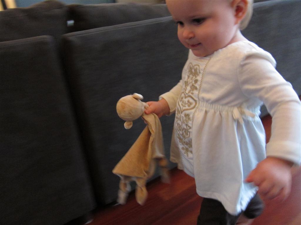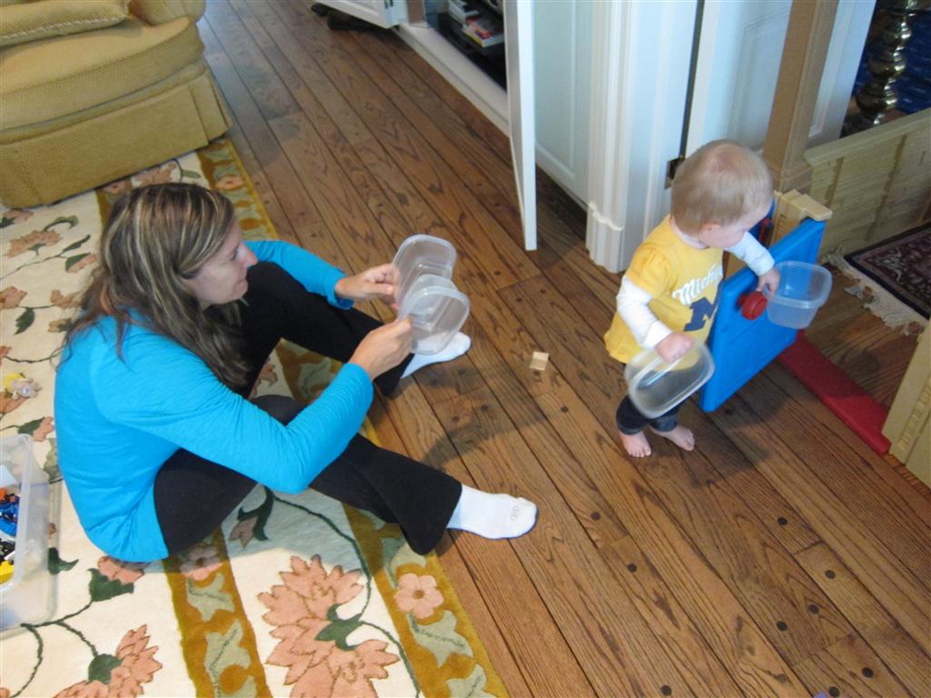 Eleanor had a week full of fall fun! Early in the week she took a trip to the aquarium for the first time. The ducks were definitely the biggest hit (I know – ducks at an aquarium – who knew?). At home there was lots of chasing the cat, and a new habit of holding all sorts of items up to her ear as if she was talking on the phone. The second half of the week brought a trip to visit Grandma and Grandpa, and Aunt Susan, Uncle Gabe, Mackenzie, Jack and Ben. They all took good care of Eleanor while Mom and Dad hit the town for a wedding. Eleanor did pretty well, and Grandma got some good snuggle time. Eleanor mastered saying “Zee” and “Ak” for “Mackenzie” and “Jack”, but the “Bee” for “Ben” still needs work.