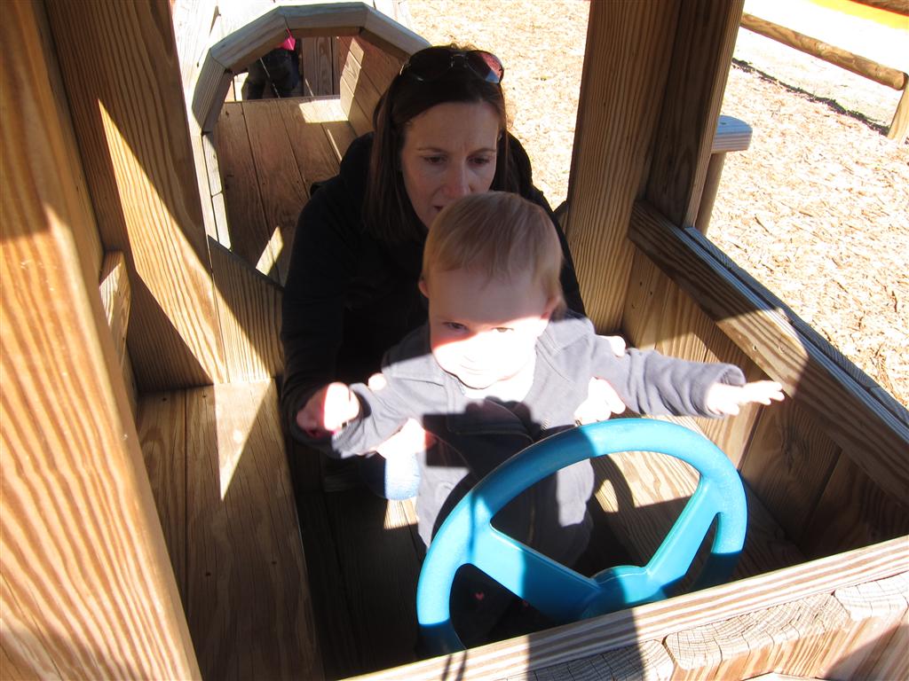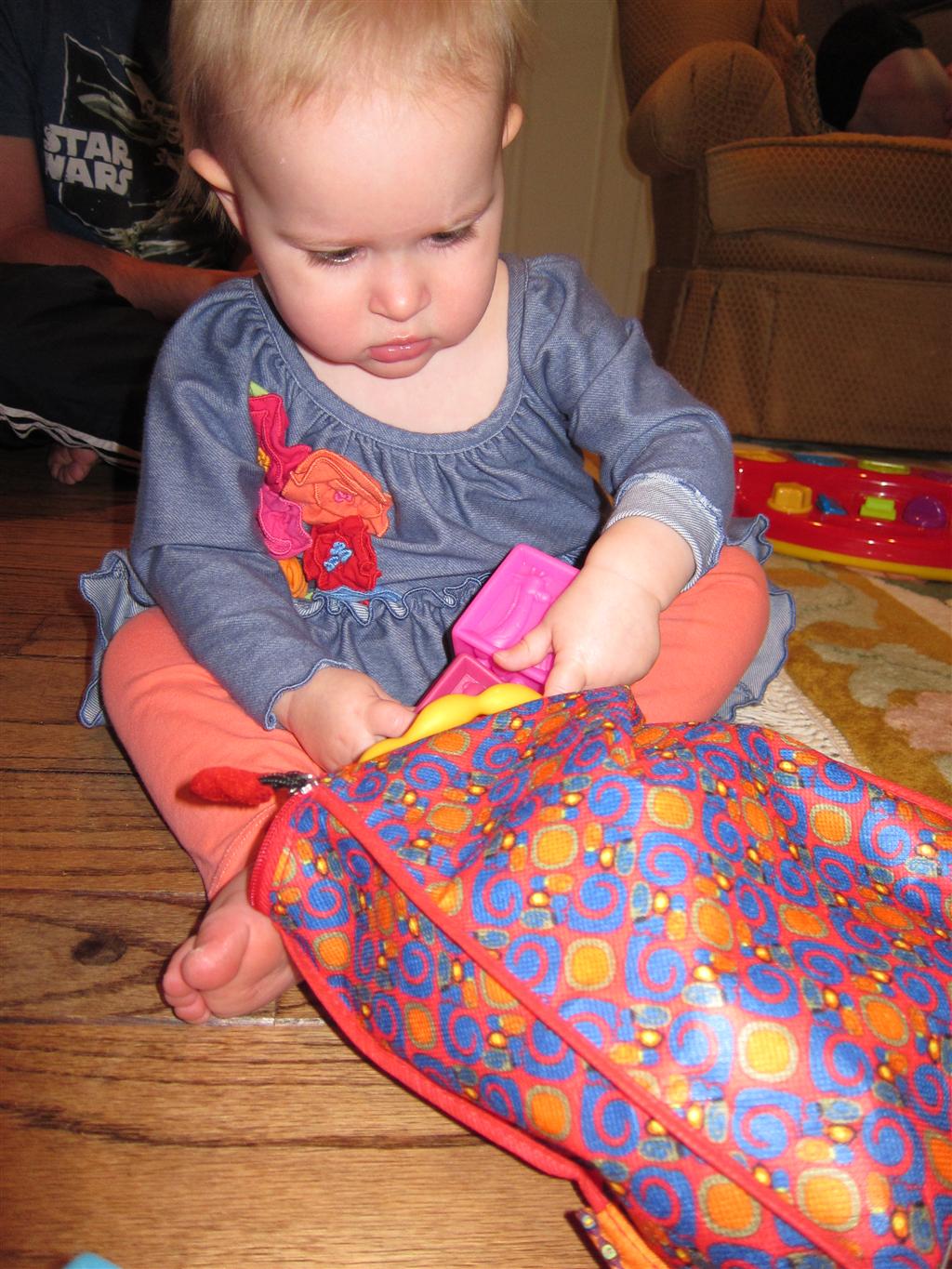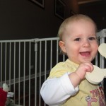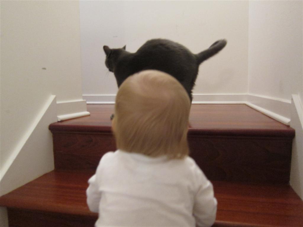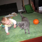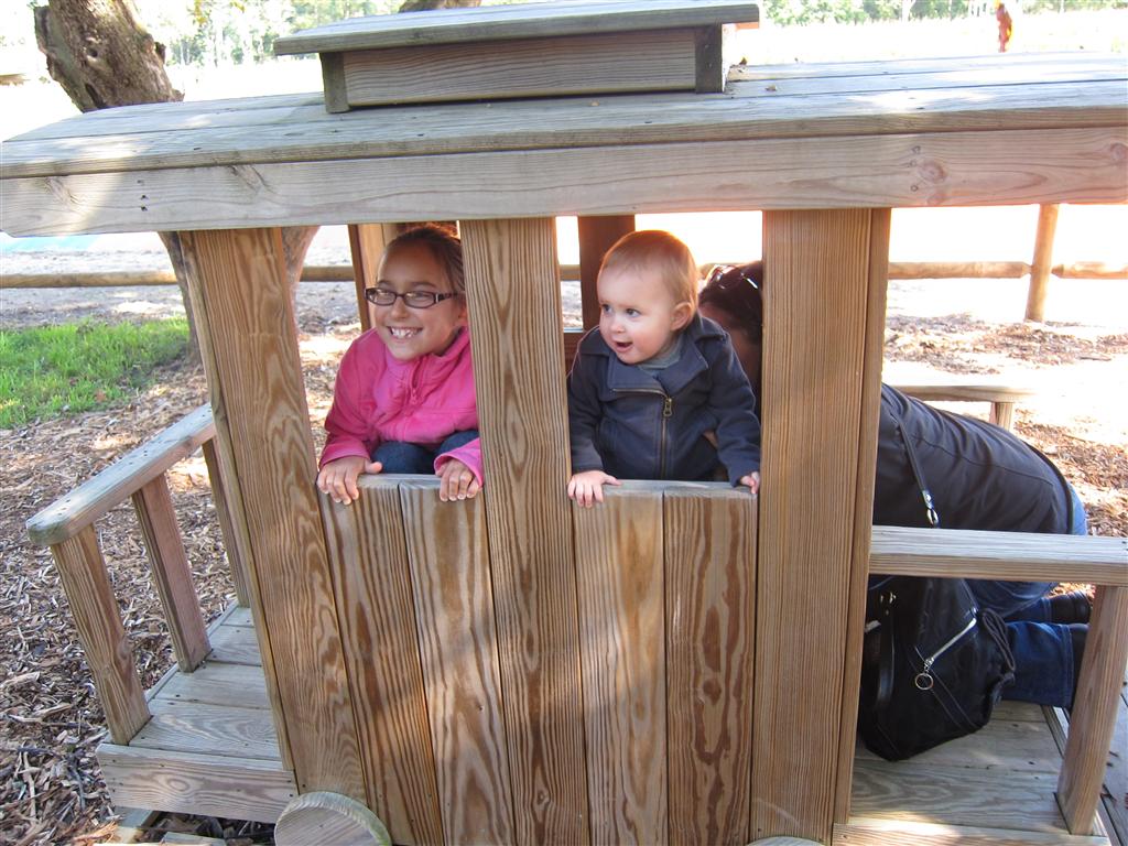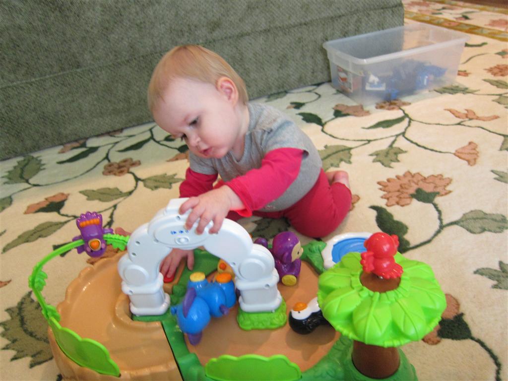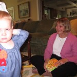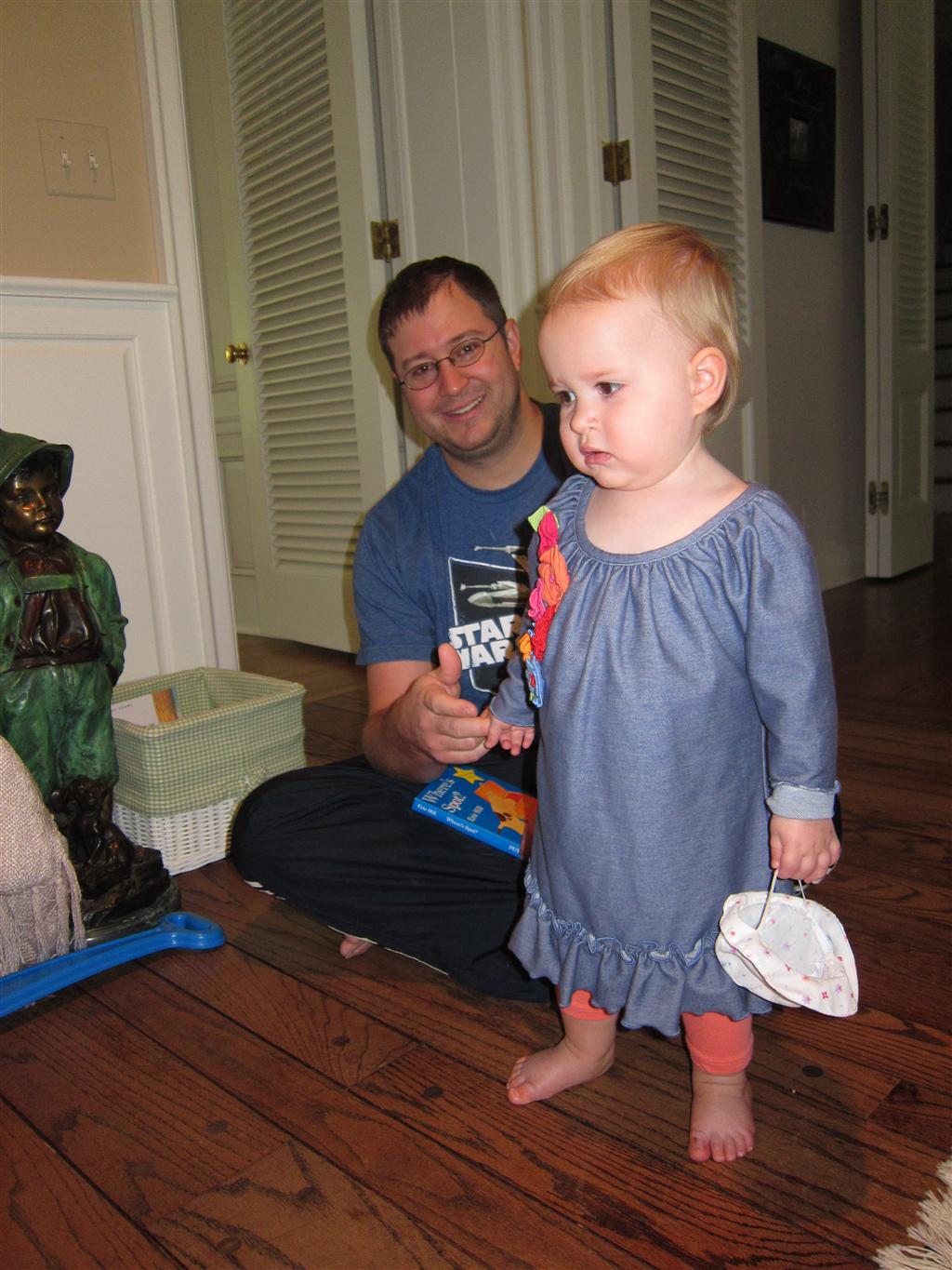 Eleanor had a week full of fall fun! Early in the week she took a trip to the aquarium for the first time. The ducks were definitely the biggest hit (I know – ducks at an aquarium – who knew?). At home there was lots of chasing the cat, and a new habit of holding all sorts of items up to her ear as if she was talking on the phone. The second half of the week brought a trip to visit Grandma and Grandpa, and Aunt Susan, Uncle Gabe, Mackenzie, Jack and Ben. They all took good care of Eleanor while Mom and Dad hit the town for a wedding. Eleanor did pretty well, and Grandma got some good snuggle time. Eleanor mastered saying “Zee” and “Ak” for “Mackenzie” and “Jack”, but the “Bee” for “Ben” still needs work.