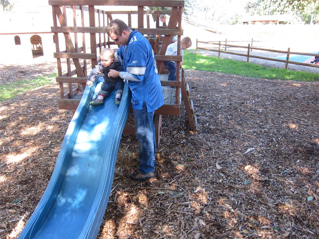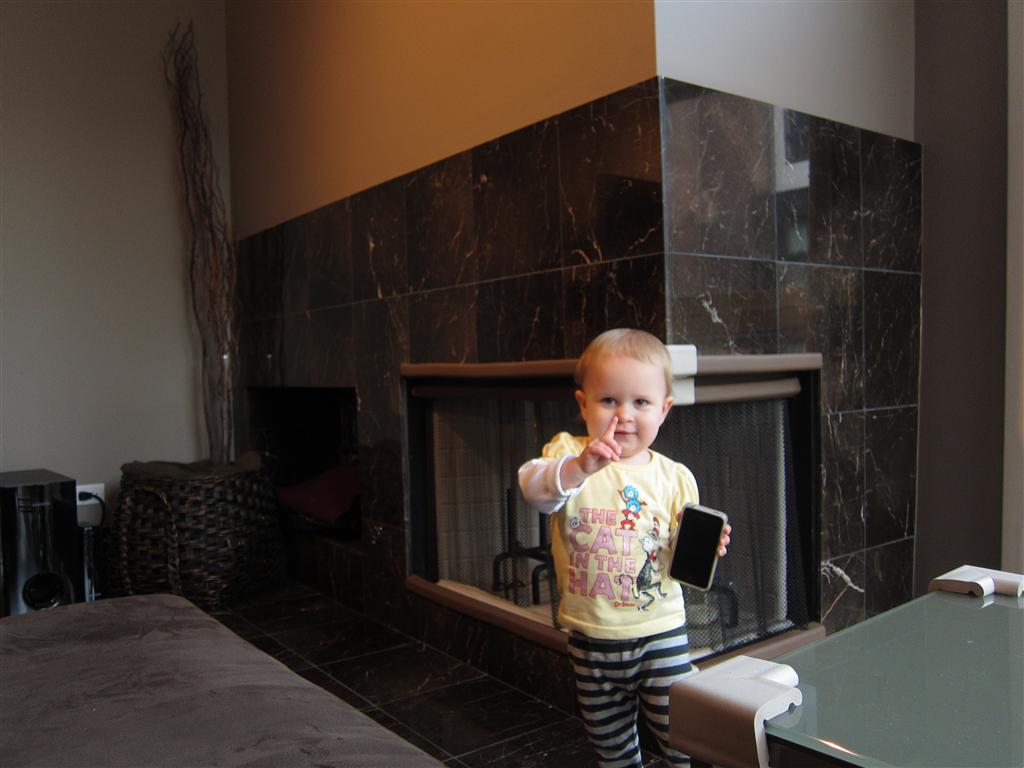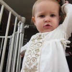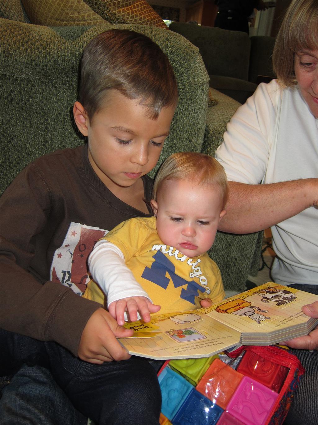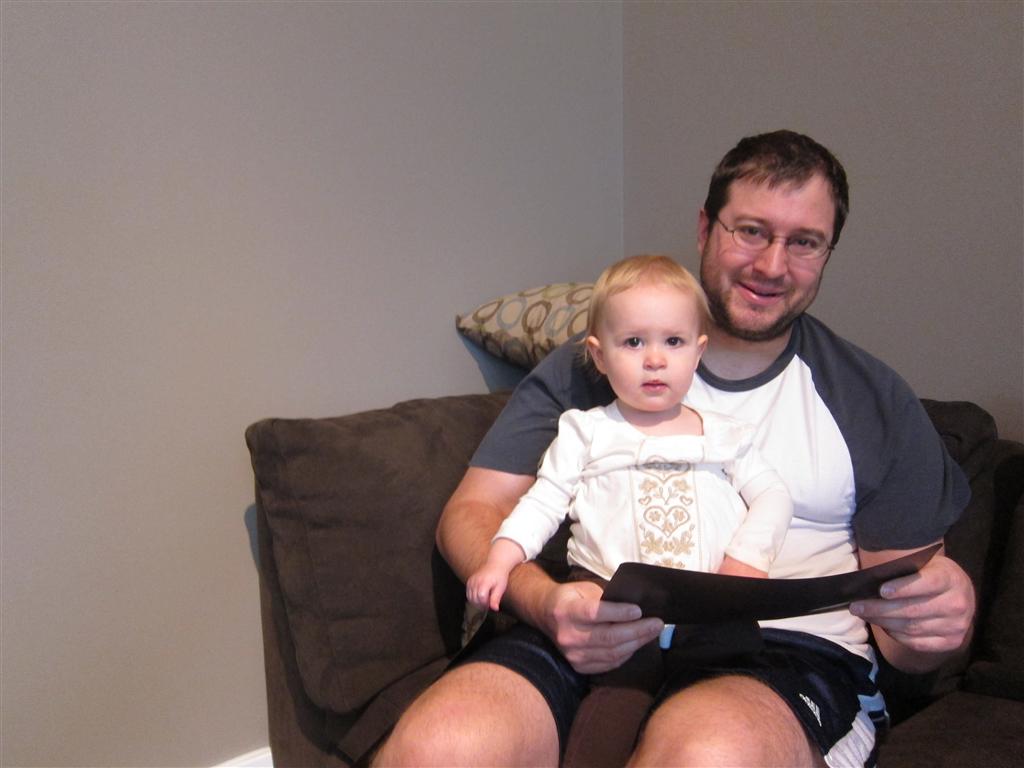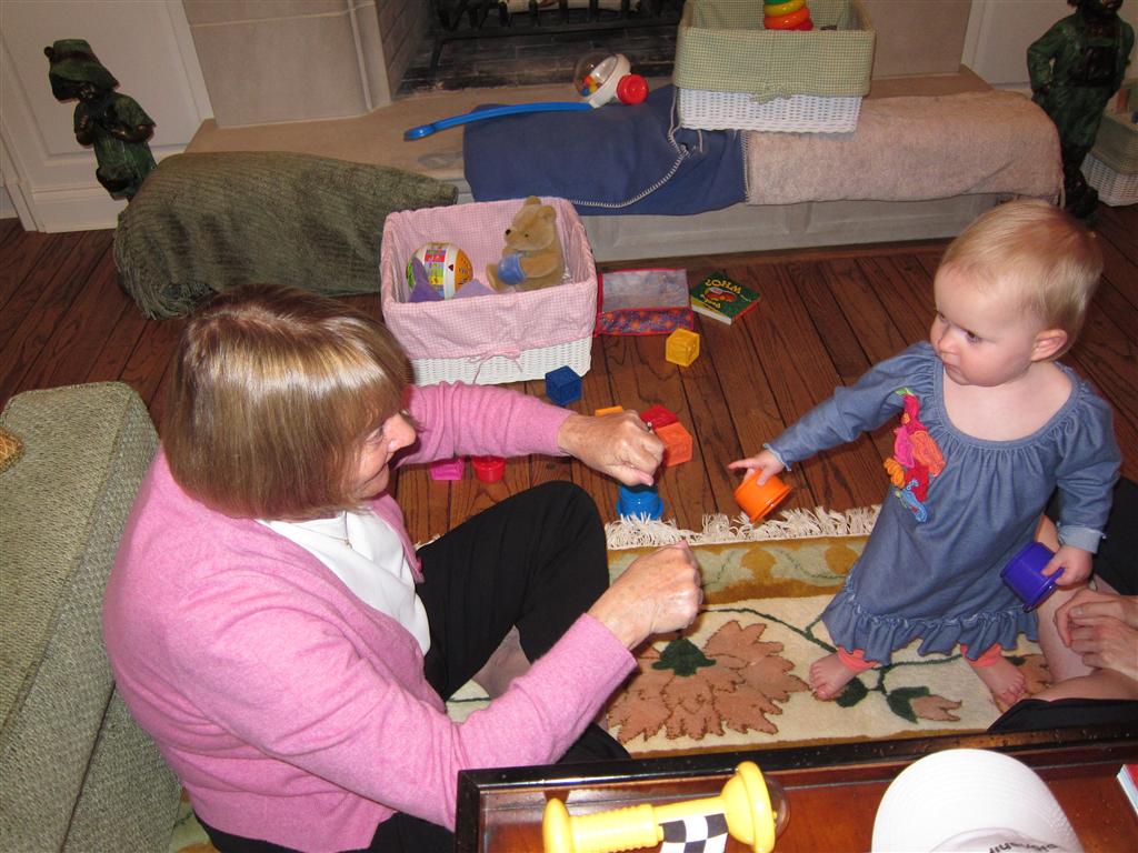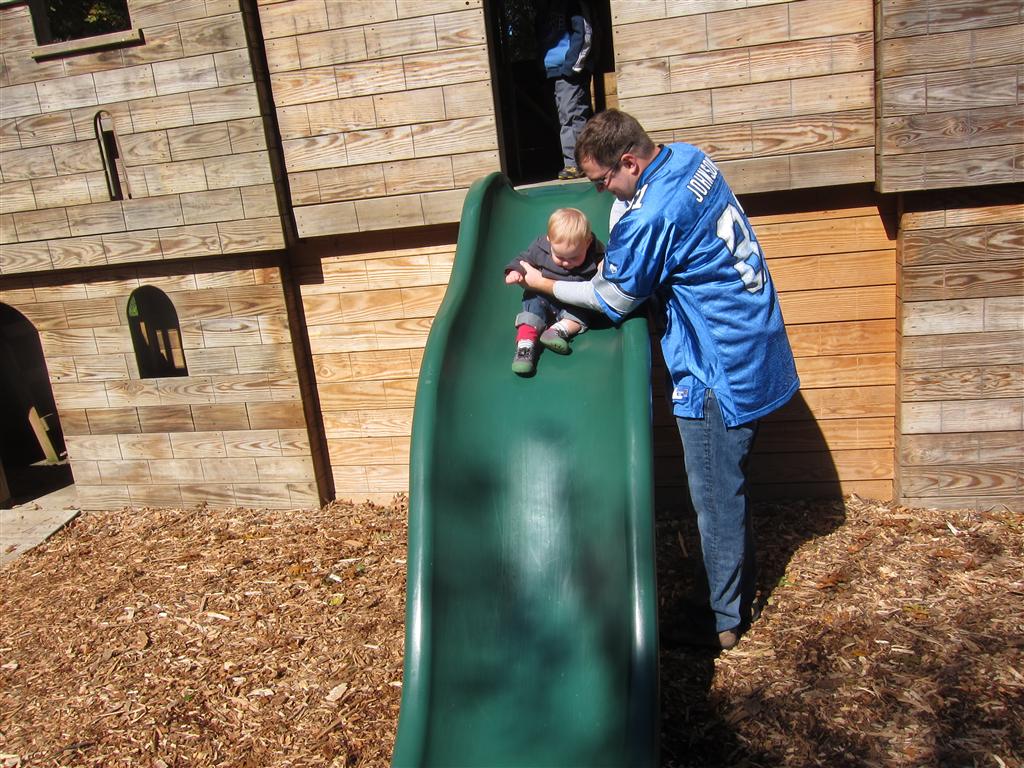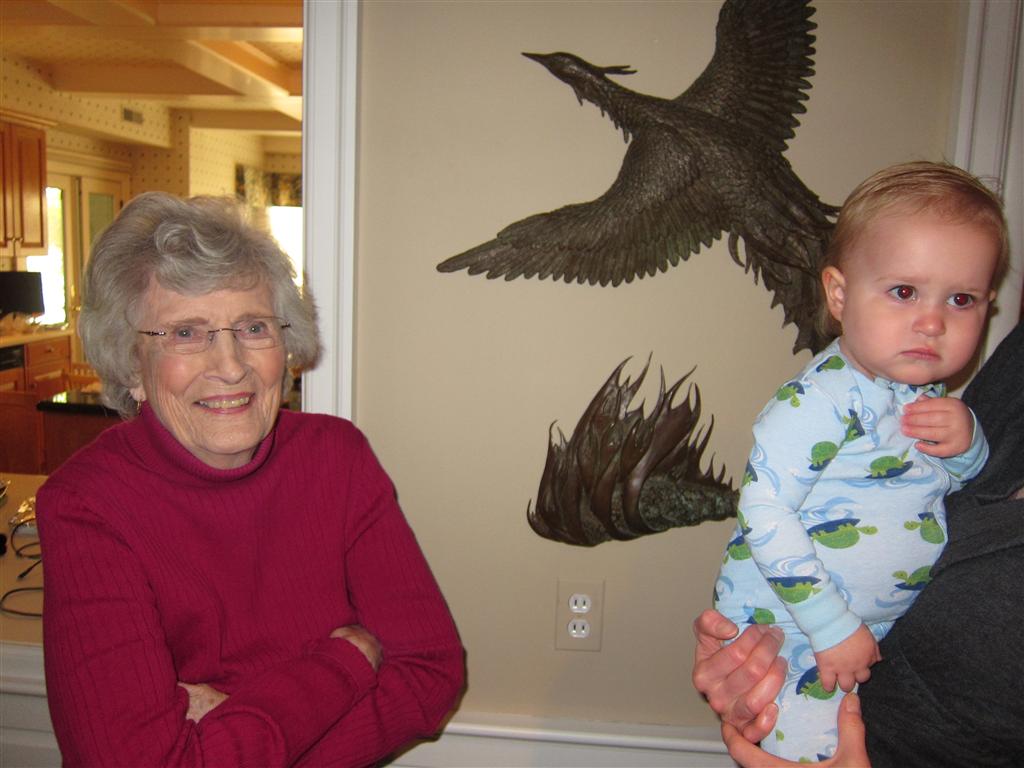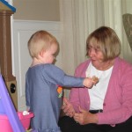Eleanor had a week full of fall fun! Early in the week she took a trip to the aquarium for the first time. The ducks were definitely the biggest hit (I know – ducks at an aquarium – who knew?). At home there was lots of chasing the cat, and a new habit of holding all sorts of items up to her ear as if she was talking on the phone. The second half of the week brought a trip to visit Grandma and Grandpa, and Aunt Susan, Uncle Gabe, Mackenzie, Jack and Ben. They all took good care of Eleanor while Mom and Dad hit the town for a wedding. Eleanor did pretty well, and Grandma got some good snuggle time. Eleanor mastered saying “Zee” and “Ak” for “Mackenzie” and “Jack”, but the “Bee” for “Ben” still needs work.