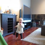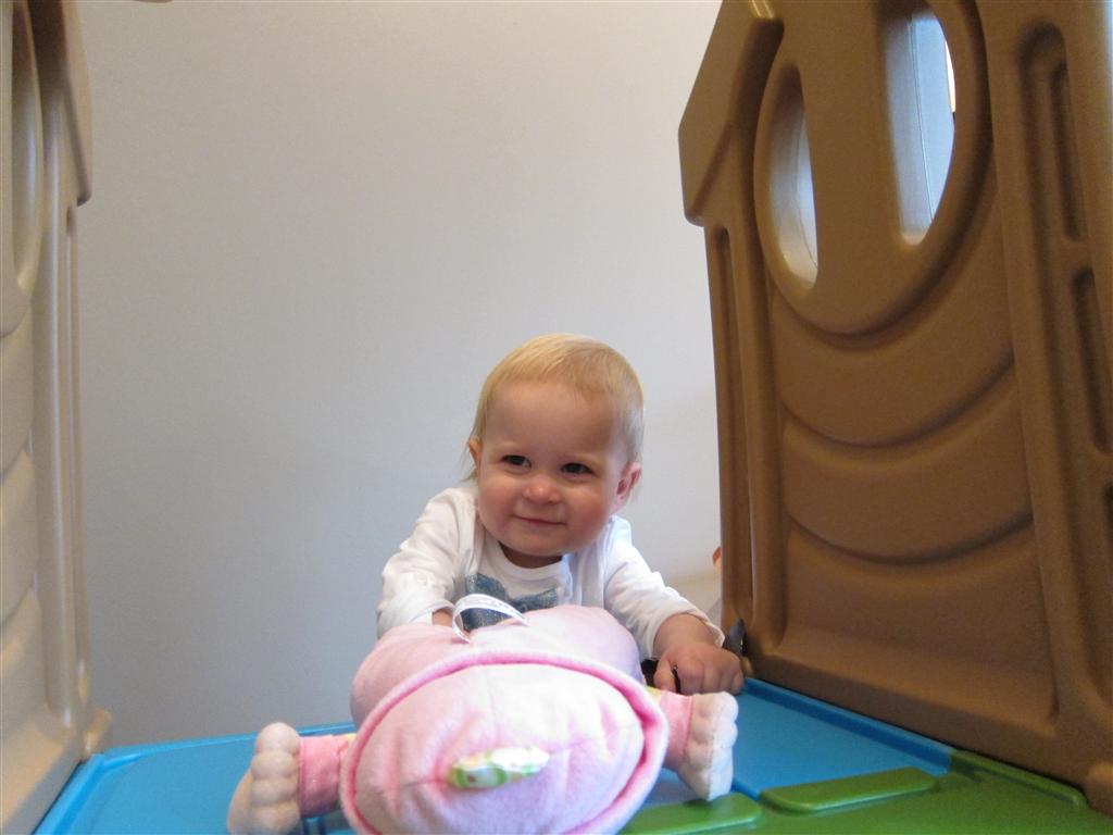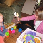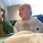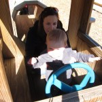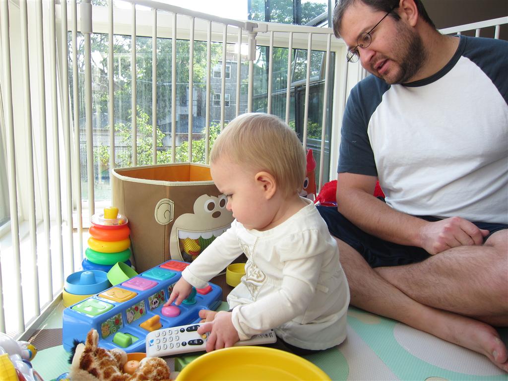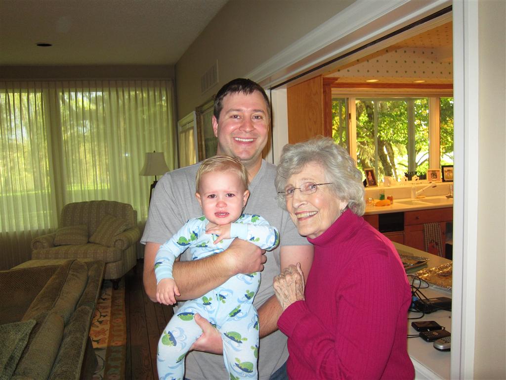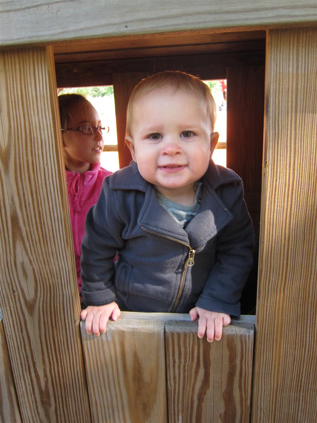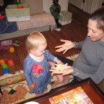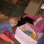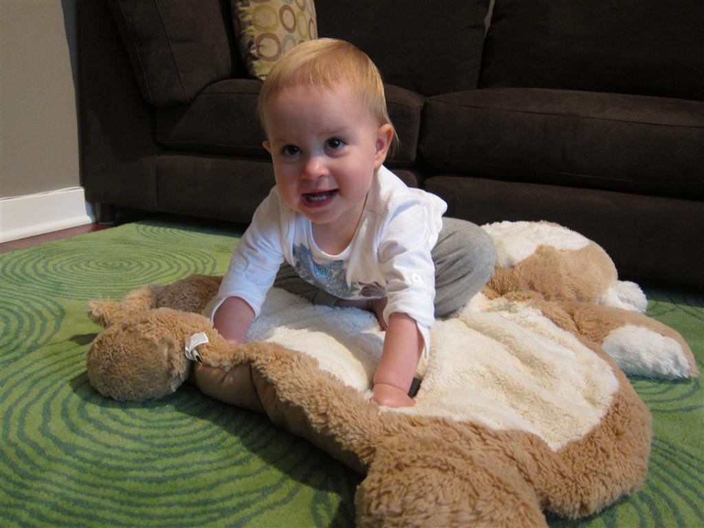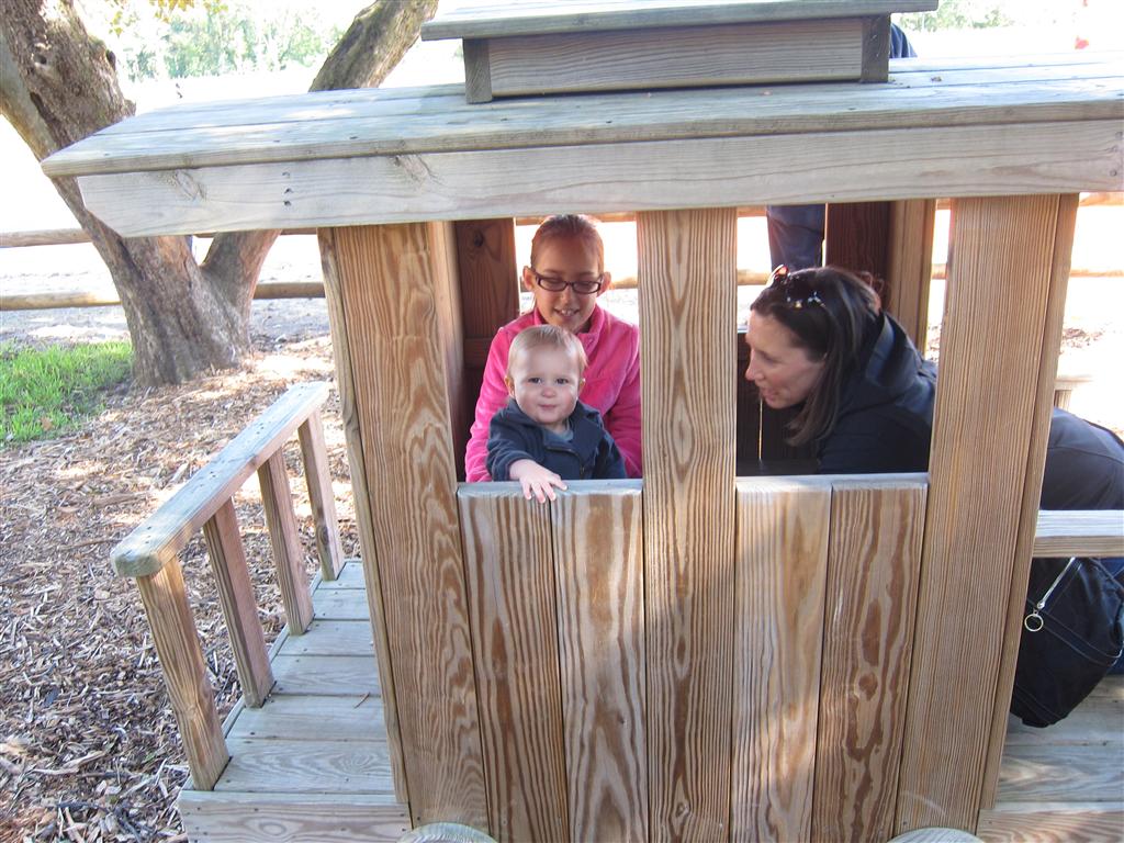 Eleanor had a week full of fall fun! Early in the week she took a trip to the aquarium for the first time. The ducks were definitely the biggest hit (I know – ducks at an aquarium – who knew?). At home there was lots of chasing the cat, and a new habit of holding all sorts of items up to her ear as if she was talking on the phone. The second half of the week brought a trip to visit Grandma and Grandpa, and Aunt Susan, Uncle Gabe, Mackenzie, Jack and Ben. They all took good care of Eleanor while Mom and Dad hit the town for a wedding. Eleanor did pretty well, and Grandma got some good snuggle time. Eleanor mastered saying “Zee” and “Ak” for “Mackenzie” and “Jack”, but the “Bee” for “Ben” still needs work.