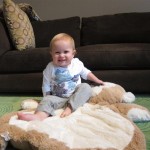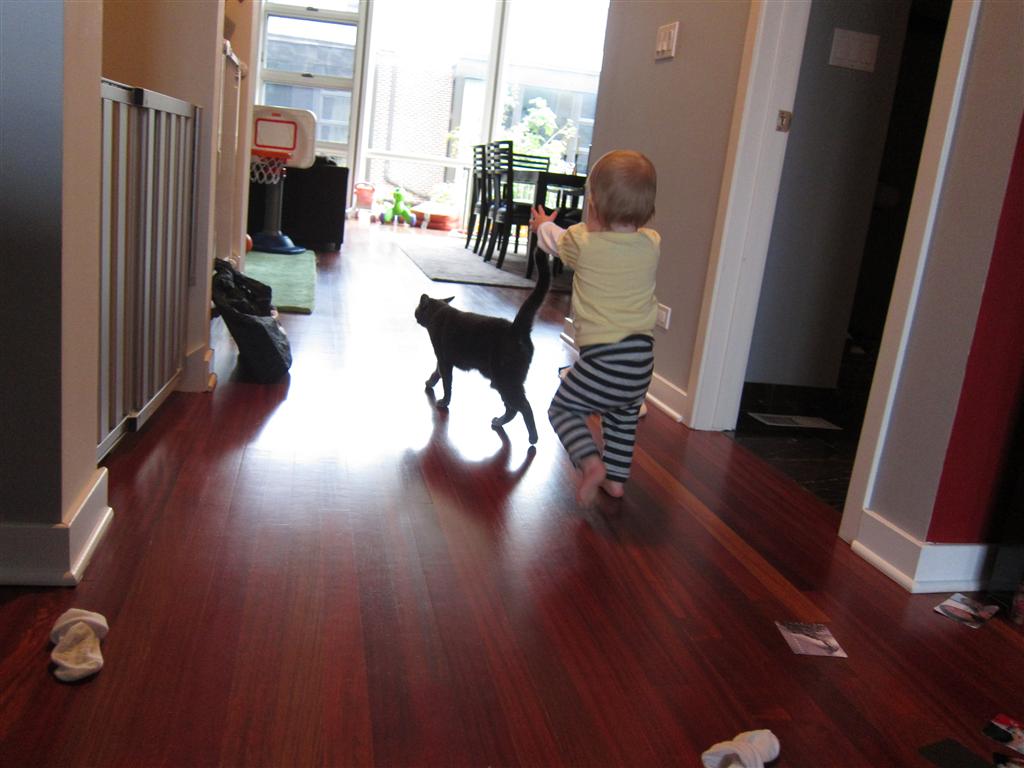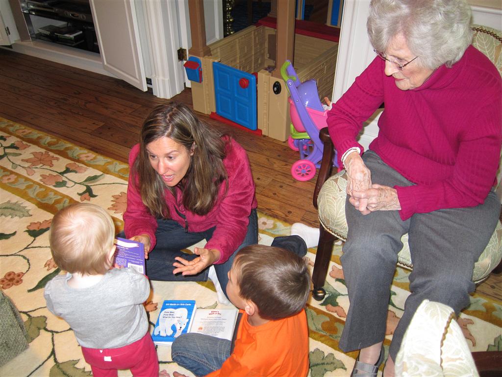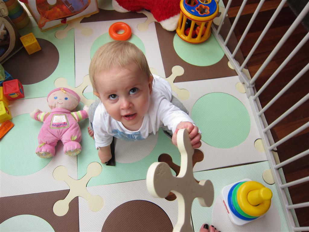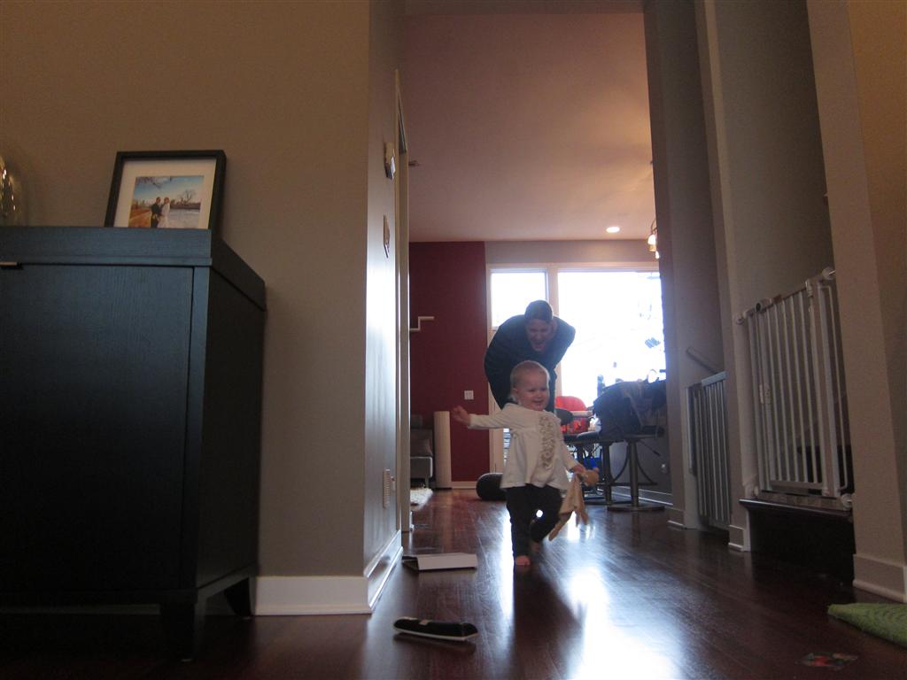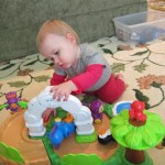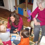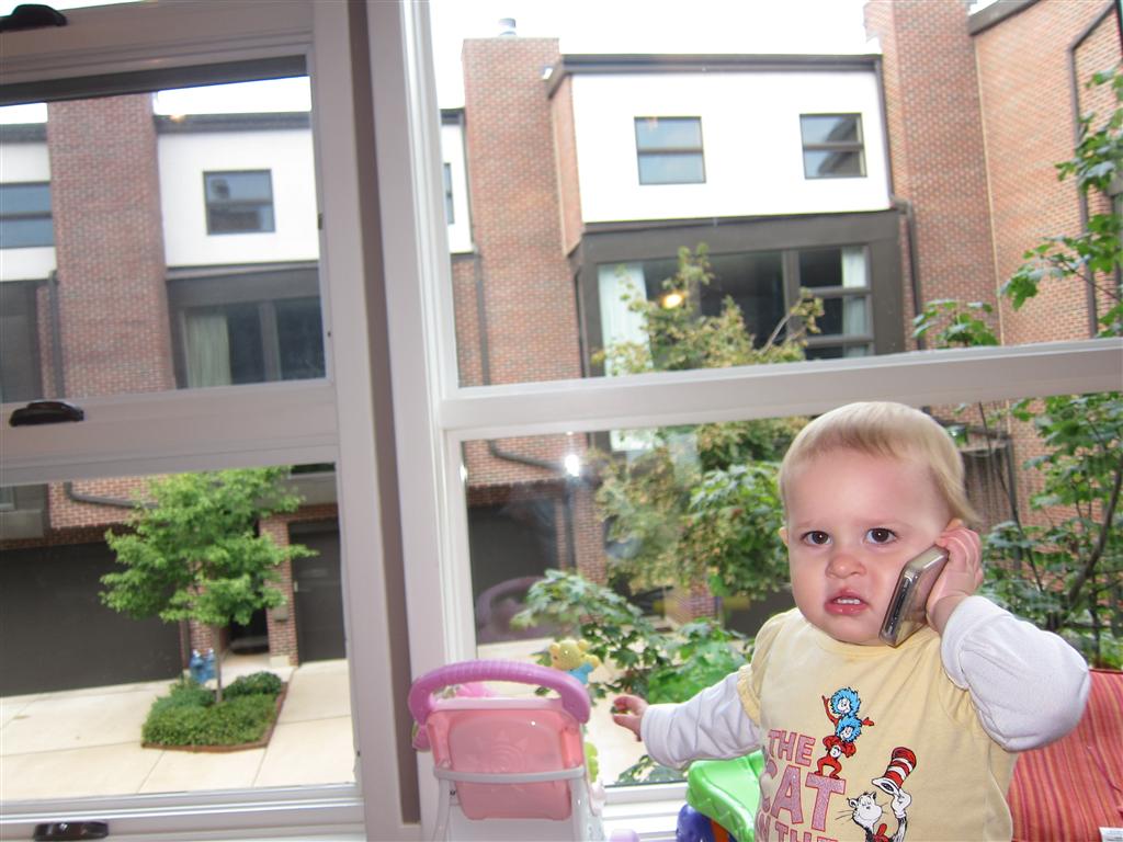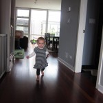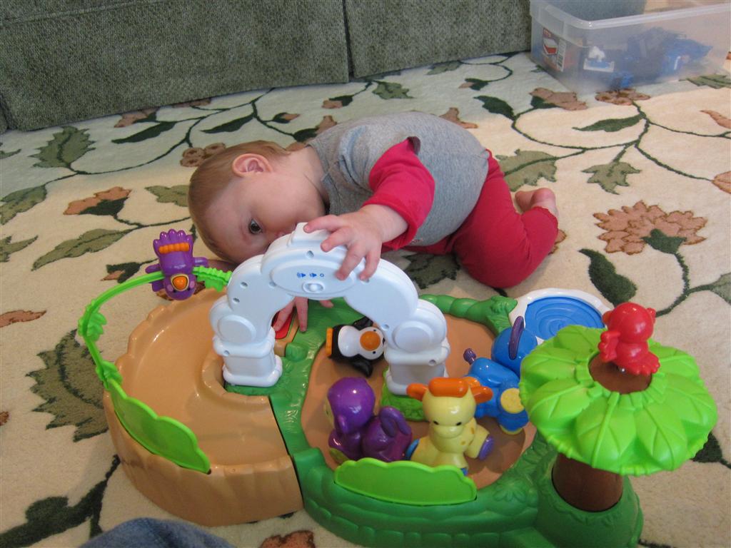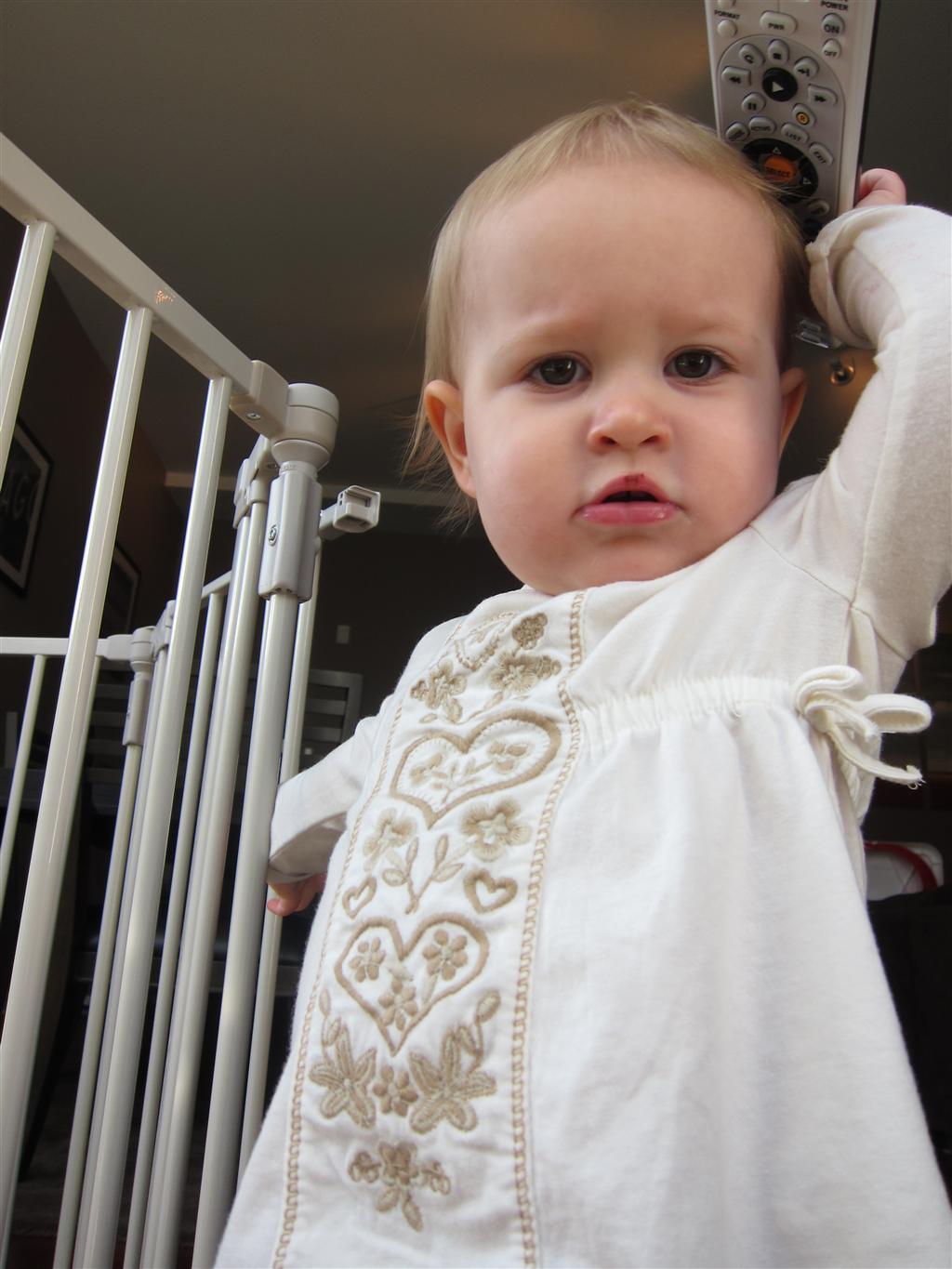 Eleanor had a week full of fall fun! Early in the week she took a trip to the aquarium for the first time. The ducks were definitely the biggest hit (I know – ducks at an aquarium – who knew?). At home there was lots of chasing the cat, and a new habit of holding all sorts of items up to her ear as if she was talking on the phone. The second half of the week brought a trip to visit Grandma and Grandpa, and Aunt Susan, Uncle Gabe, Mackenzie, Jack and Ben. They all took good care of Eleanor while Mom and Dad hit the town for a wedding. Eleanor did pretty well, and Grandma got some good snuggle time. Eleanor mastered saying “Zee” and “Ak” for “Mackenzie” and “Jack”, but the “Bee” for “Ben” still needs work.