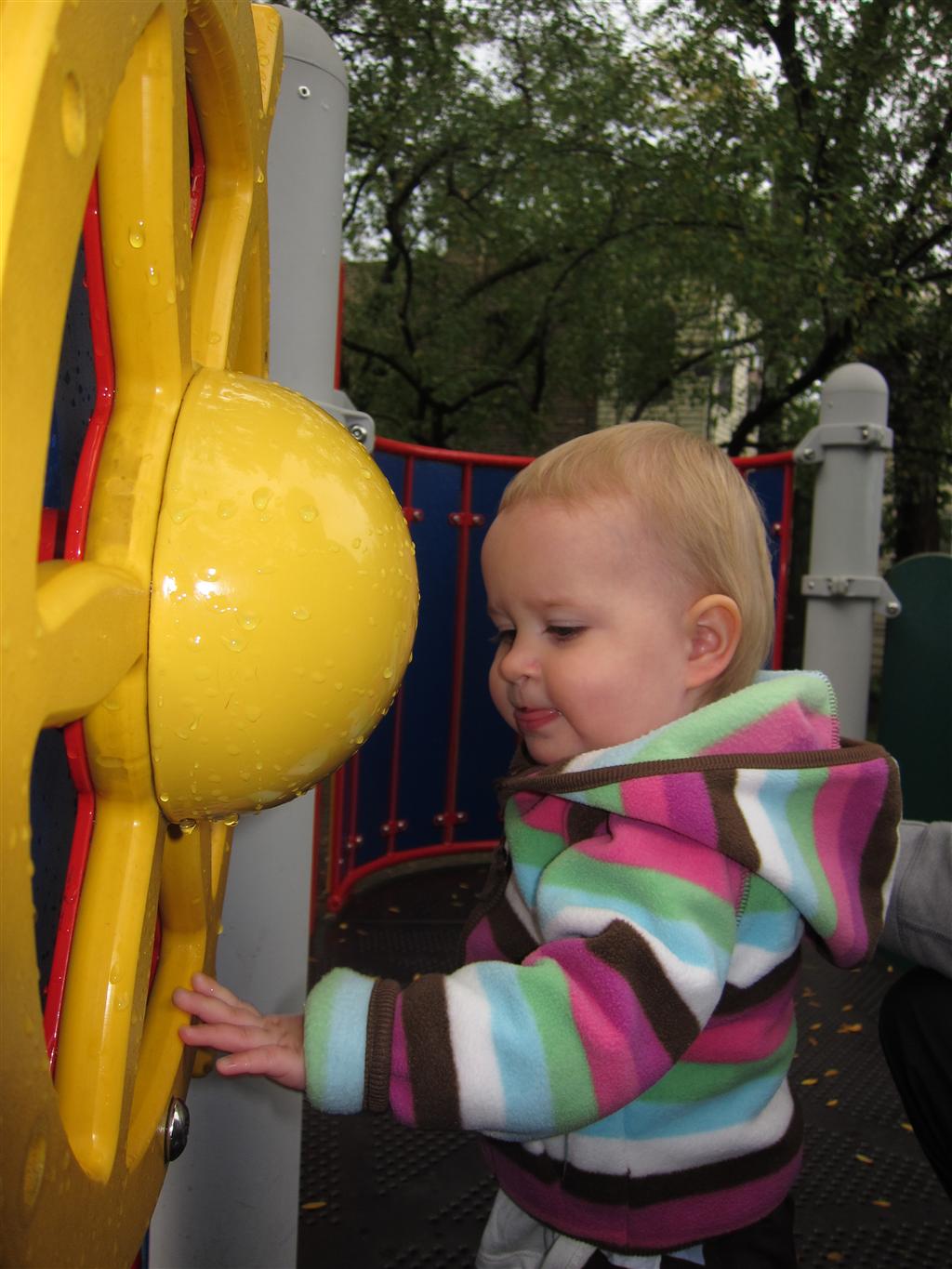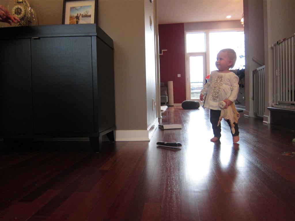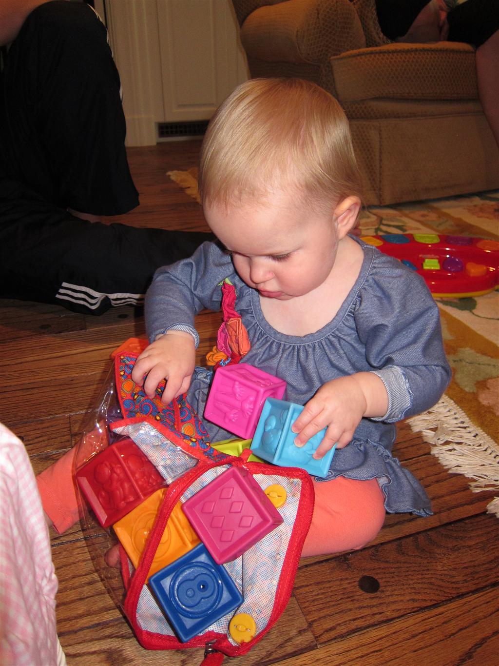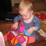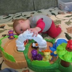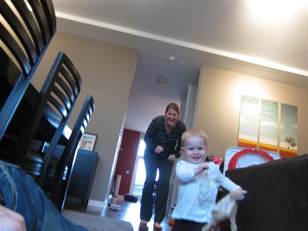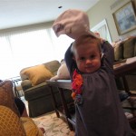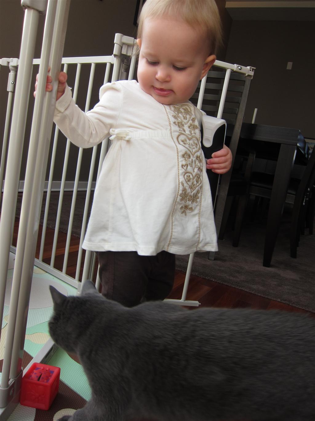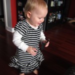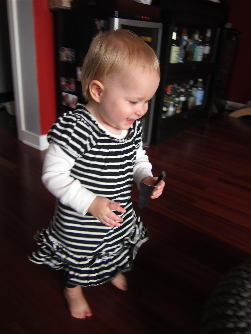 Eleanor had a week full of fall fun! Early in the week she took a trip to the aquarium for the first time. The ducks were definitely the biggest hit (I know – ducks at an aquarium – who knew?). At home there was lots of chasing the cat, and a new habit of holding all sorts of items up to her ear as if she was talking on the phone. The second half of the week brought a trip to visit Grandma and Grandpa, and Aunt Susan, Uncle Gabe, Mackenzie, Jack and Ben. They all took good care of Eleanor while Mom and Dad hit the town for a wedding. Eleanor did pretty well, and Grandma got some good snuggle time. Eleanor mastered saying “Zee” and “Ak” for “Mackenzie” and “Jack”, but the “Bee” for “Ben” still needs work.