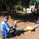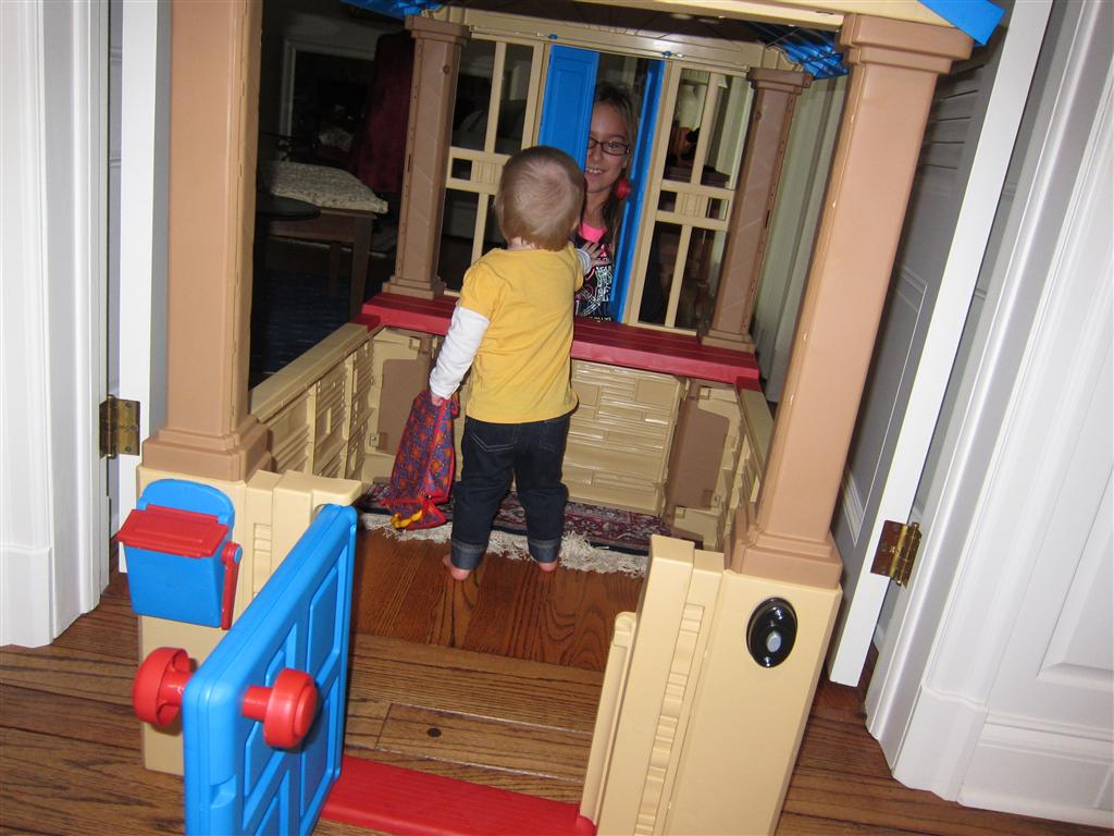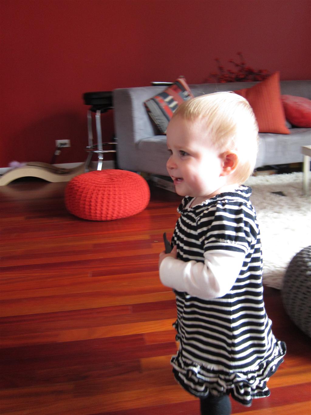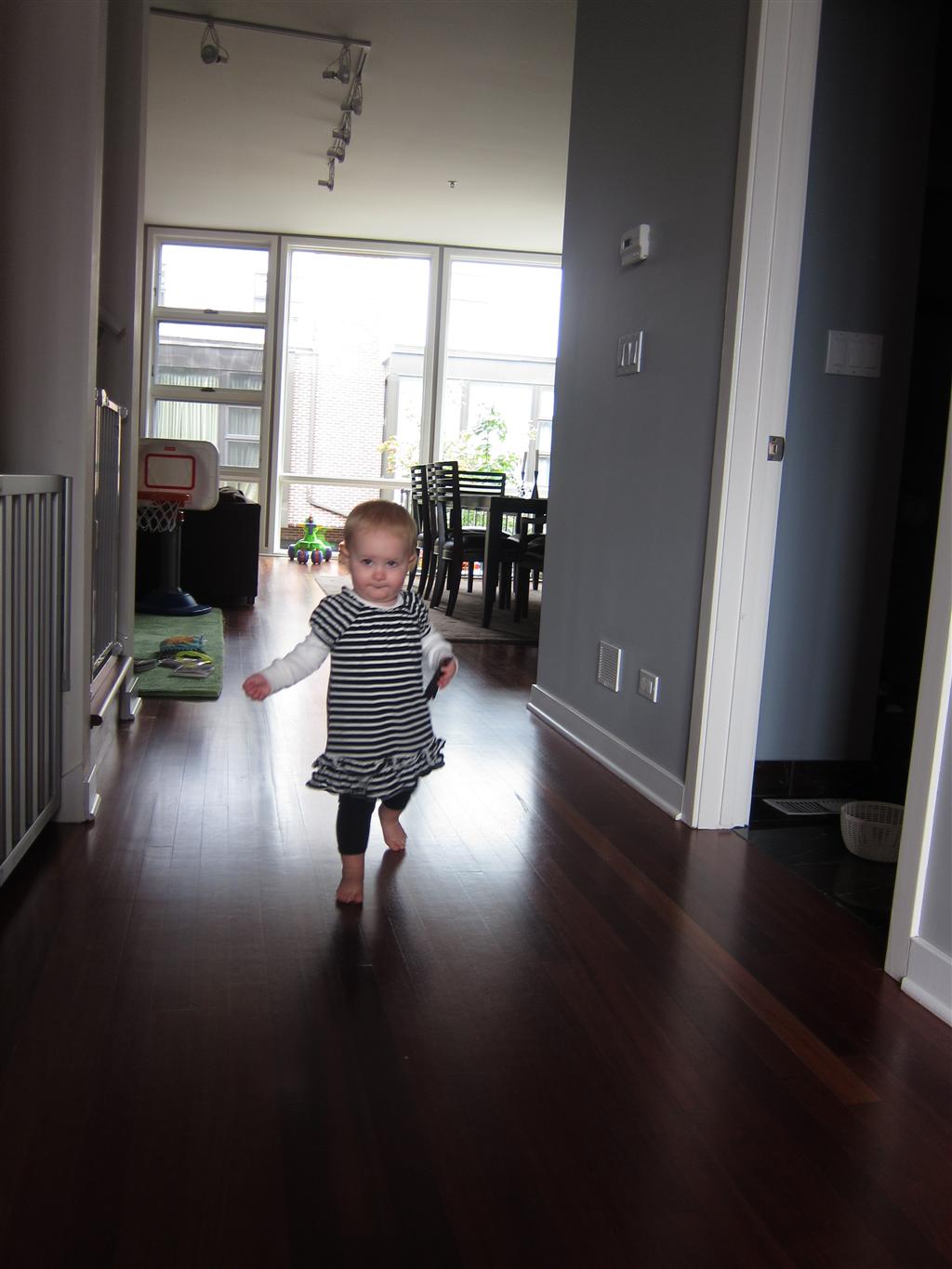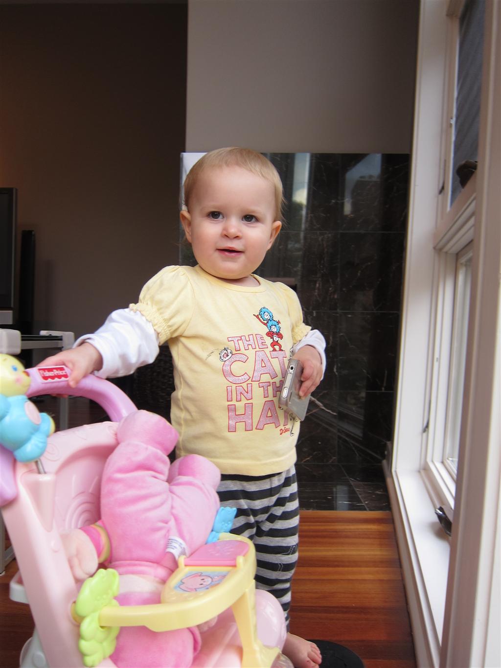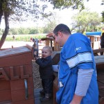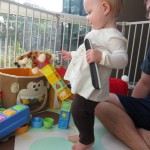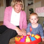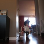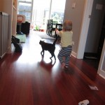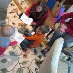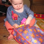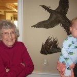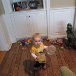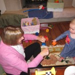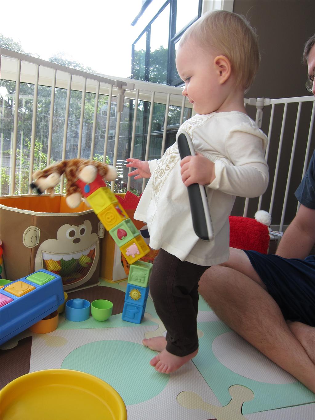 Eleanor had a week full of fall fun! Early in the week she took a trip to the aquarium for the first time. The ducks were definitely the biggest hit (I know – ducks at an aquarium – who knew?). At home there was lots of chasing the cat, and a new habit of holding all sorts of items up to her ear as if she was talking on the phone. The second half of the week brought a trip to visit Grandma and Grandpa, and Aunt Susan, Uncle Gabe, Mackenzie, Jack and Ben. They all took good care of Eleanor while Mom and Dad hit the town for a wedding. Eleanor did pretty well, and Grandma got some good snuggle time. Eleanor mastered saying “Zee” and “Ak” for “Mackenzie” and “Jack”, but the “Bee” for “Ben” still needs work.