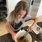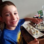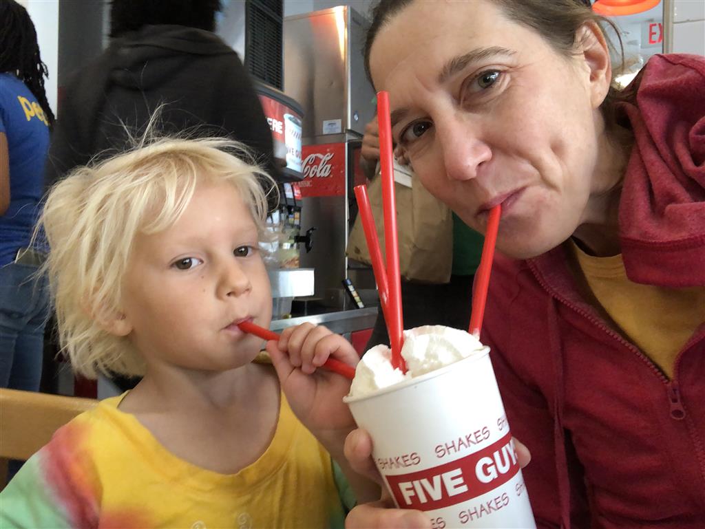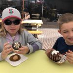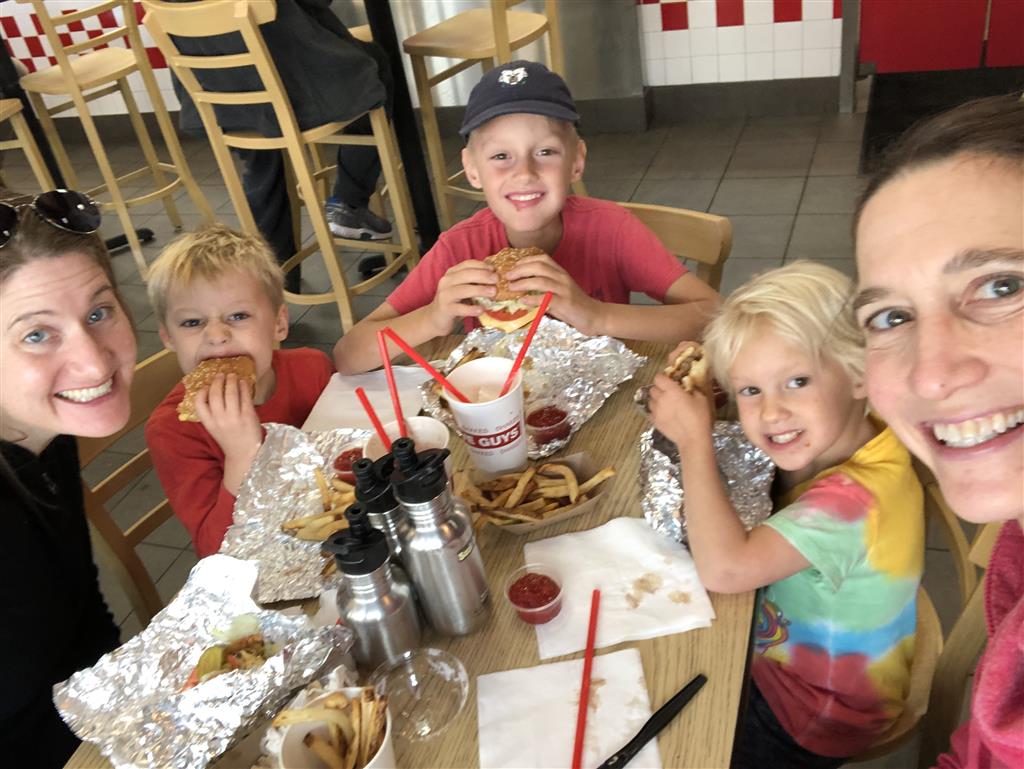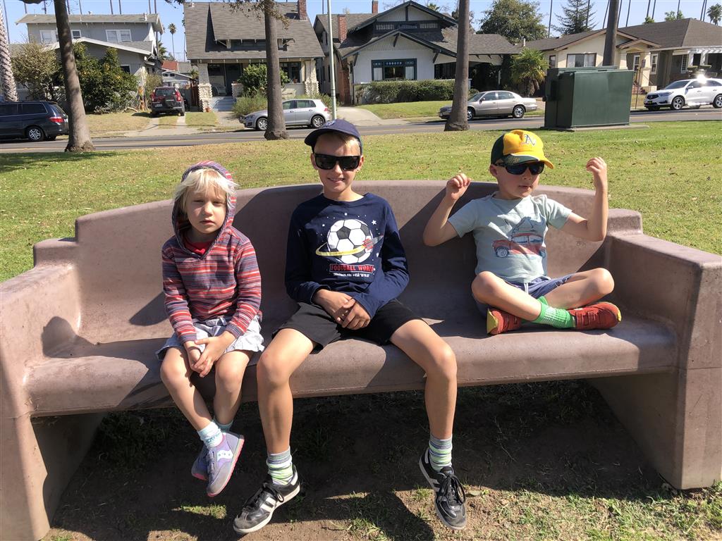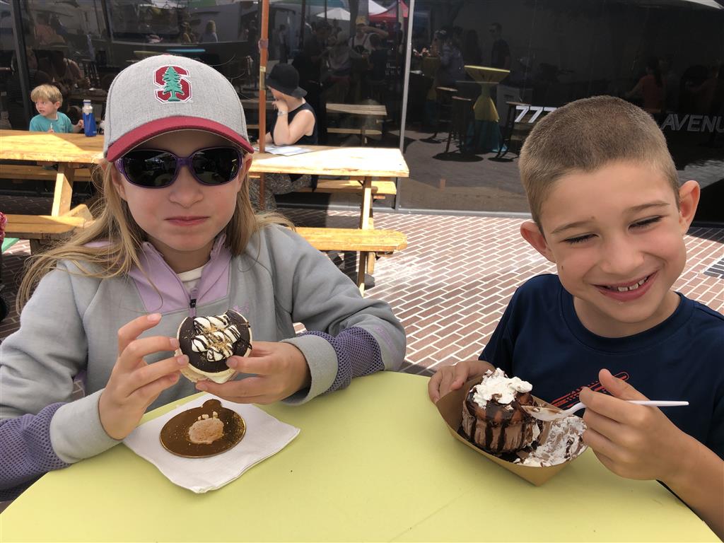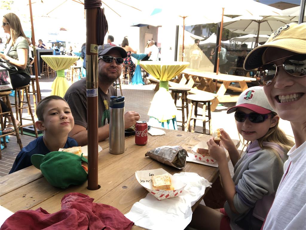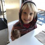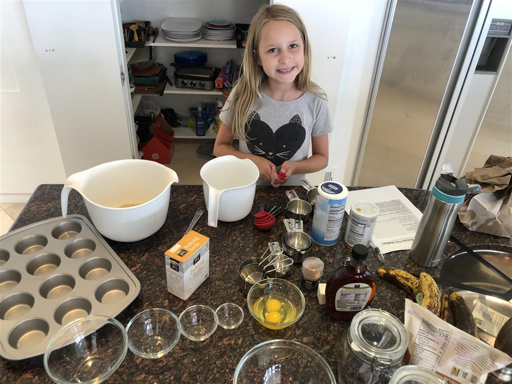 Back home we had a busy weekend of activities. Henry had soccer and football games, and unfortunately both teams returned to their losing ways. Then, on Sunday we went to the local art festival – and both kids picked out an item or two to decorate their rooms. Earlier in the week, Eleanor and Mom baked up a tasty batch of banana chocolate chip muffins. Lucky for everyone, Eleanor was in charge of deciding how many chips would be added to the batter. Turns out it is important to have two different sizes of chips :)