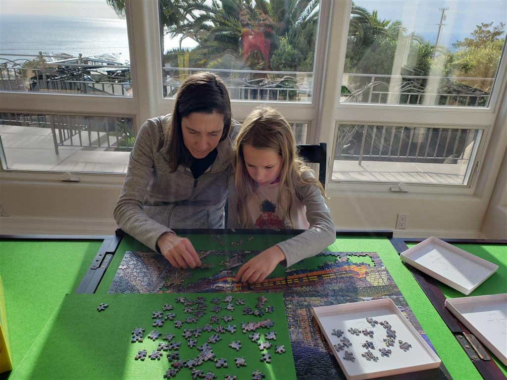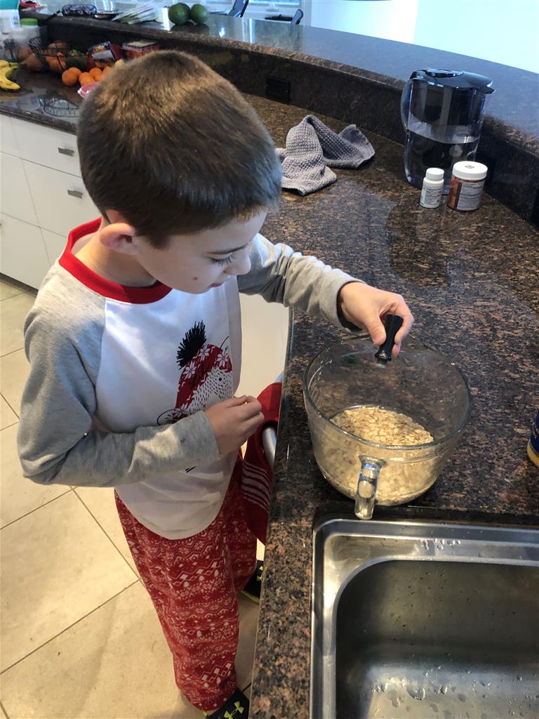 Well, we made it through our first week of home quarantine. The kids have been getting assignments from their teachers via email – Eleanor has had a full day of work most days, and Henry has had a bit less. There was lots of puzzling and a fair amount of game playing (board and video). Henry made green oatmeal to celebrate St. Patrick’s Day. We’ve been using bike rides and walks to stay active a bit. Mom and Henry devised a “Floor Is Lava” obstacle game in the basement. We also broke out a new board game “Mysterium” which the kids enjoyed.