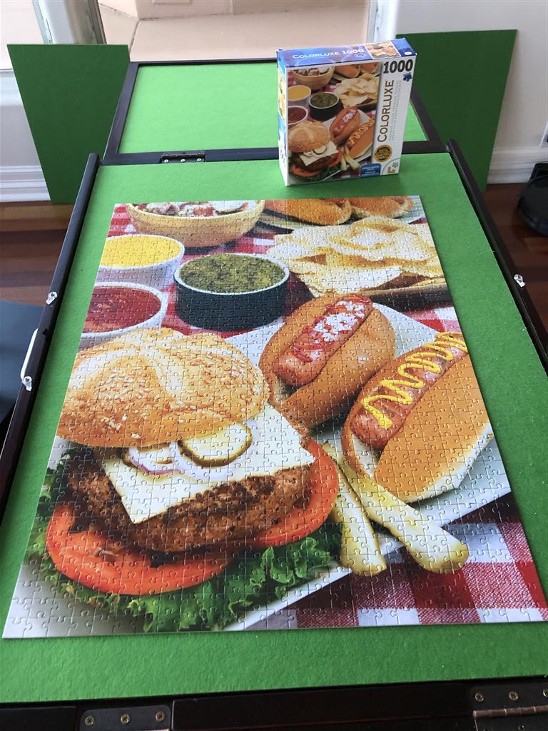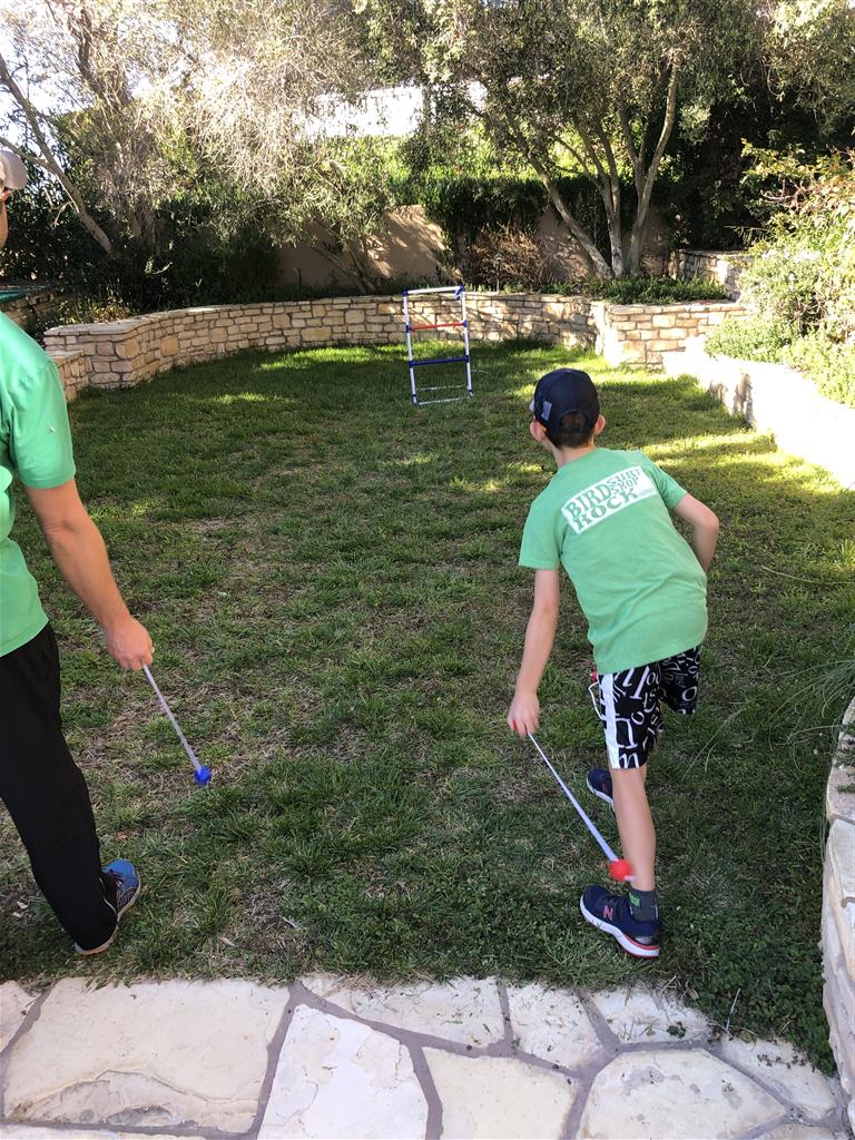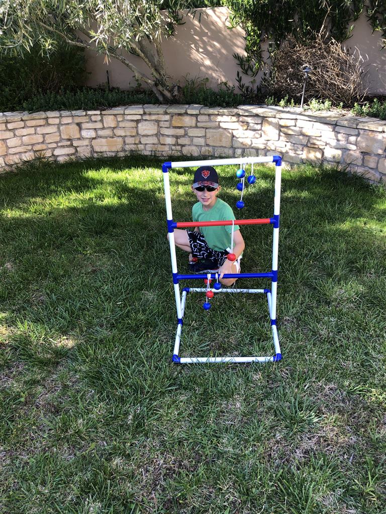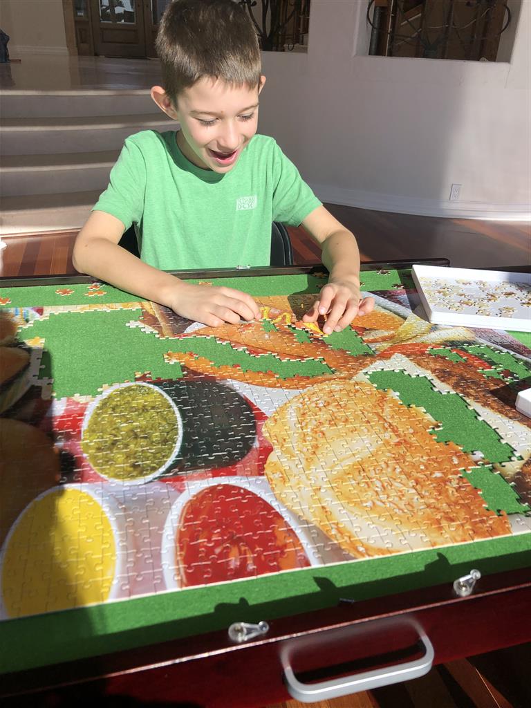 We broke out the lawn games this week to entertain ourselves outdoors in addition to our indoor puzzling and gaming. The kids have been keeping busy with work from their teachers and zoom conferences. We rigged up a document camera out of some cardboard boxes and my phone, and with that we were able to play Scattegories over Skype with Grandma and Grandpa and Uncle B. We’ve also played a few Fortnite matches with the Martins.
