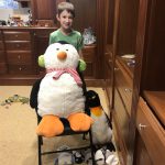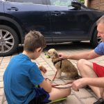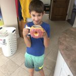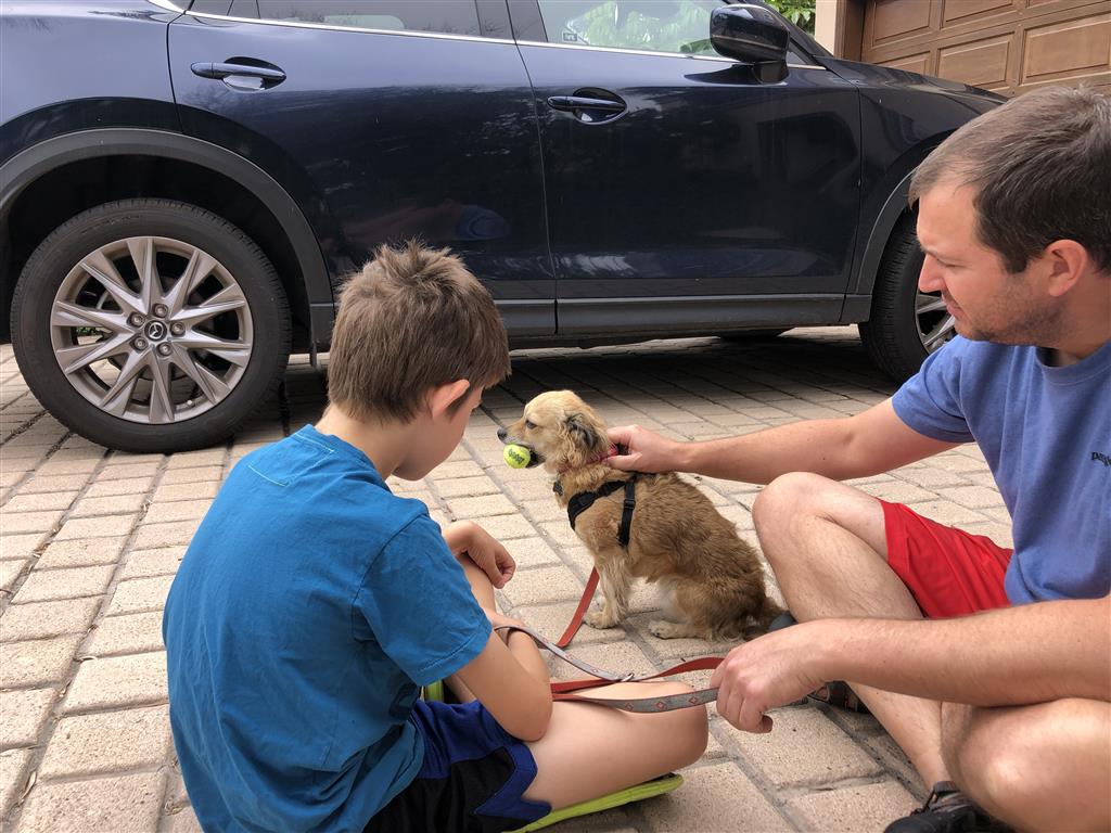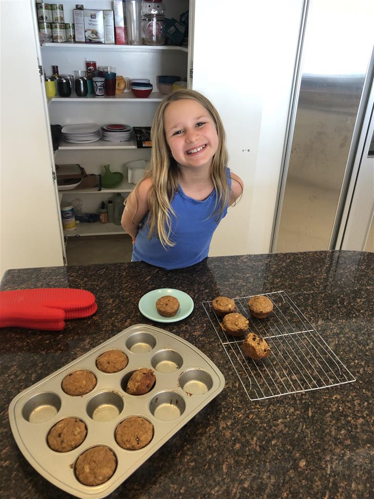 Eleanor and Mom made banana muffins this week, which were very tasty. We also had two furry visitors – one invited and one not! Mom’s friend Ally brought over her pup Squatch for a quick visit, and the black cat that we see occasionally stopped by and sat in the yard with us for a few minutes. I really wonder where he lives! Looking forward to a couple of 4 day school weeks ahead!