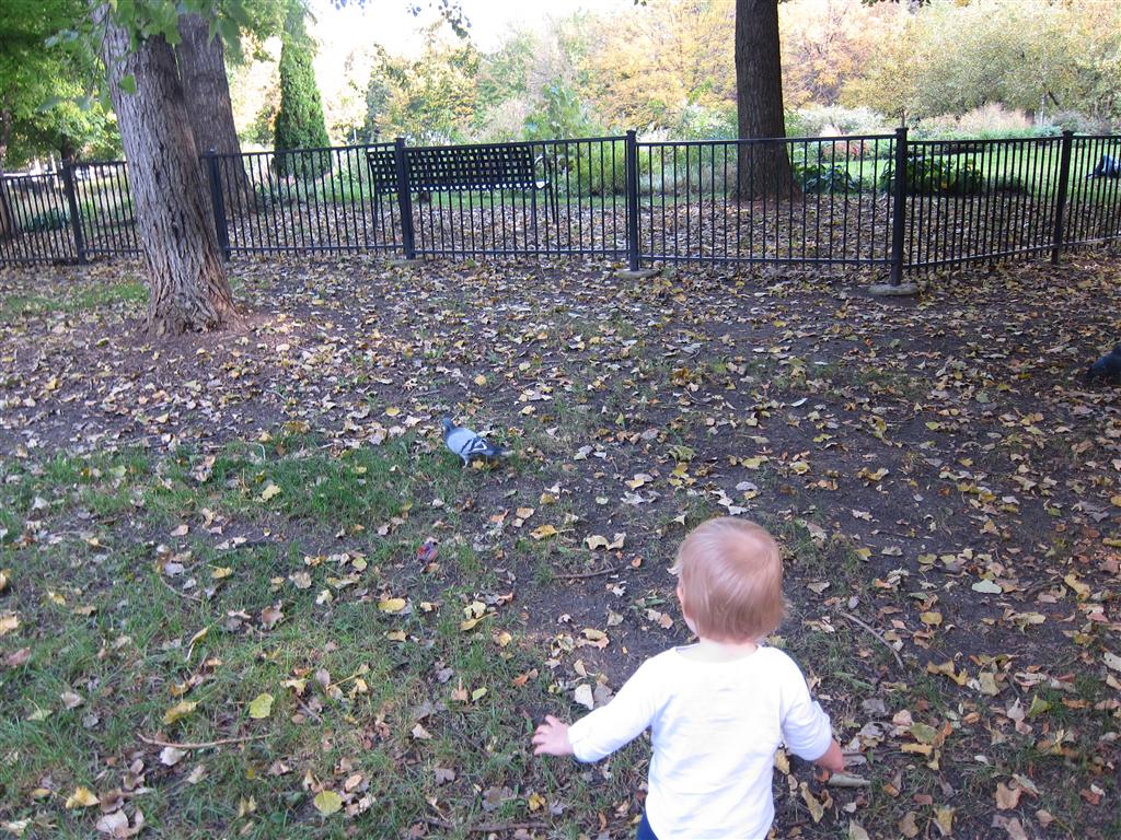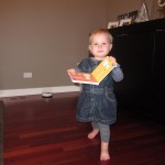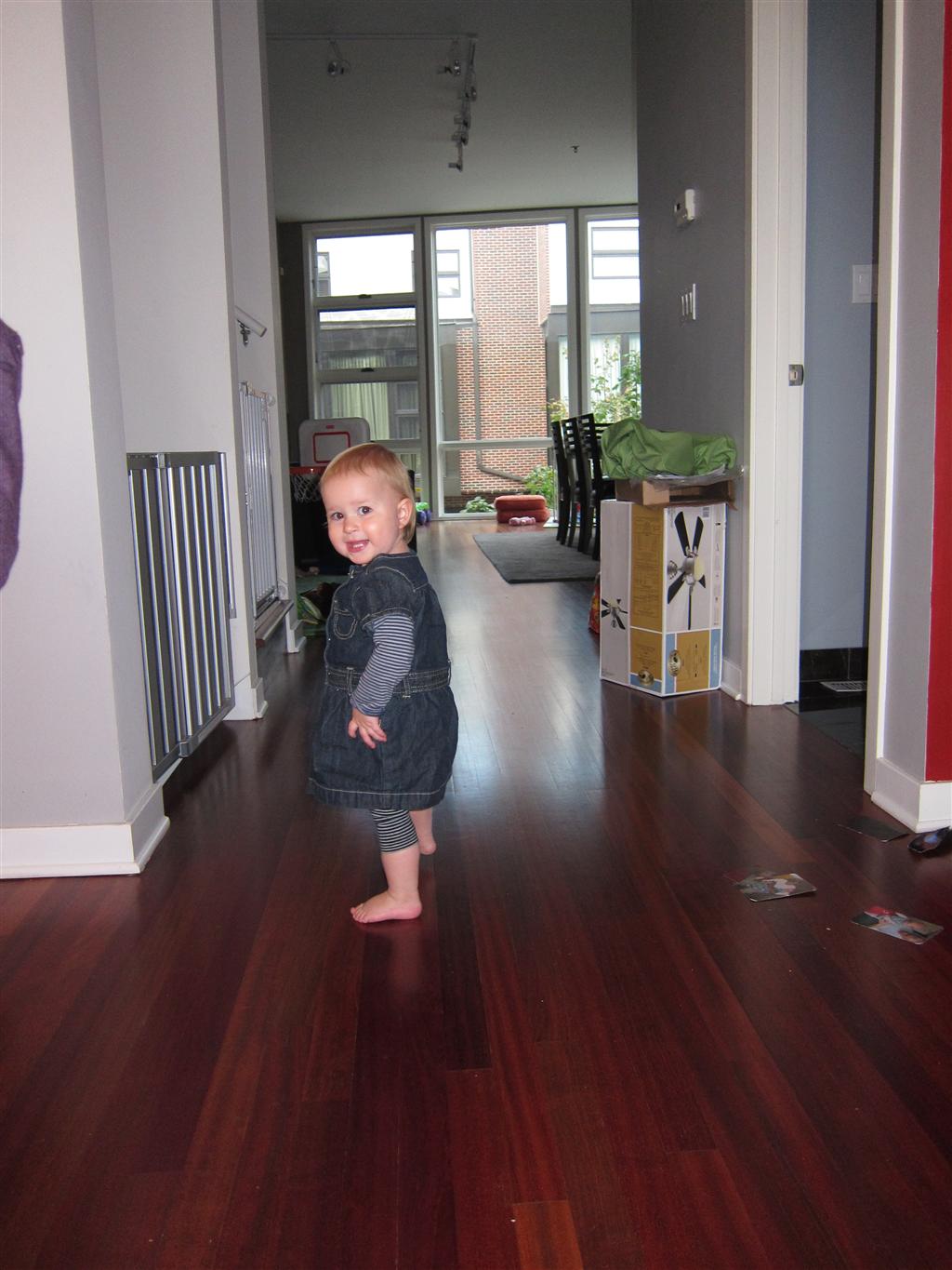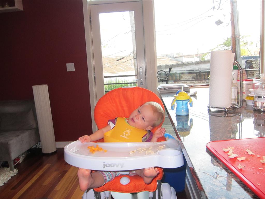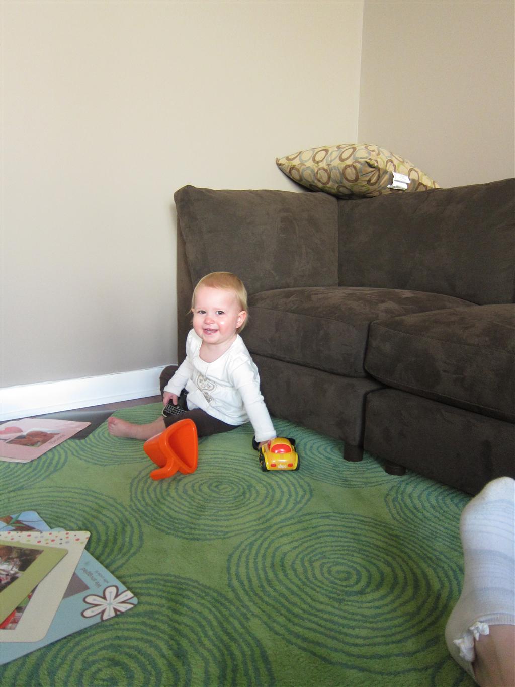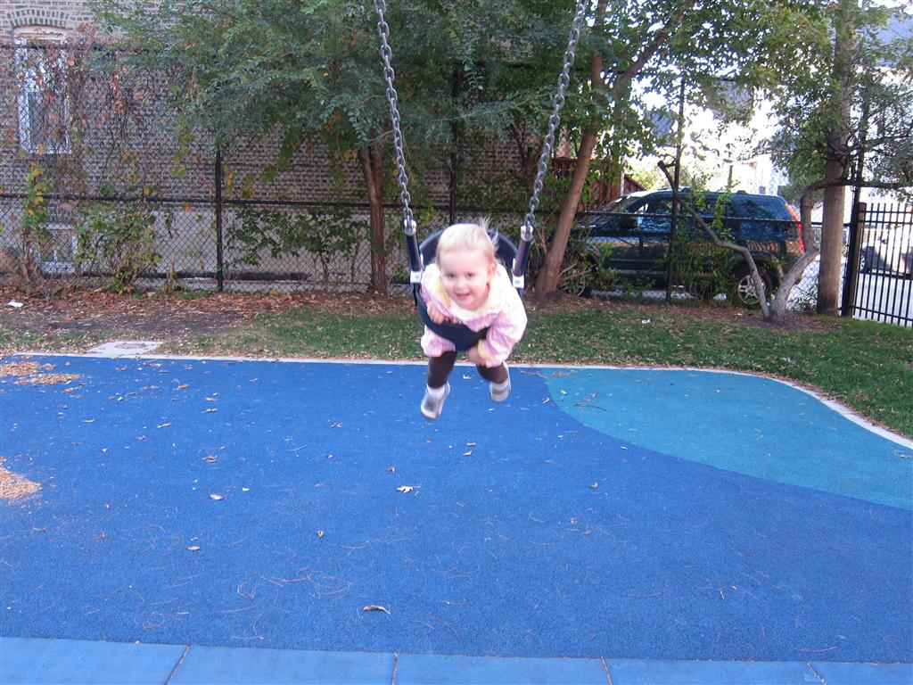 Eleanor took a trip to the pumpkin patch this week, among other fun fall activities, and also had her first swim lesson with Dad. She also went to a music performance where she mostly ignored the singer, but did mistake an orange crayon for a carrot. Fortunately, Mom noticed before too much wax was ingested. Eleanor is learning some hand signals to the song “No more monkeys jumping on the bed”, which is very cute. We will have to try and get it on video. She is also working on stepping up on small steps, she especially likes the cat’s scratch pad and small drops between slabs on sidewalks, as well as transitioning from sidewalk to grass. She is very proud of herself when she successfully navigates one by herself. Her last new trick of the week is grabbing her belly button when asked :)