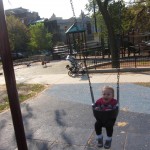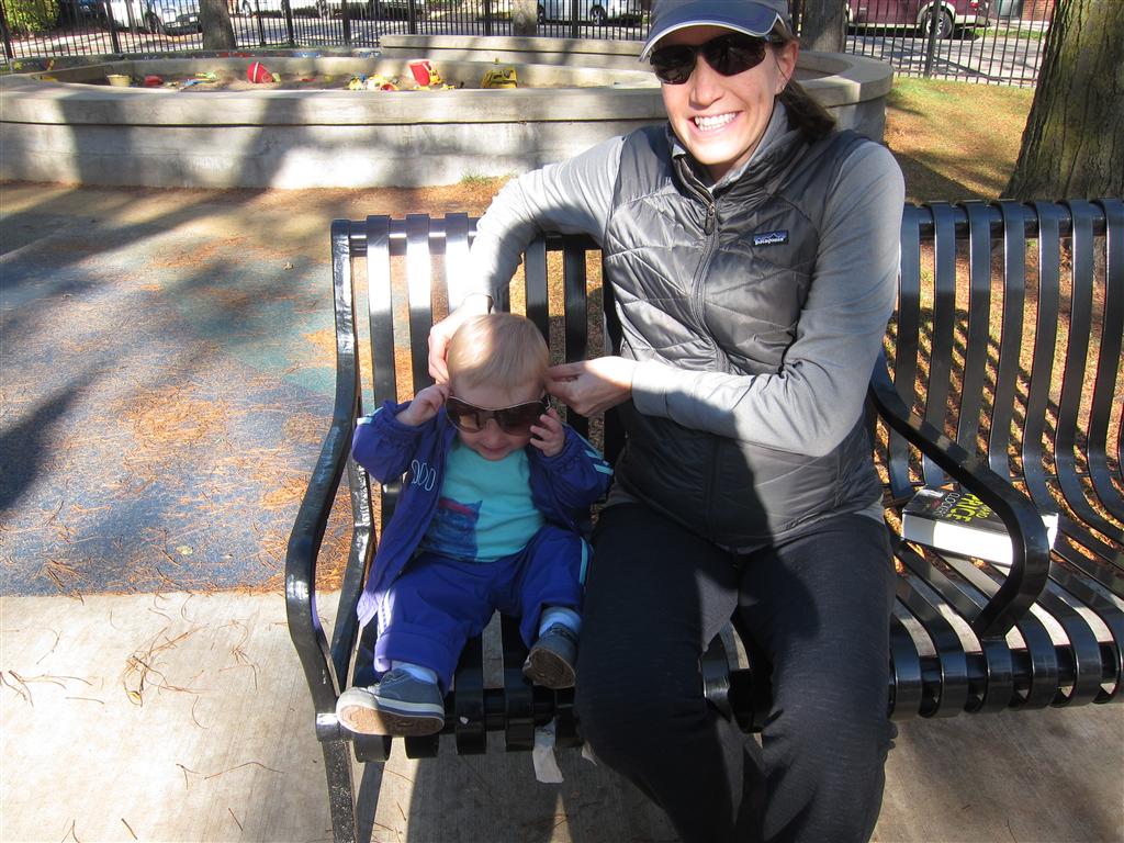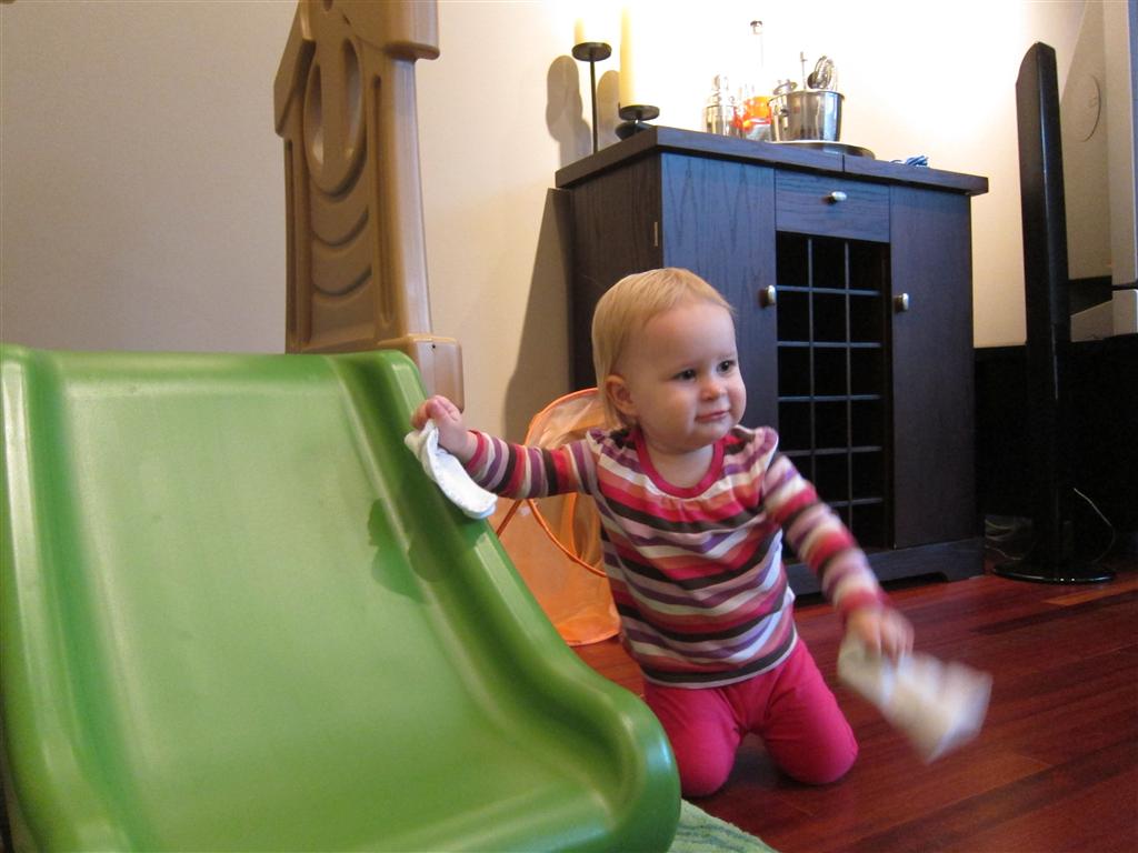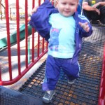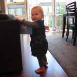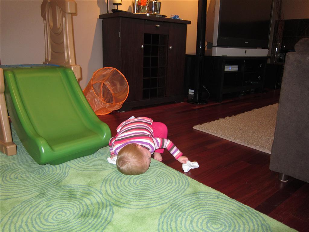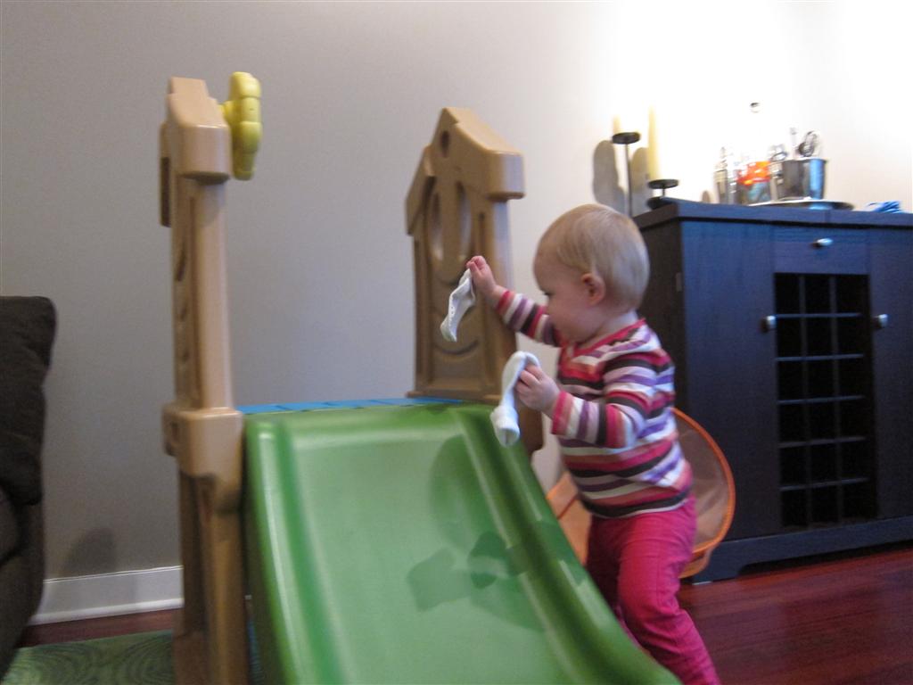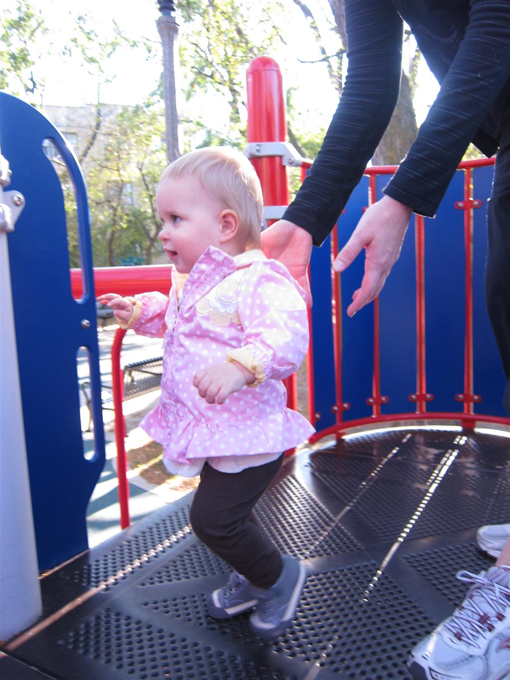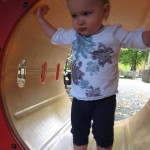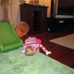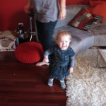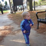 Eleanor took a trip to the pumpkin patch this week, among other fun fall activities, and also had her first swim lesson with Dad. She also went to a music performance where she mostly ignored the singer, but did mistake an orange crayon for a carrot. Fortunately, Mom noticed before too much wax was ingested. Eleanor is learning some hand signals to the song “No more monkeys jumping on the bed”, which is very cute. We will have to try and get it on video. She is also working on stepping up on small steps, she especially likes the cat’s scratch pad and small drops between slabs on sidewalks, as well as transitioning from sidewalk to grass. She is very proud of herself when she successfully navigates one by herself. Her last new trick of the week is grabbing her belly button when asked :)