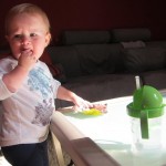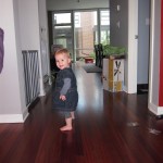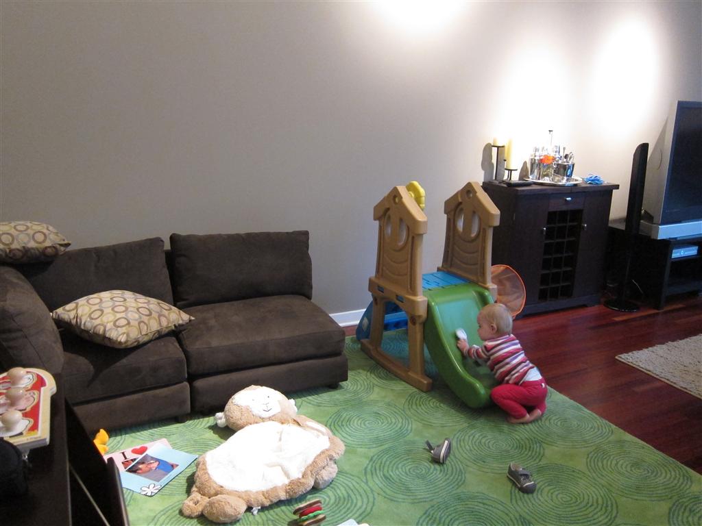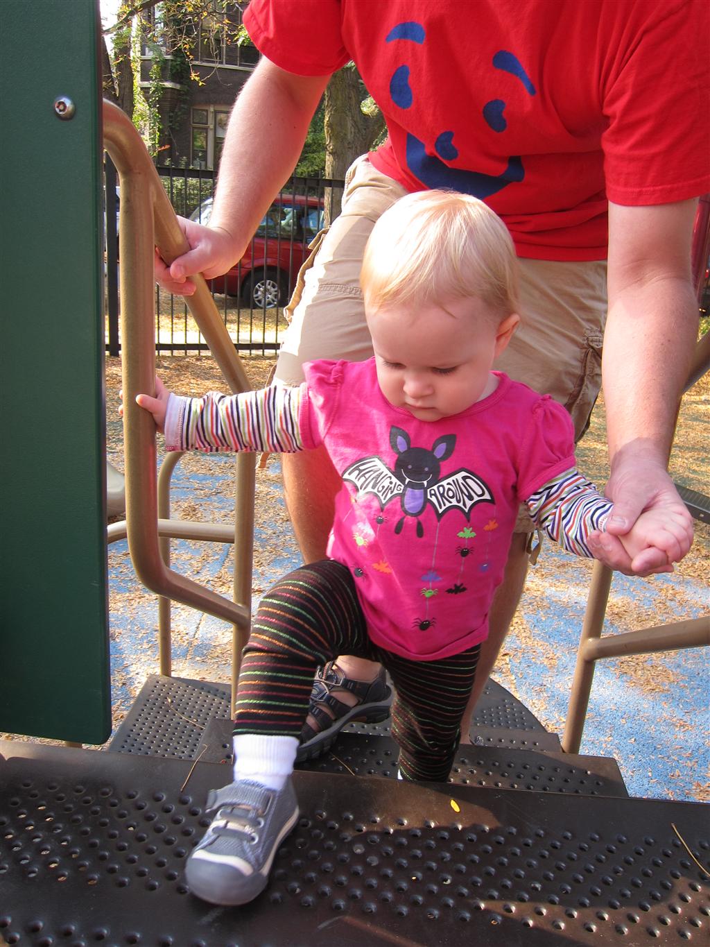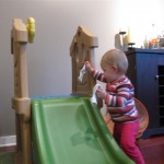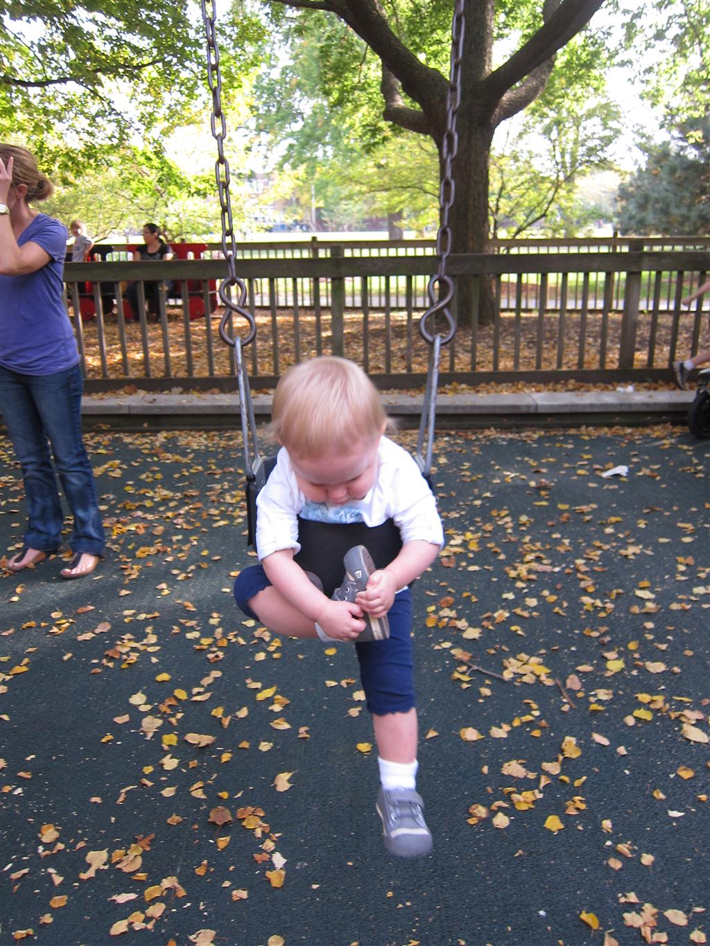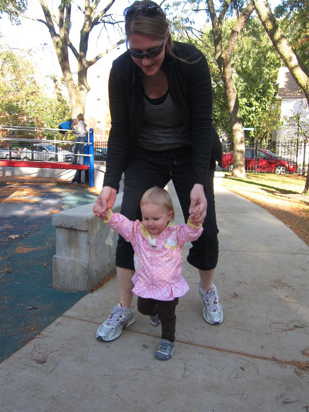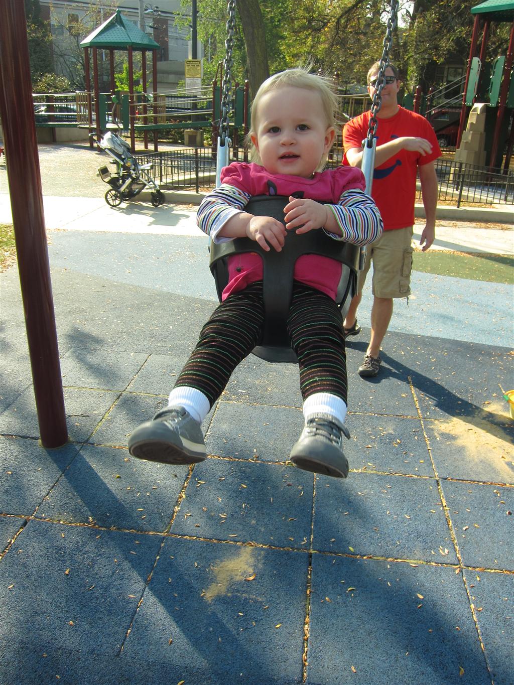 Eleanor took a trip to the pumpkin patch this week, among other fun fall activities, and also had her first swim lesson with Dad. She also went to a music performance where she mostly ignored the singer, but did mistake an orange crayon for a carrot. Fortunately, Mom noticed before too much wax was ingested. Eleanor is learning some hand signals to the song “No more monkeys jumping on the bed”, which is very cute. We will have to try and get it on video. She is also working on stepping up on small steps, she especially likes the cat’s scratch pad and small drops between slabs on sidewalks, as well as transitioning from sidewalk to grass. She is very proud of herself when she successfully navigates one by herself. Her last new trick of the week is grabbing her belly button when asked :)
