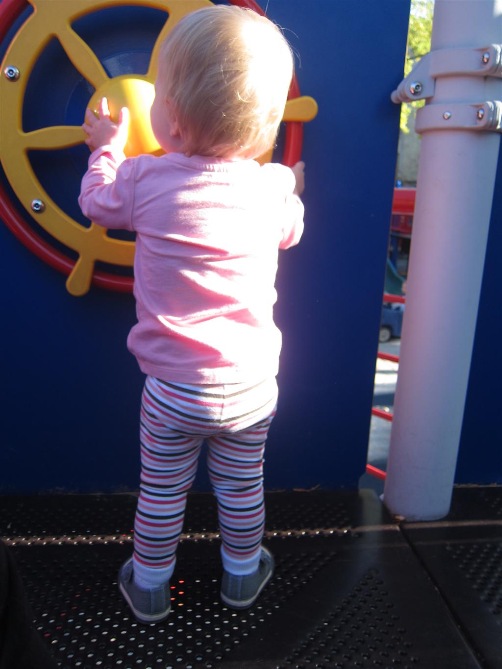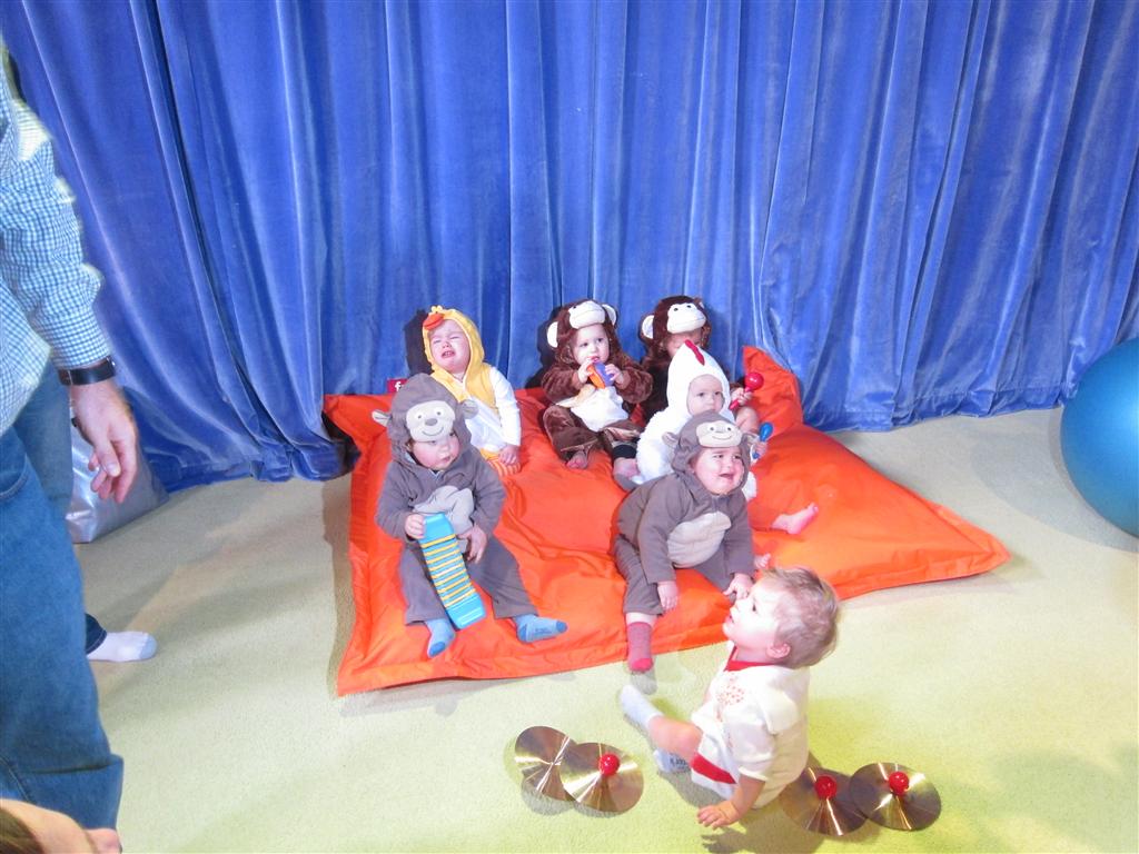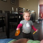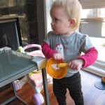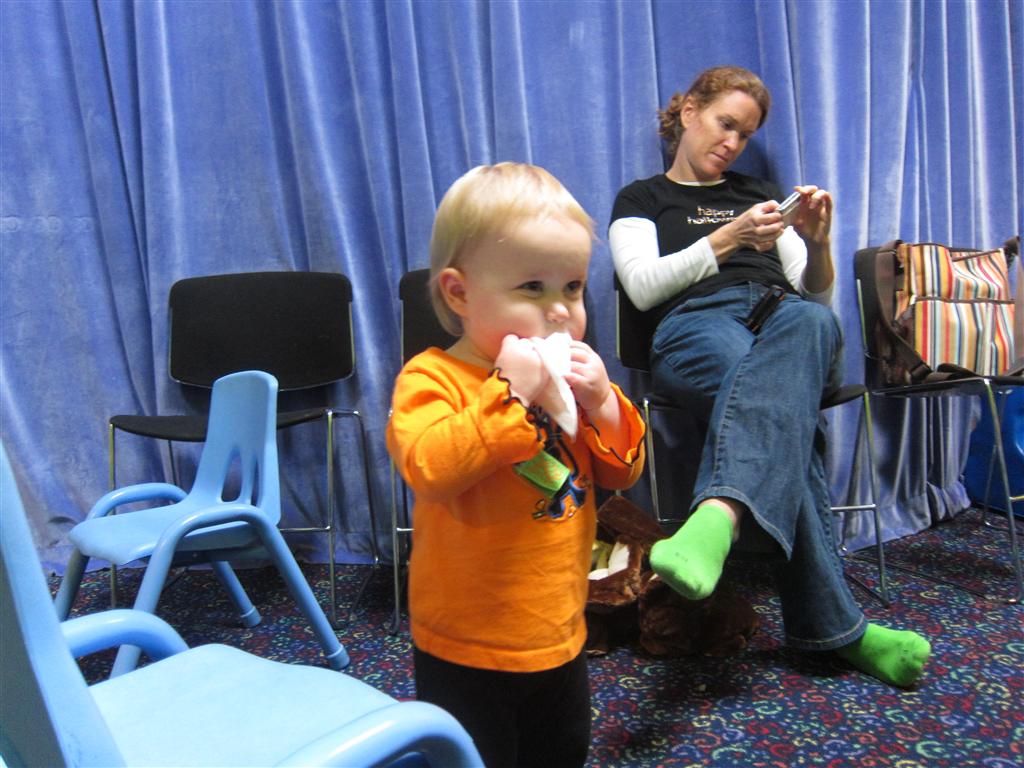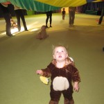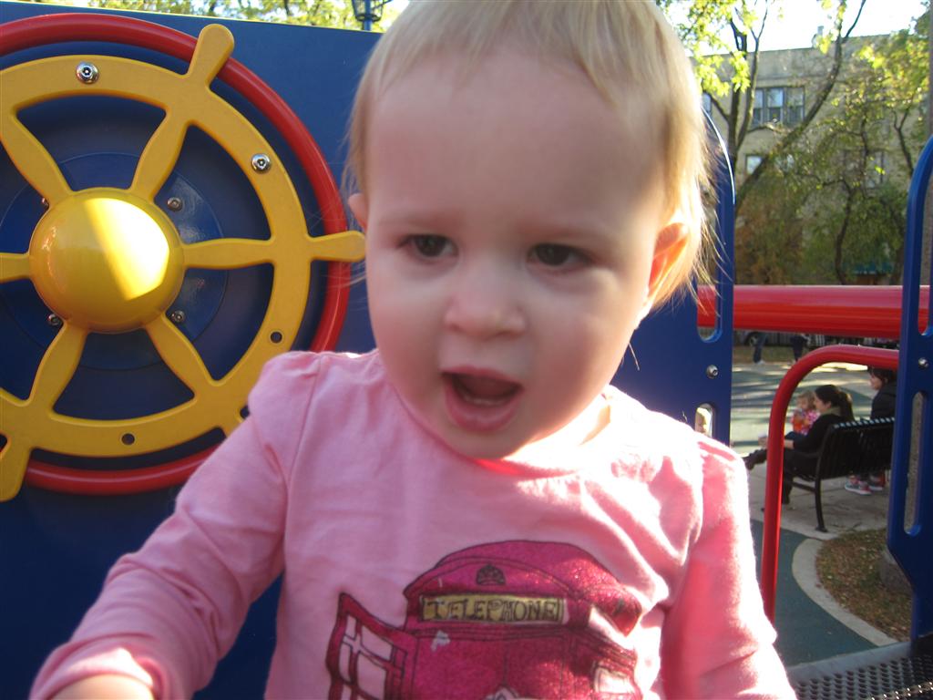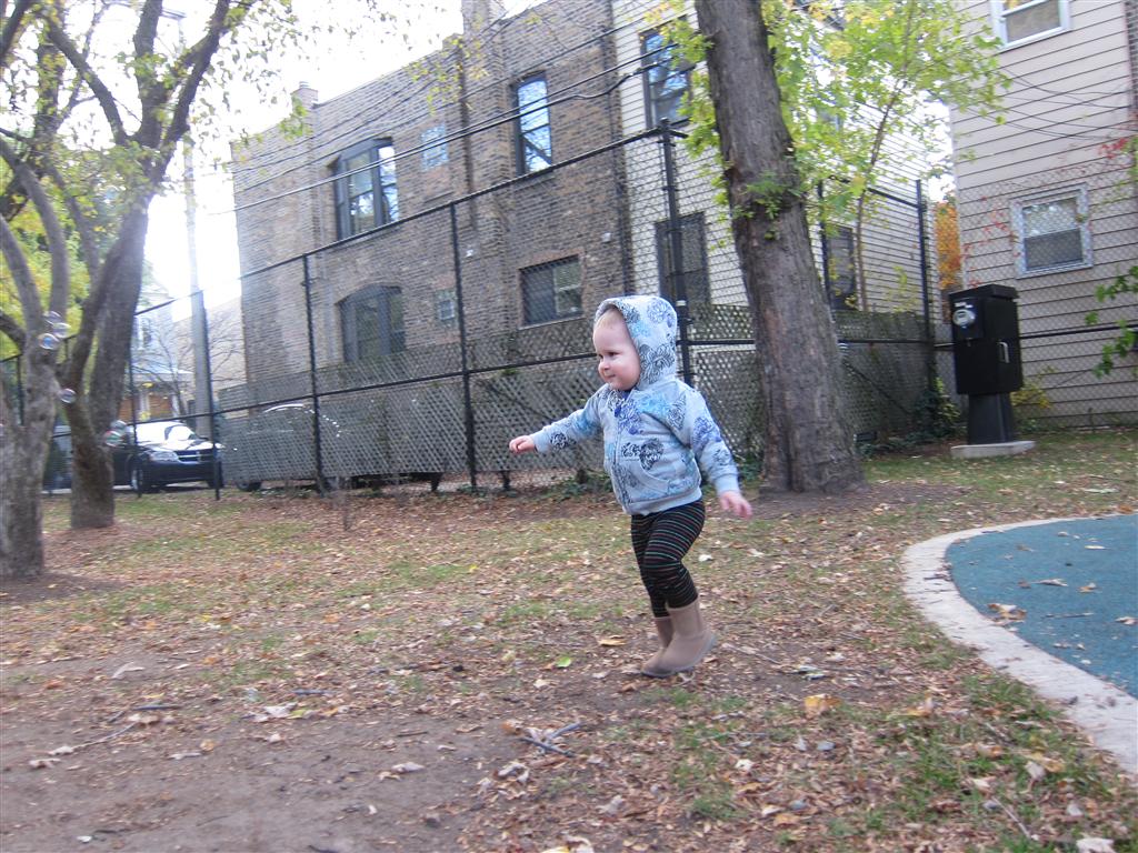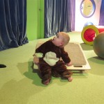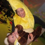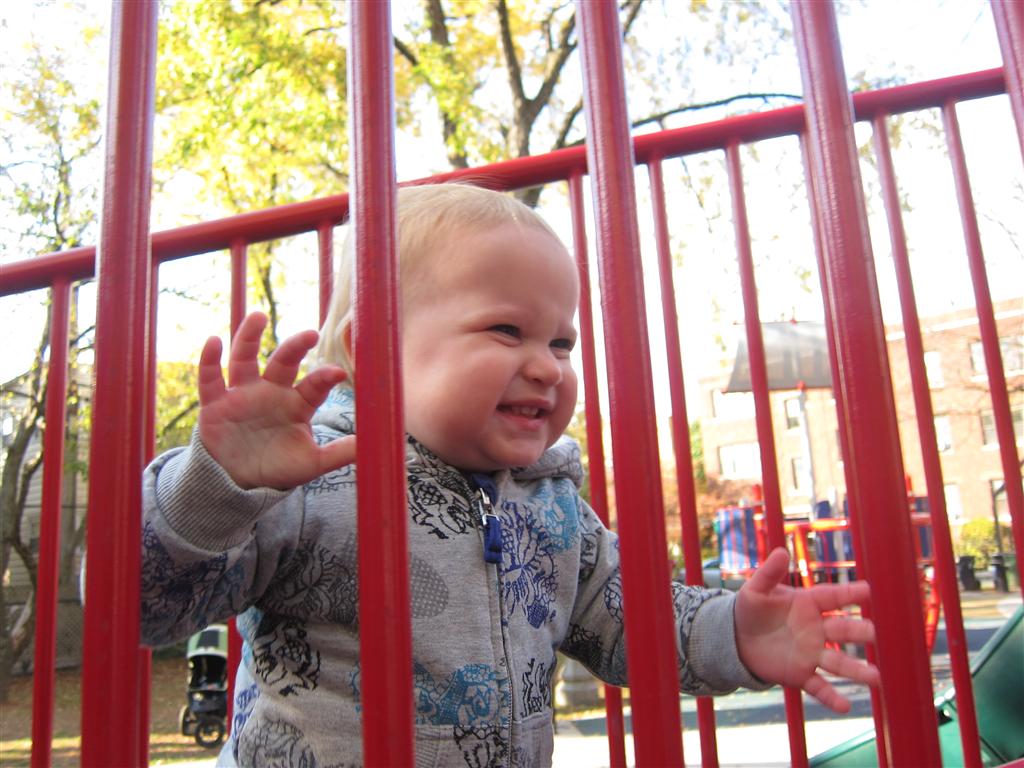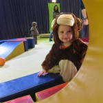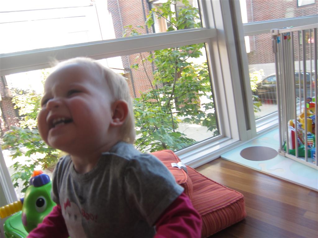 Eleanor maximized her costume time this week by participating in two Halloween parties, and Halloween is still coming up tomorrow! She dressed up as a monkey, a costume that she choose herself. While walking down the aisle at target, Eleanor got very excited pointing and making monkey sounds when she saw the costume on the shelf. A couple of her friends from music class also dressed up as monkeys, making for some fun pictures. Eleanor completed the monkey costume at the party on Sunday by picking up two cymbals. If only she had a box to hop out of :) In a notable first this week, Eleanor can now stack four blocks on top of each other. Her previous best was two, and mostly by accident. Now she is interested in trying to build towers as well as knock them down. While playing with our neighbor Zack, Eleanor watched him “march” and has picked that up. I even caught her “high stepping”