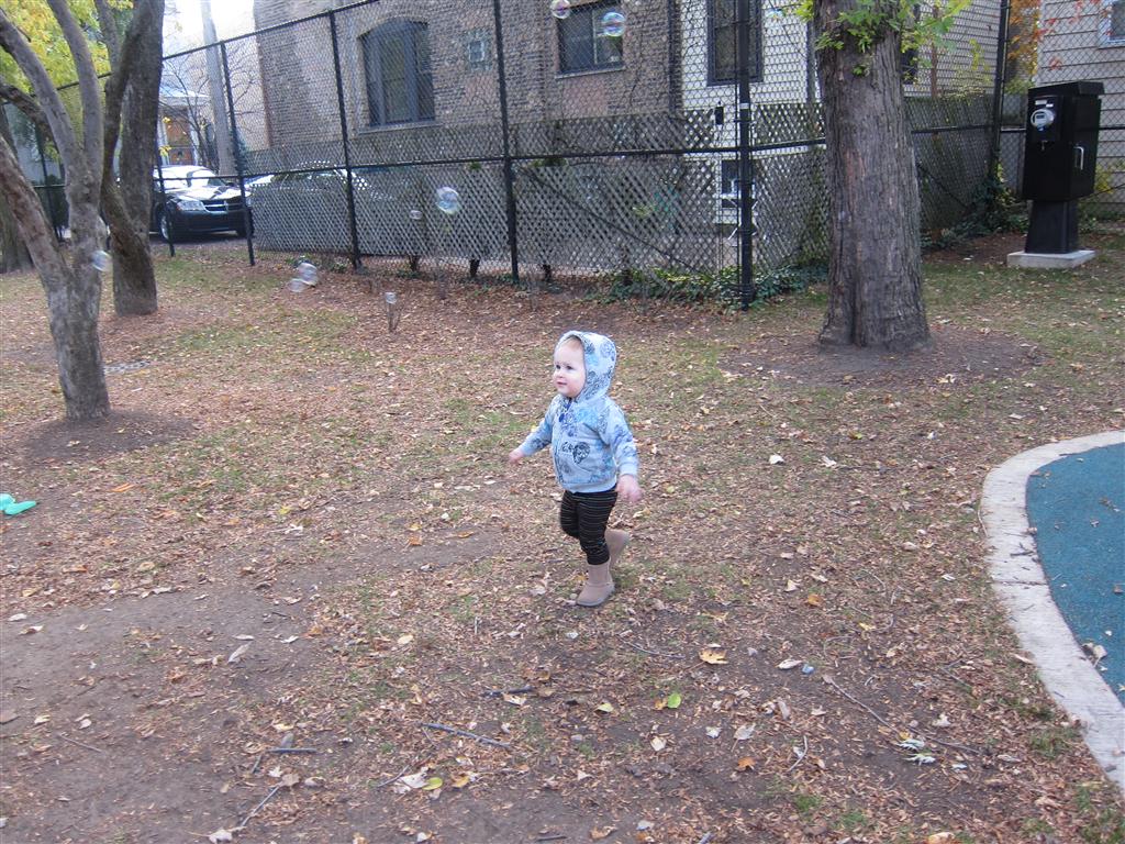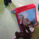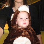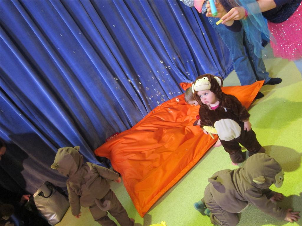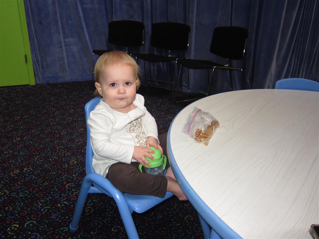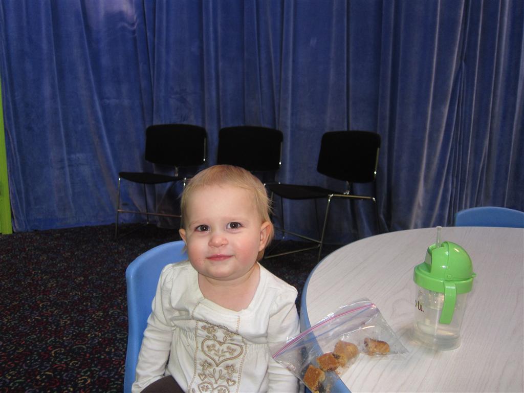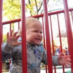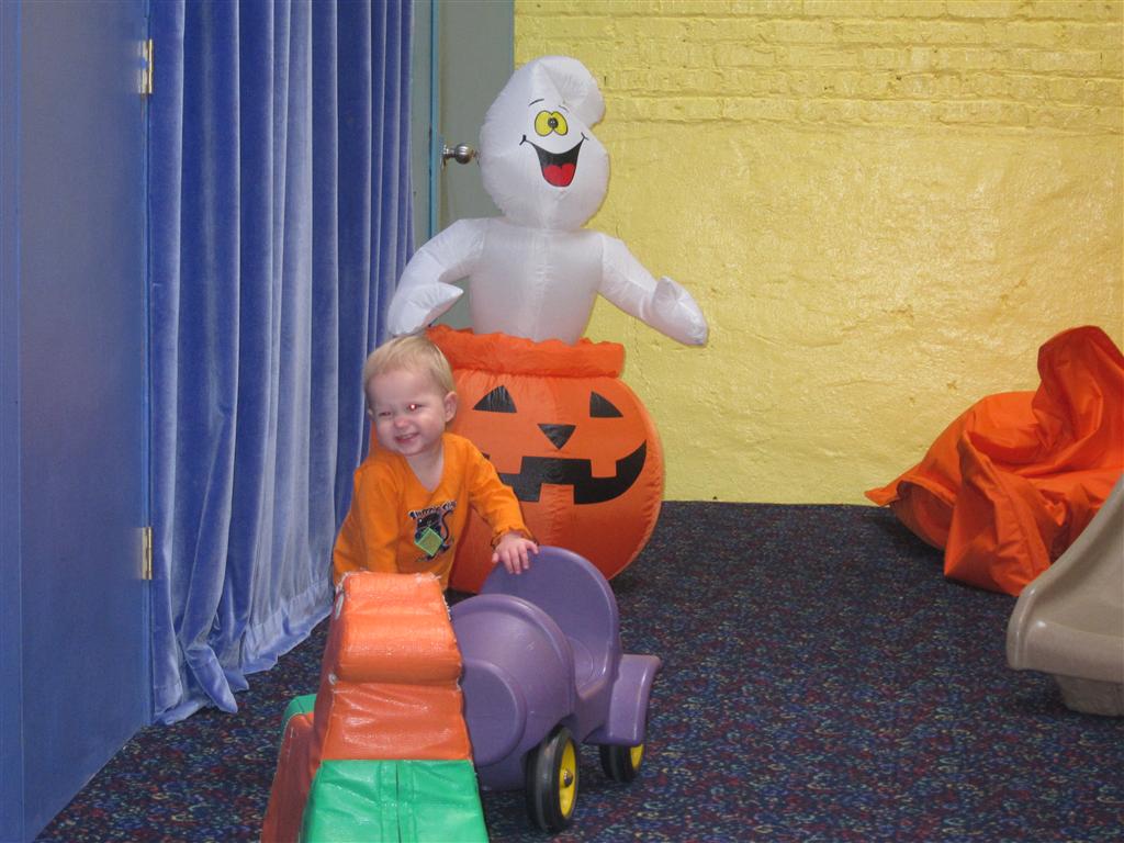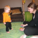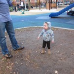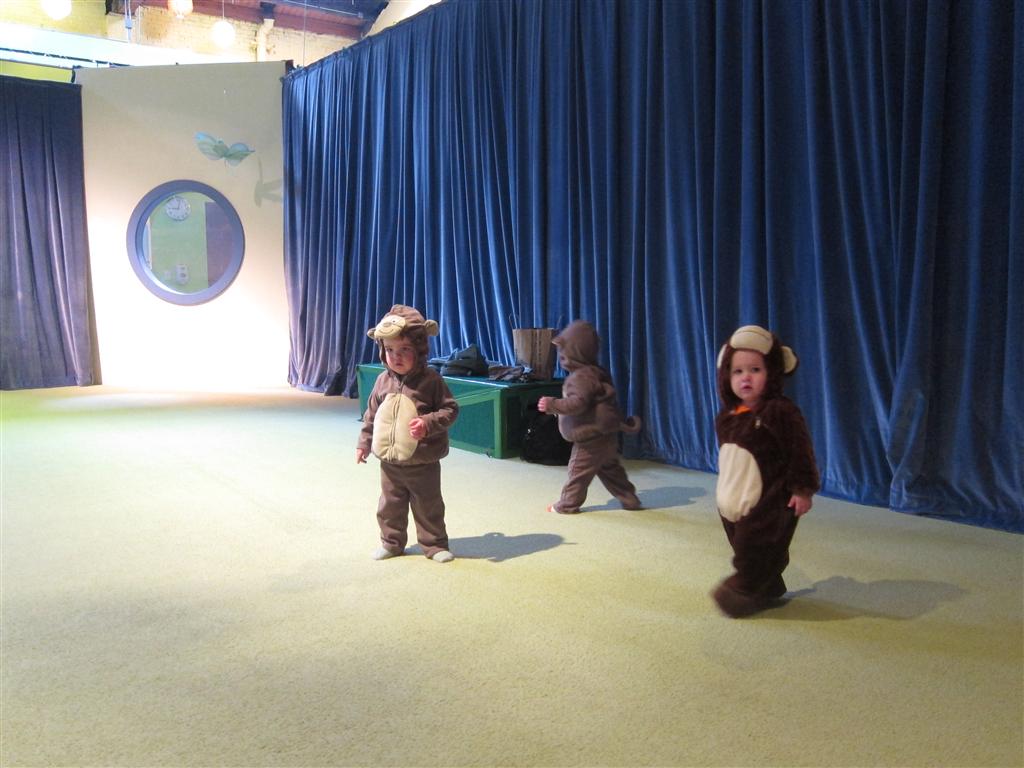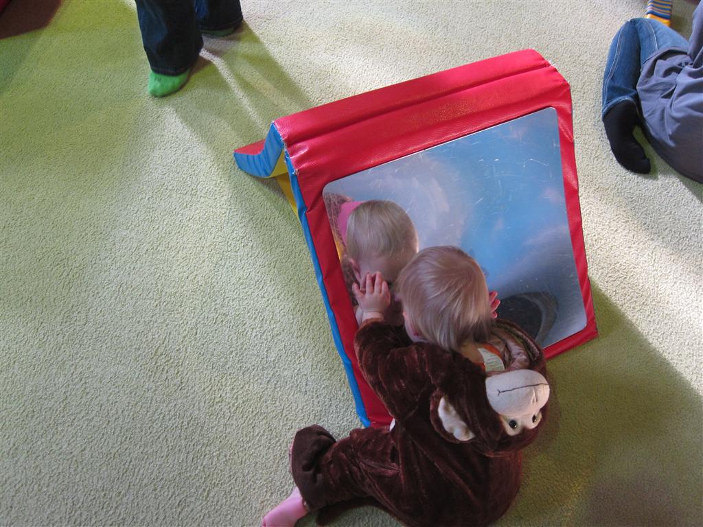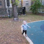 Eleanor maximized her costume time this week by participating in two Halloween parties, and Halloween is still coming up tomorrow! She dressed up as a monkey, a costume that she choose herself. While walking down the aisle at target, Eleanor got very excited pointing and making monkey sounds when she saw the costume on the shelf. A couple of her friends from music class also dressed up as monkeys, making for some fun pictures. Eleanor completed the monkey costume at the party on Sunday by picking up two cymbals. If only she had a box to hop out of :) In a notable first this week, Eleanor can now stack four blocks on top of each other. Her previous best was two, and mostly by accident. Now she is interested in trying to build towers as well as knock them down. While playing with our neighbor Zack, Eleanor watched him “march” and has picked that up. I even caught her “high stepping”