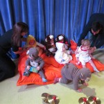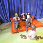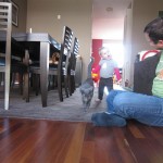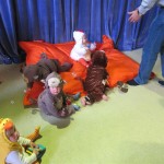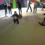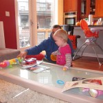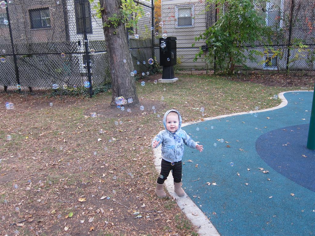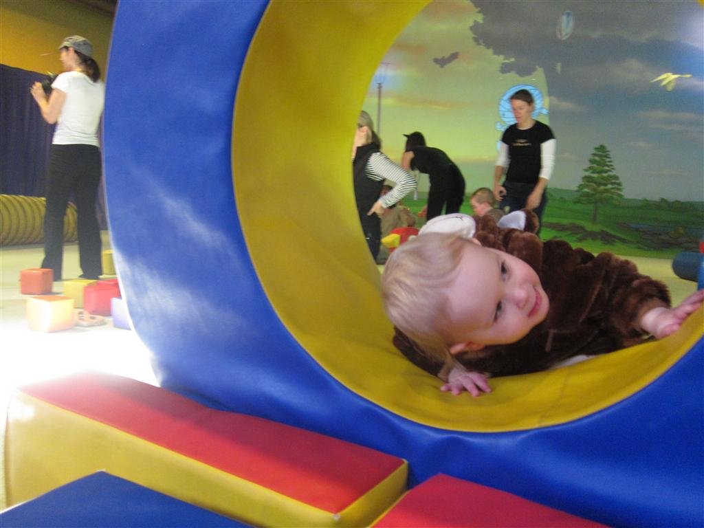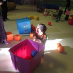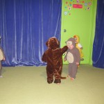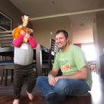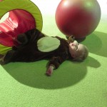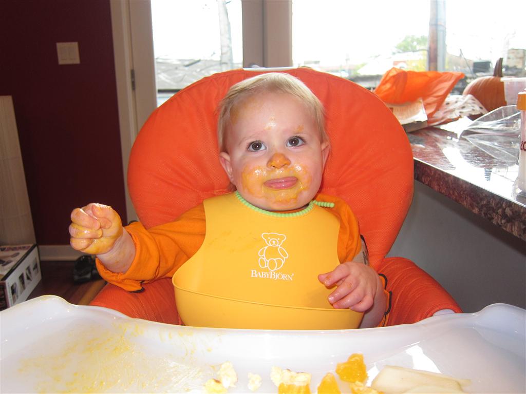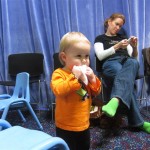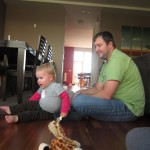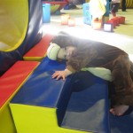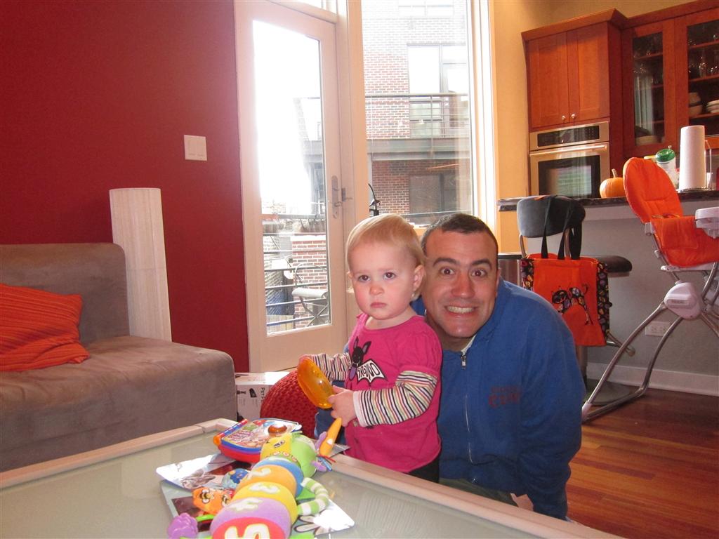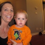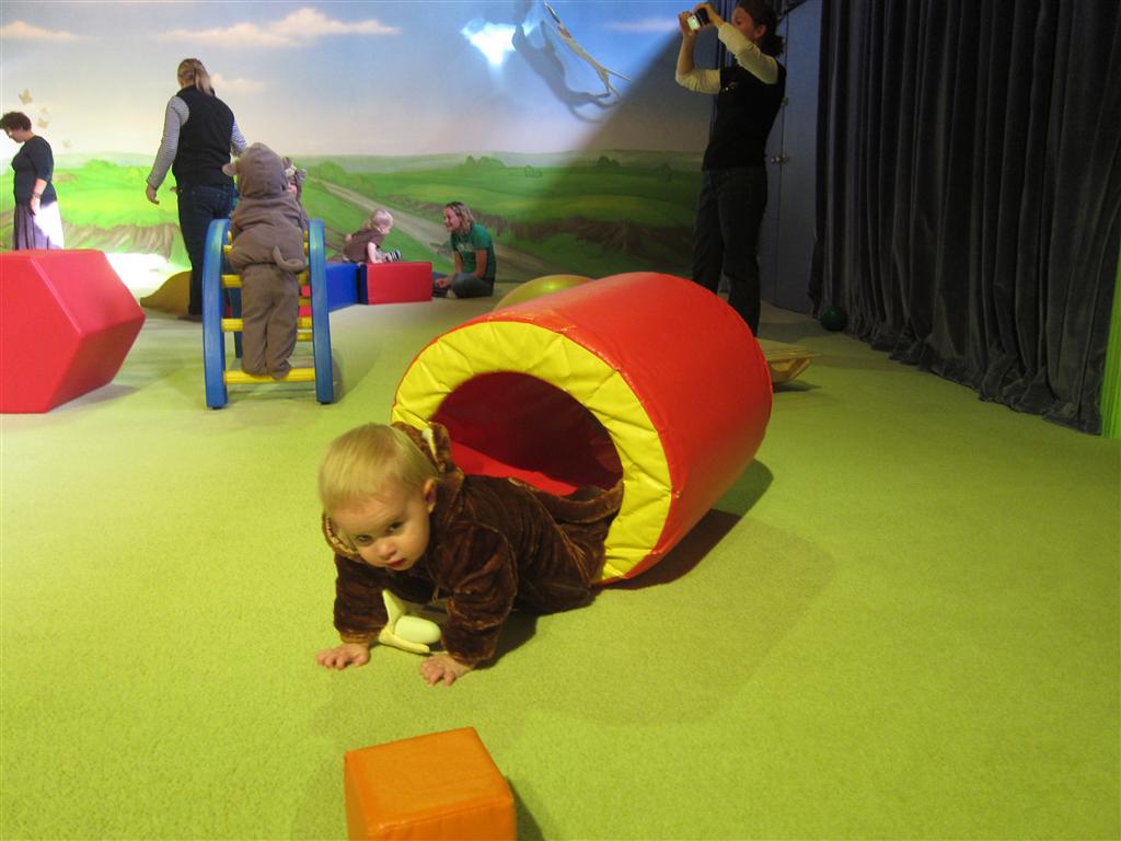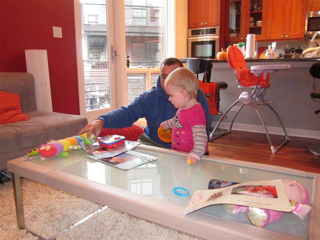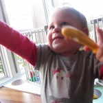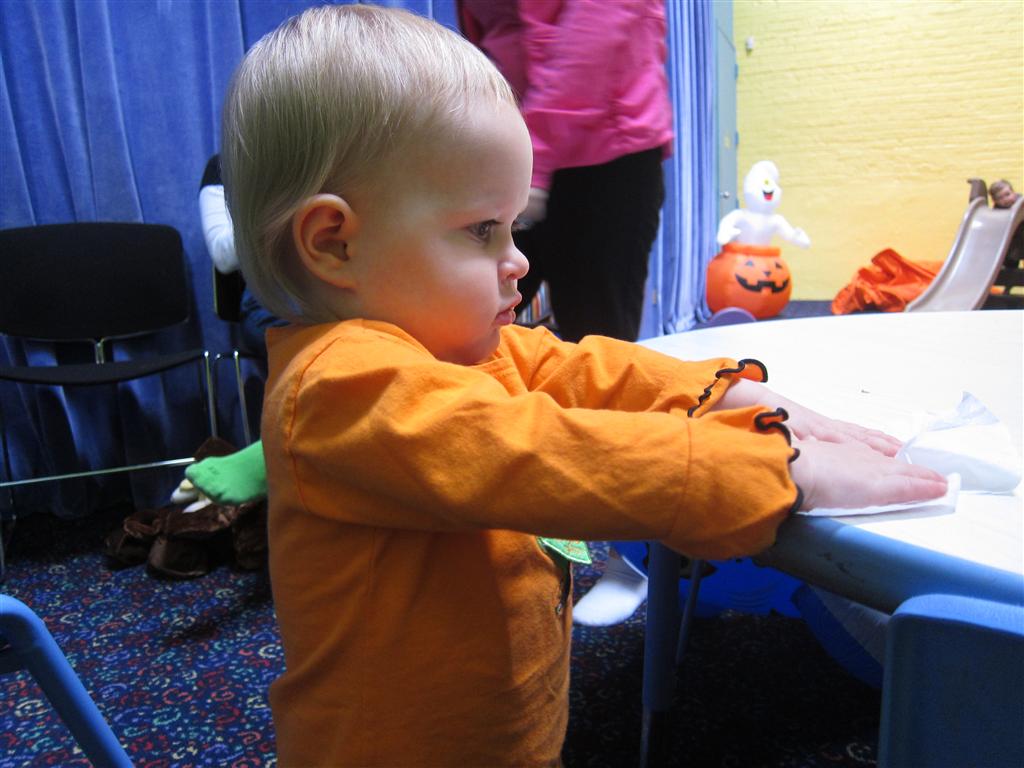 Eleanor maximized her costume time this week by participating in two Halloween parties, and Halloween is still coming up tomorrow! She dressed up as a monkey, a costume that she choose herself. While walking down the aisle at target, Eleanor got very excited pointing and making monkey sounds when she saw the costume on the shelf. A couple of her friends from music class also dressed up as monkeys, making for some fun pictures. Eleanor completed the monkey costume at the party on Sunday by picking up two cymbals. If only she had a box to hop out of :) In a notable first this week, Eleanor can now stack four blocks on top of each other. Her previous best was two, and mostly by accident. Now she is interested in trying to build towers as well as knock them down. While playing with our neighbor Zack, Eleanor watched him “march” and has picked that up. I even caught her “high stepping”