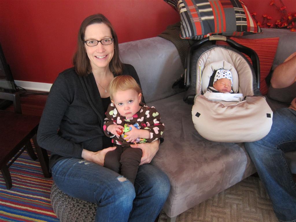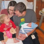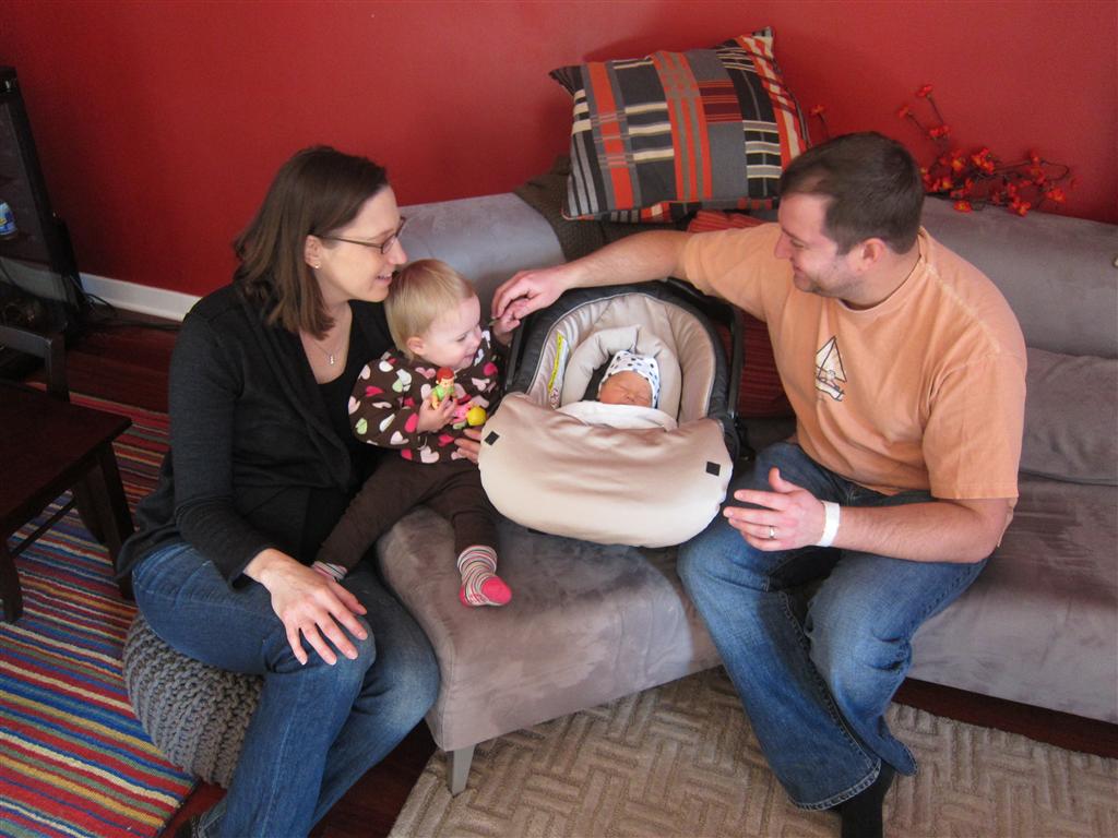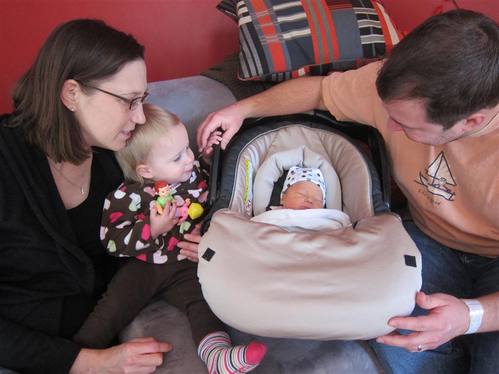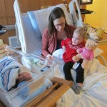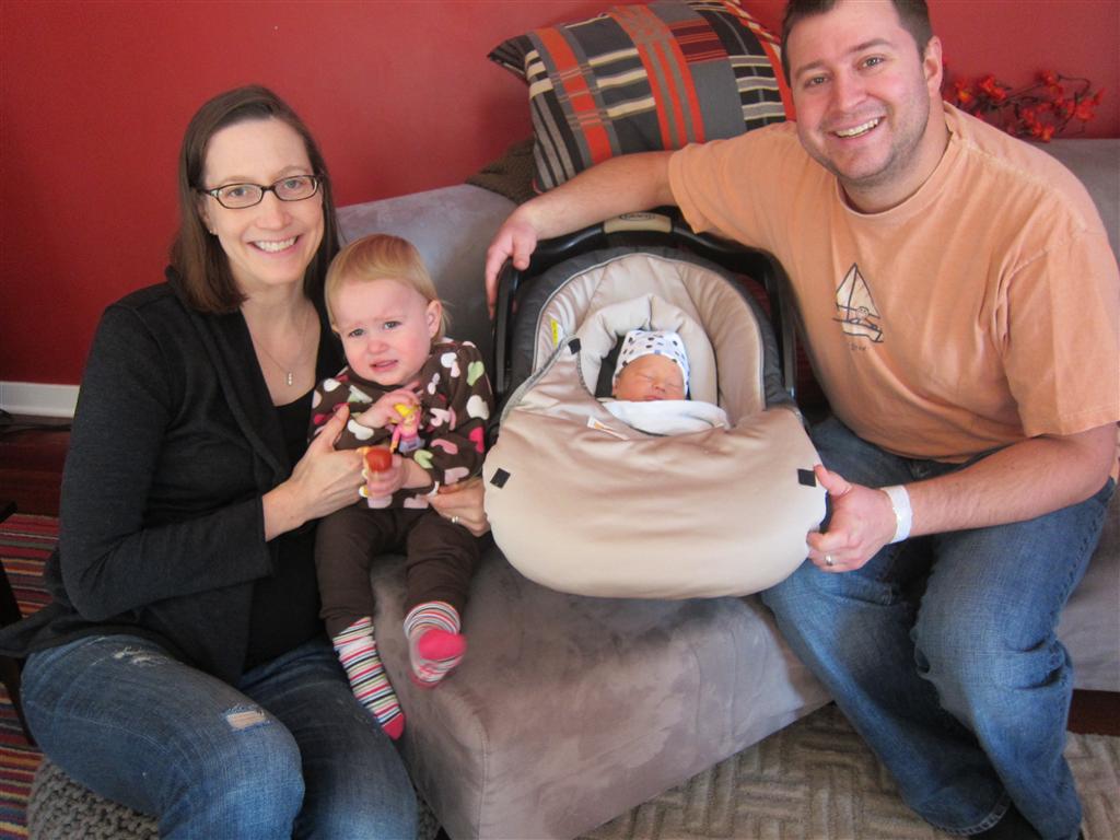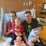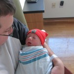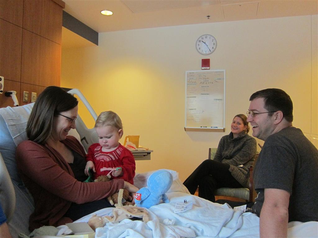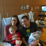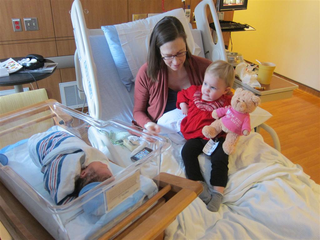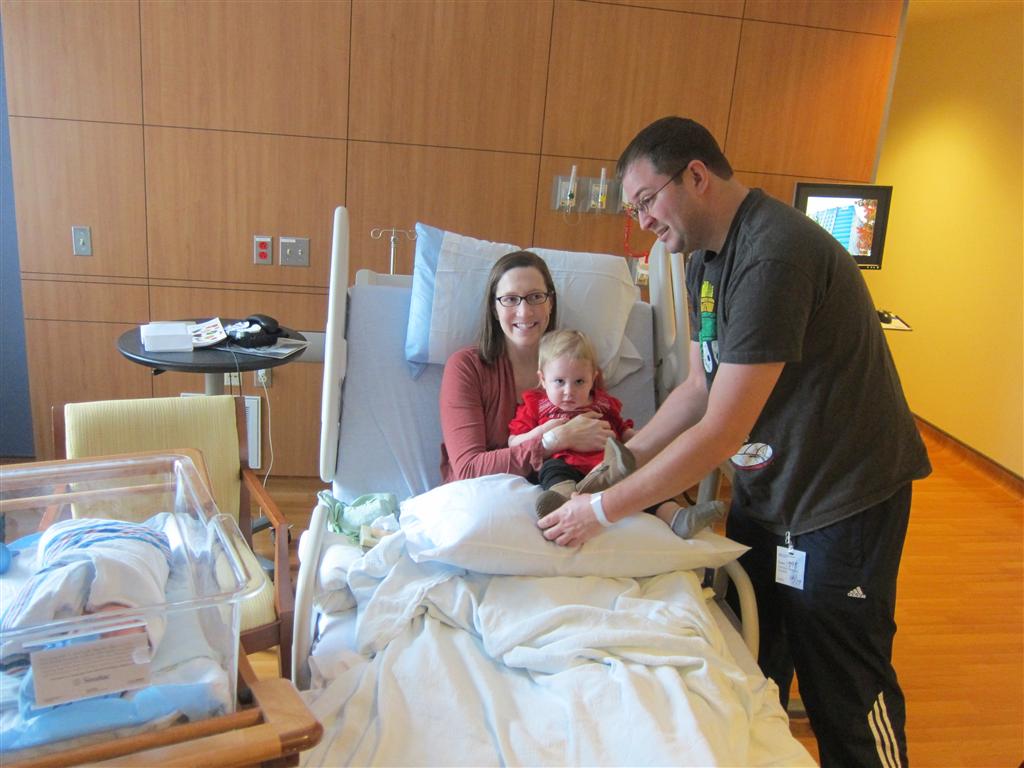What a week! Amy, Eleanor and I were all surprised with the early arrival of Henry – I was sure that he wouldn’t be here until after Christmas – but he had other plans. Henry was born on Friday 12/16 at 12:13 PM. He was 19.6 inches and 6 pounds 15 ounces. Eleanor started the week as an only child, and she and Mom had a super fun day on Wednesday visiting the Christmas “El” train and then going to Nordstrom’s for a picture on Santa’s lap (well, technically Amy was on Santa’s lap, and Eleanor on hers). They finished the day with a fun dinner out at the Burger Bar. Then on Thursday night, Mimi came over to stay with Eleanor as Mom and Dad headed to the hospital. Aunt LaLa and Papa joined Mimi and took care of Eleanor all weekend. It was a long night on Thursday with little sleep and lots of beeping machines, a bit of a waiting game. Things started to get going around 7:00 AM on Friday, and by just after noon little Henry had joined the family. He even got a red Santa hat from the hospital in honor of his December arrival. It took Amy and I a little while to finalize on the name (being 2+ weeks early there were/are a number of things that were supposed to get finished before his arrival that didn’t), and I think everyone was getting a bit anxious to here more details. We didn’t send out anything other than “Baby arrived, he and mom doing well” until 4 something that afternoon. Uncharacteristically, Uncle B was the first to actually call requesting additional info. Once we finalized the name and got settled in our new room, all three took a quick nap. Friday night Uncle B, Aunt Tia, Breanne and Aunt LaLa all came to visit. Henry was quite good through the night, giving us one 4+ hour interval of sleep! On Saturday, Eleanor came with Mimi, Papa and LaLa for a visit. Her first reaction was to say “aise” (her word for Eyes) and point to Henry’s eyes. Past that, she wasn’t too interested. Once she settled into the room, she got a little more curious, and decided to play the “bump” game with Henry, where you say the word “Bump!” and then either tap your own head or tap the other person’s head. She of course opted for tapping Henry’s head, in the first of what I’m sure will be many incidents of sibling “love taps”. On Sunday, Henry came home with Mom and Dad and everyone was glad to be able to relax a bit. Not surprisingly, there are lots of pictures this week – enjoy!