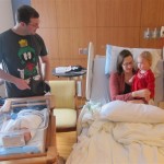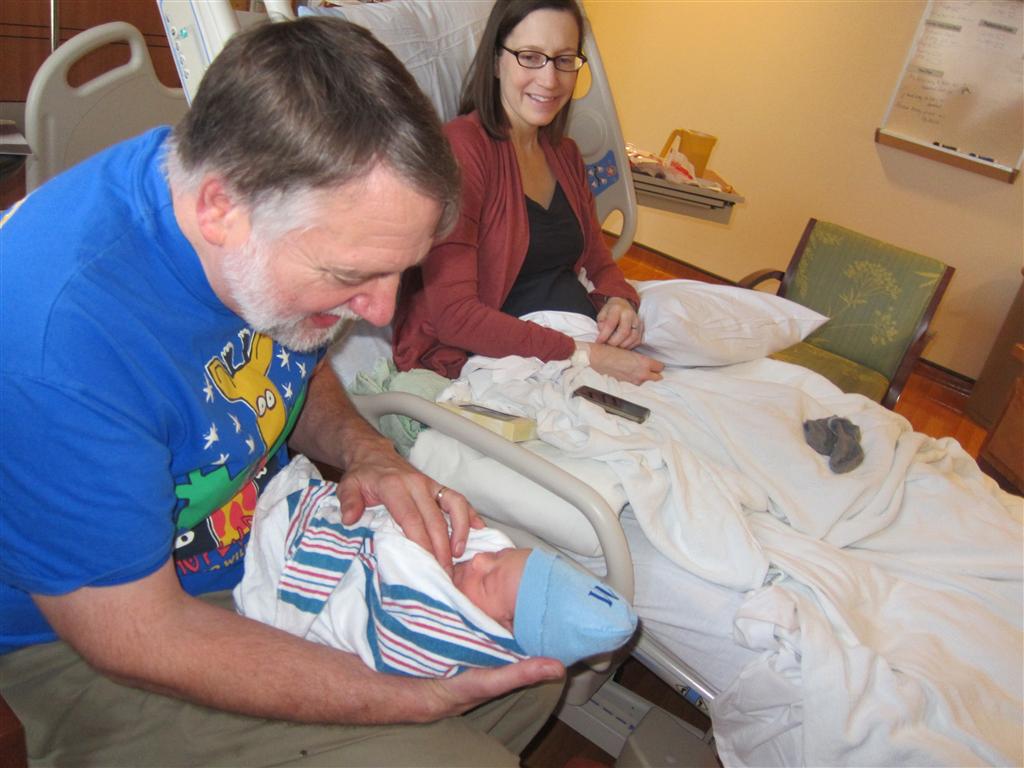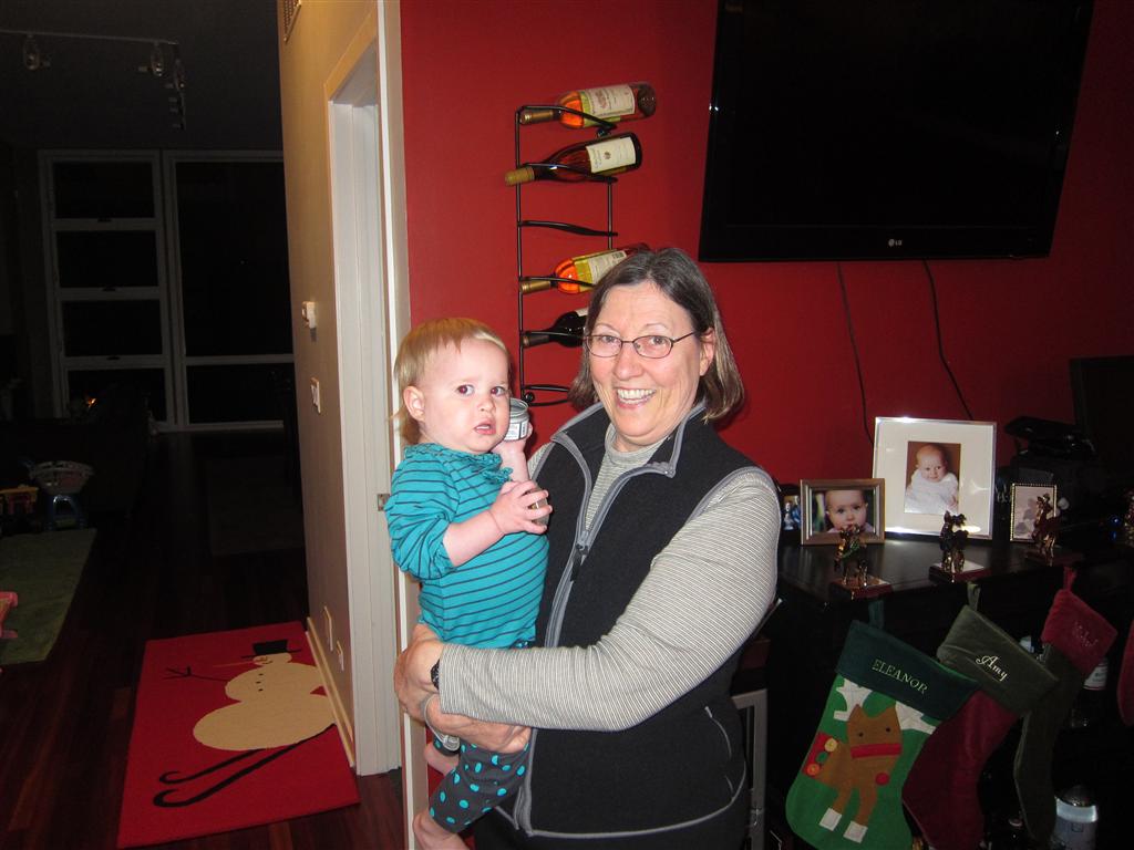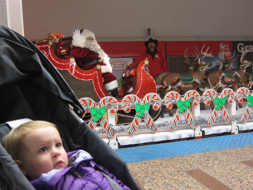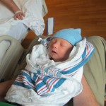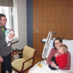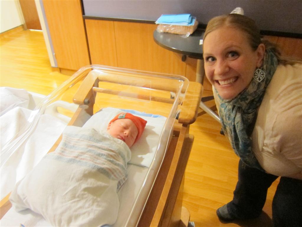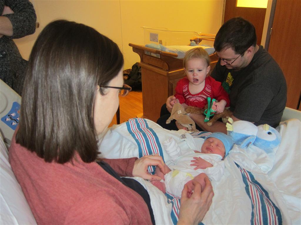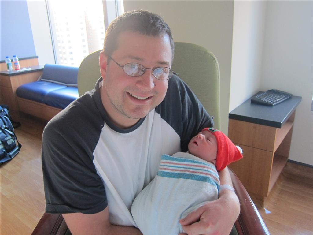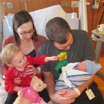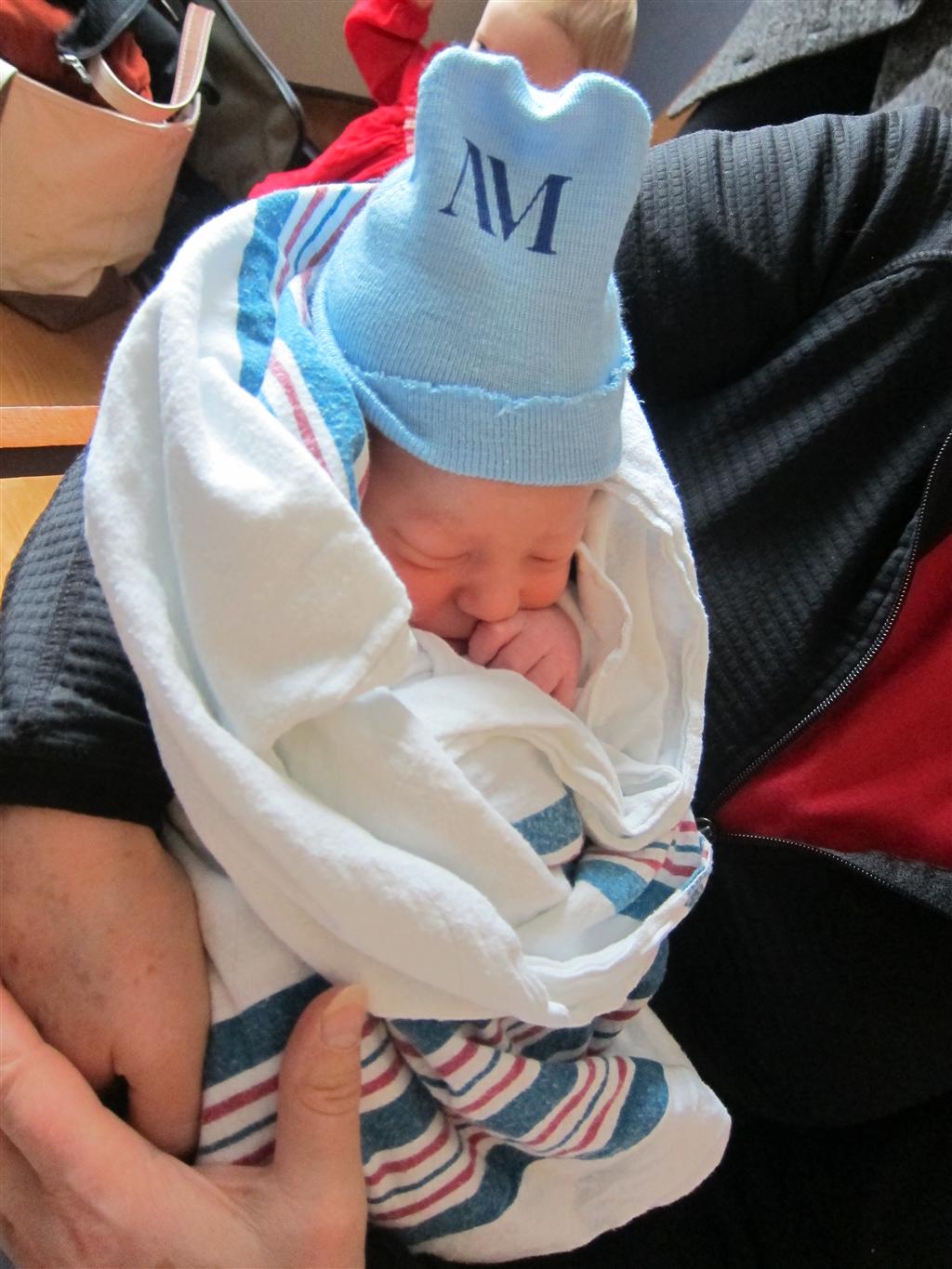 What a week! Amy, Eleanor and I were all surprised with the early arrival of Henry – I was sure that he wouldn’t be here until after Christmas – but he had other plans. Henry was born on Friday 12/16 at 12:13 PM. He was 19.6 inches and 6 pounds 15 ounces. Eleanor started the week as an only child, and she and Mom had a super fun day on Wednesday visiting the Christmas “El” train and then going to Nordstrom’s for a picture on Santa’s lap (well, technically Amy was on Santa’s lap, and Eleanor on hers). They finished the day with a fun dinner out at the Burger Bar. Then on Thursday night, Mimi came over to stay with Eleanor as Mom and Dad headed to the hospital. Aunt LaLa and Papa joined Mimi and took care of Eleanor all weekend. It was a long night on Thursday with little sleep and lots of beeping machines, a bit of a waiting game. Things started to get going around 7:00 AM on Friday, and by just after noon little Henry had joined the family. He even got a red Santa hat from the hospital in honor of his December arrival. It took Amy and I a little while to finalize on the name (being 2+ weeks early there were/are a number of things that were supposed to get finished before his arrival that didn’t), and I think everyone was getting a bit anxious to here more details. We didn’t send out anything other than “Baby arrived, he and mom doing well” until 4 something that afternoon. Uncharacteristically, Uncle B was the first to actually call requesting additional info. Once we finalized the name and got settled in our new room, all three took a quick nap. Friday night Uncle B, Aunt Tia, Breanne and Aunt LaLa all came to visit. Henry was quite good through the night, giving us one 4+ hour interval of sleep! On Saturday, Eleanor came with Mimi, Papa and LaLa for a visit. Her first reaction was to say “aise” (her word for Eyes) and point to Henry’s eyes. Past that, she wasn’t too interested. Once she settled into the room, she got a little more curious, and decided to play the “bump” game with Henry, where you say the word “Bump!” and then either tap your own head or tap the other person’s head. She of course opted for tapping Henry’s head, in the first of what I’m sure will be many incidents of sibling “love taps”. On Sunday, Henry came home with Mom and Dad and everyone was glad to be able to relax a bit. Not surprisingly, there are lots of pictures this week – enjoy!