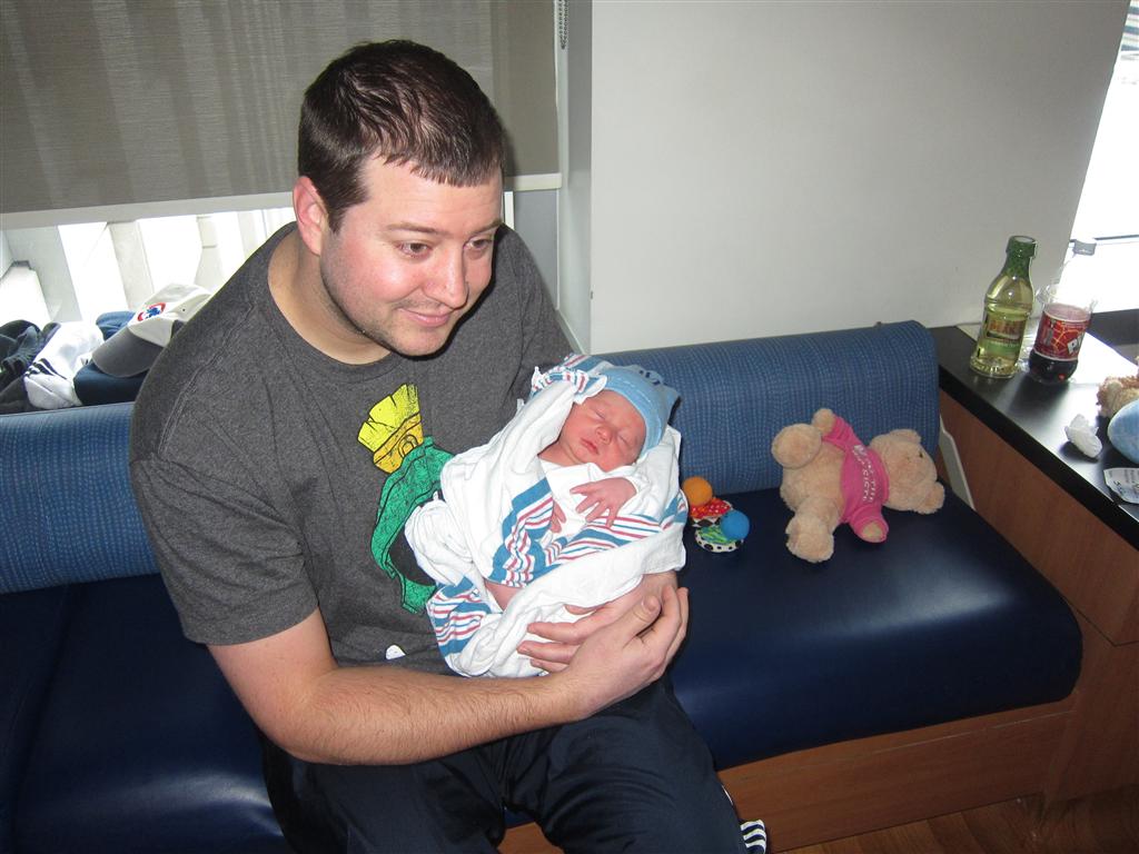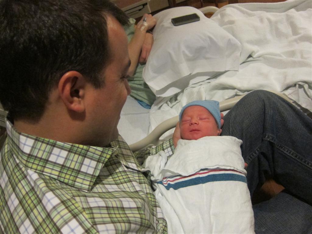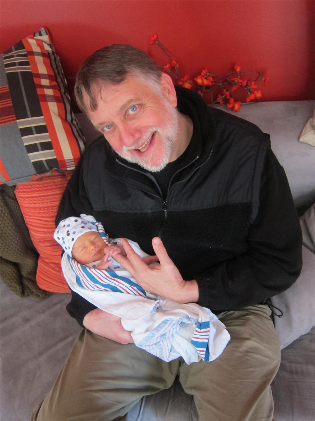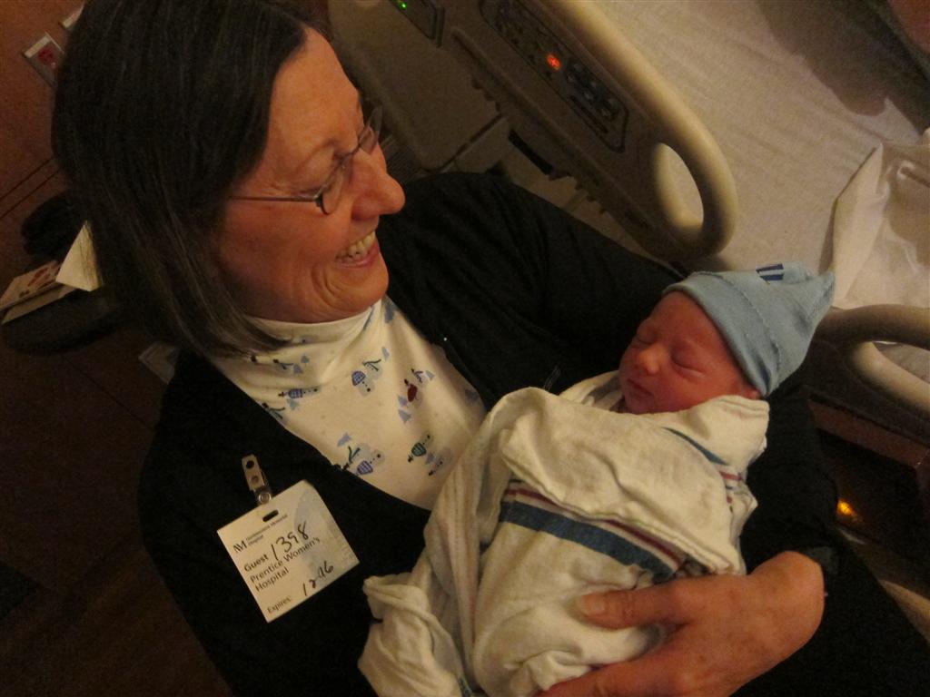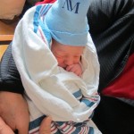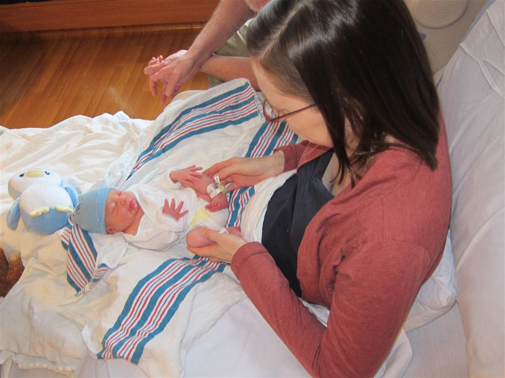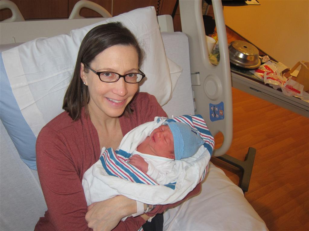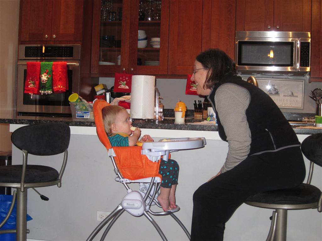 What a week! Amy, Eleanor and I were all surprised with the early arrival of Henry – I was sure that he wouldn’t be here until after Christmas – but he had other plans. Henry was born on Friday 12/16 at 12:13 PM. He was 19.6 inches and 6 pounds 15 ounces. Eleanor started the week as an only child, and she and Mom had a super fun day on Wednesday visiting the Christmas “El” train and then going to Nordstrom’s for a picture on Santa’s lap (well, technically Amy was on Santa’s lap, and Eleanor on hers). They finished the day with a fun dinner out at the Burger Bar. Then on Thursday night, Mimi came over to stay with Eleanor as Mom and Dad headed to the hospital. Aunt LaLa and Papa joined Mimi and took care of Eleanor all weekend. It was a long night on Thursday with little sleep and lots of beeping machines, a bit of a waiting game. Things started to get going around 7:00 AM on Friday, and by just after noon little Henry had joined the family. He even got a red Santa hat from the hospital in honor of his December arrival. It took Amy and I a little while to finalize on the name (being 2+ weeks early there were/are a number of things that were supposed to get finished before his arrival that didn’t), and I think everyone was getting a bit anxious to here more details. We didn’t send out anything other than “Baby arrived, he and mom doing well” until 4 something that afternoon. Uncharacteristically, Uncle B was the first to actually call requesting additional info. Once we finalized the name and got settled in our new room, all three took a quick nap. Friday night Uncle B, Aunt Tia, Breanne and Aunt LaLa all came to visit. Henry was quite good through the night, giving us one 4+ hour interval of sleep! On Saturday, Eleanor came with Mimi, Papa and LaLa for a visit. Her first reaction was to say “aise” (her word for Eyes) and point to Henry’s eyes. Past that, she wasn’t too interested. Once she settled into the room, she got a little more curious, and decided to play the “bump” game with Henry, where you say the word “Bump!” and then either tap your own head or tap the other person’s head. She of course opted for tapping Henry’s head, in the first of what I’m sure will be many incidents of sibling “love taps”. On Sunday, Henry came home with Mom and Dad and everyone was glad to be able to relax a bit. Not surprisingly, there are lots of pictures this week – enjoy!