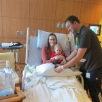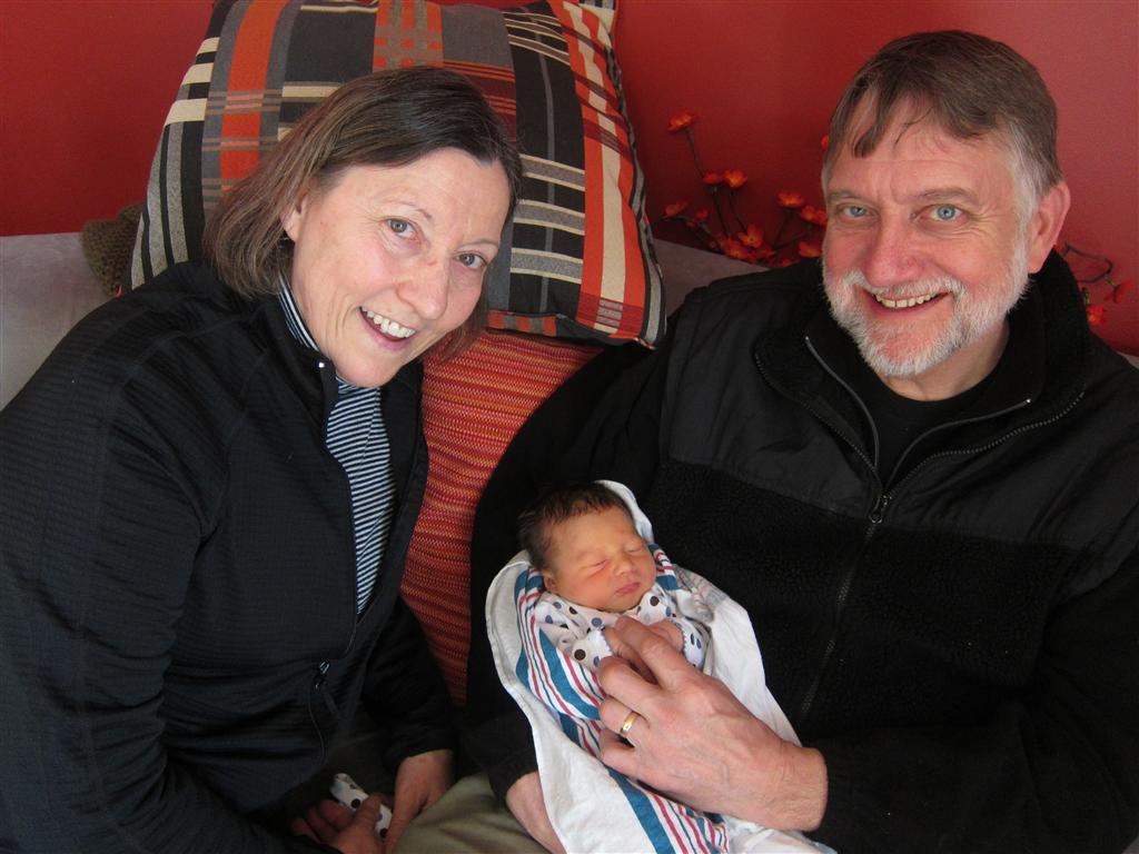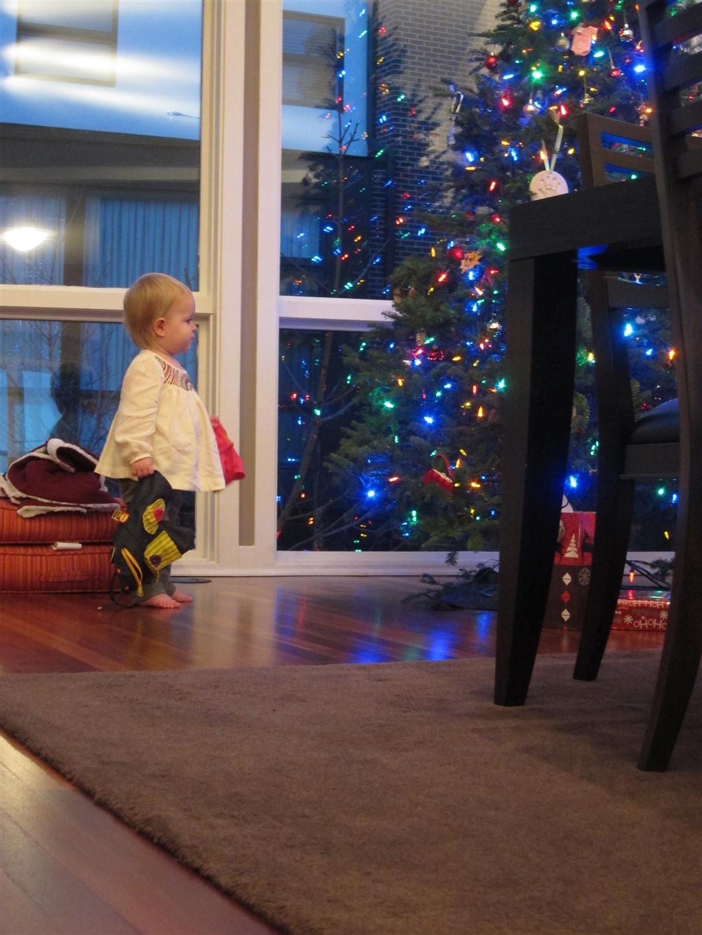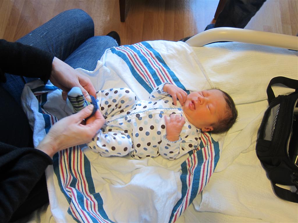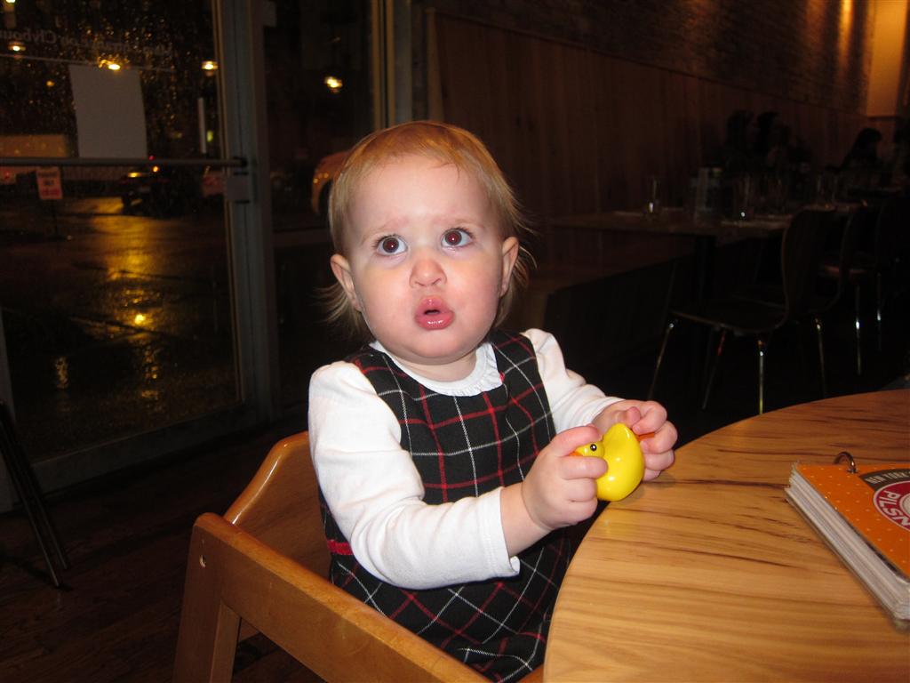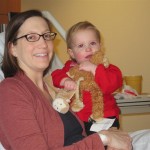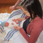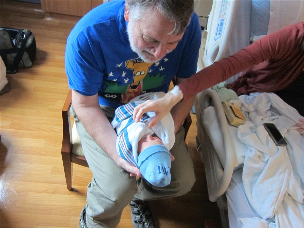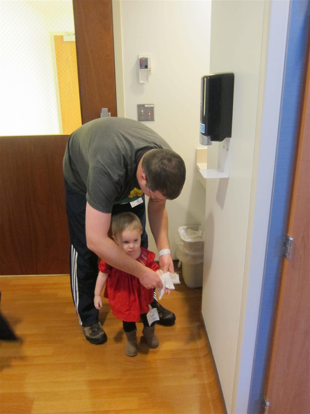 What a week! Amy, Eleanor and I were all surprised with the early arrival of Henry – I was sure that he wouldn’t be here until after Christmas – but he had other plans. Henry was born on Friday 12/16 at 12:13 PM. He was 19.6 inches and 6 pounds 15 ounces. Eleanor started the week as an only child, and she and Mom had a super fun day on Wednesday visiting the Christmas “El” train and then going to Nordstrom’s for a picture on Santa’s lap (well, technically Amy was on Santa’s lap, and Eleanor on hers). They finished the day with a fun dinner out at the Burger Bar. Then on Thursday night, Mimi came over to stay with Eleanor as Mom and Dad headed to the hospital. Aunt LaLa and Papa joined Mimi and took care of Eleanor all weekend. It was a long night on Thursday with little sleep and lots of beeping machines, a bit of a waiting game. Things started to get going around 7:00 AM on Friday, and by just after noon little Henry had joined the family. He even got a red Santa hat from the hospital in honor of his December arrival. It took Amy and I a little while to finalize on the name (being 2+ weeks early there were/are a number of things that were supposed to get finished before his arrival that didn’t), and I think everyone was getting a bit anxious to here more details. We didn’t send out anything other than “Baby arrived, he and mom doing well” until 4 something that afternoon. Uncharacteristically, Uncle B was the first to actually call requesting additional info. Once we finalized the name and got settled in our new room, all three took a quick nap. Friday night Uncle B, Aunt Tia, Breanne and Aunt LaLa all came to visit. Henry was quite good through the night, giving us one 4+ hour interval of sleep! On Saturday, Eleanor came with Mimi, Papa and LaLa for a visit. Her first reaction was to say “aise” (her word for Eyes) and point to Henry’s eyes. Past that, she wasn’t too interested. Once she settled into the room, she got a little more curious, and decided to play the “bump” game with Henry, where you say the word “Bump!” and then either tap your own head or tap the other person’s head. She of course opted for tapping Henry’s head, in the first of what I’m sure will be many incidents of sibling “love taps”. On Sunday, Henry came home with Mom and Dad and everyone was glad to be able to relax a bit. Not surprisingly, there are lots of pictures this week – enjoy!