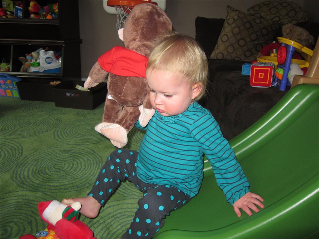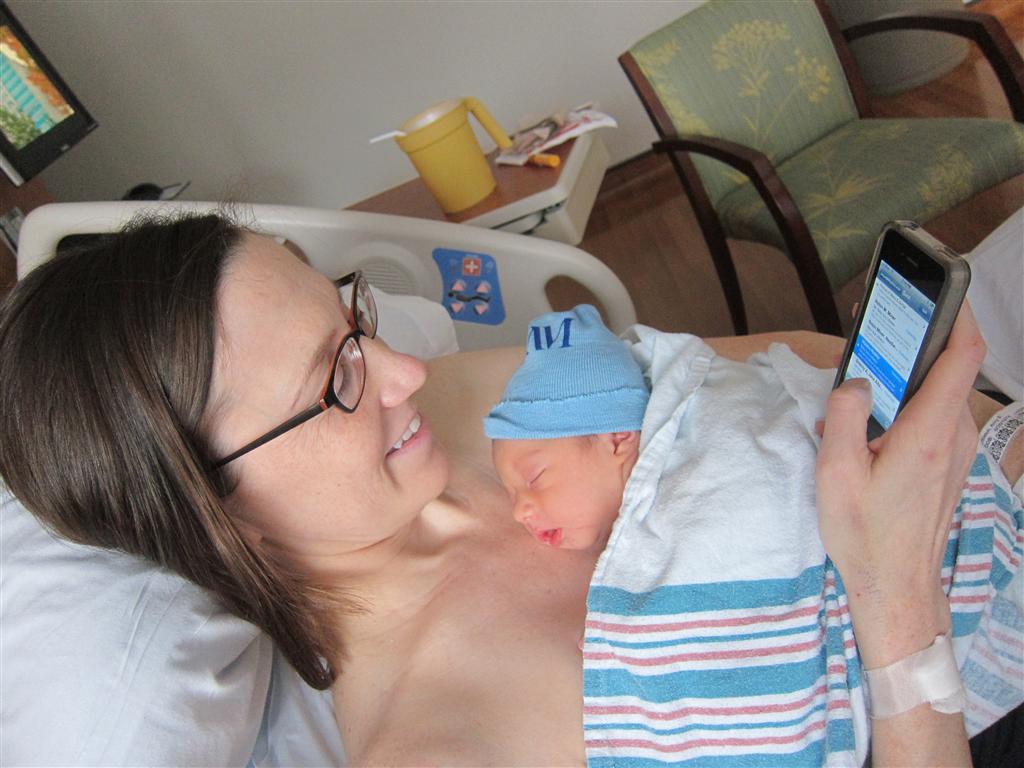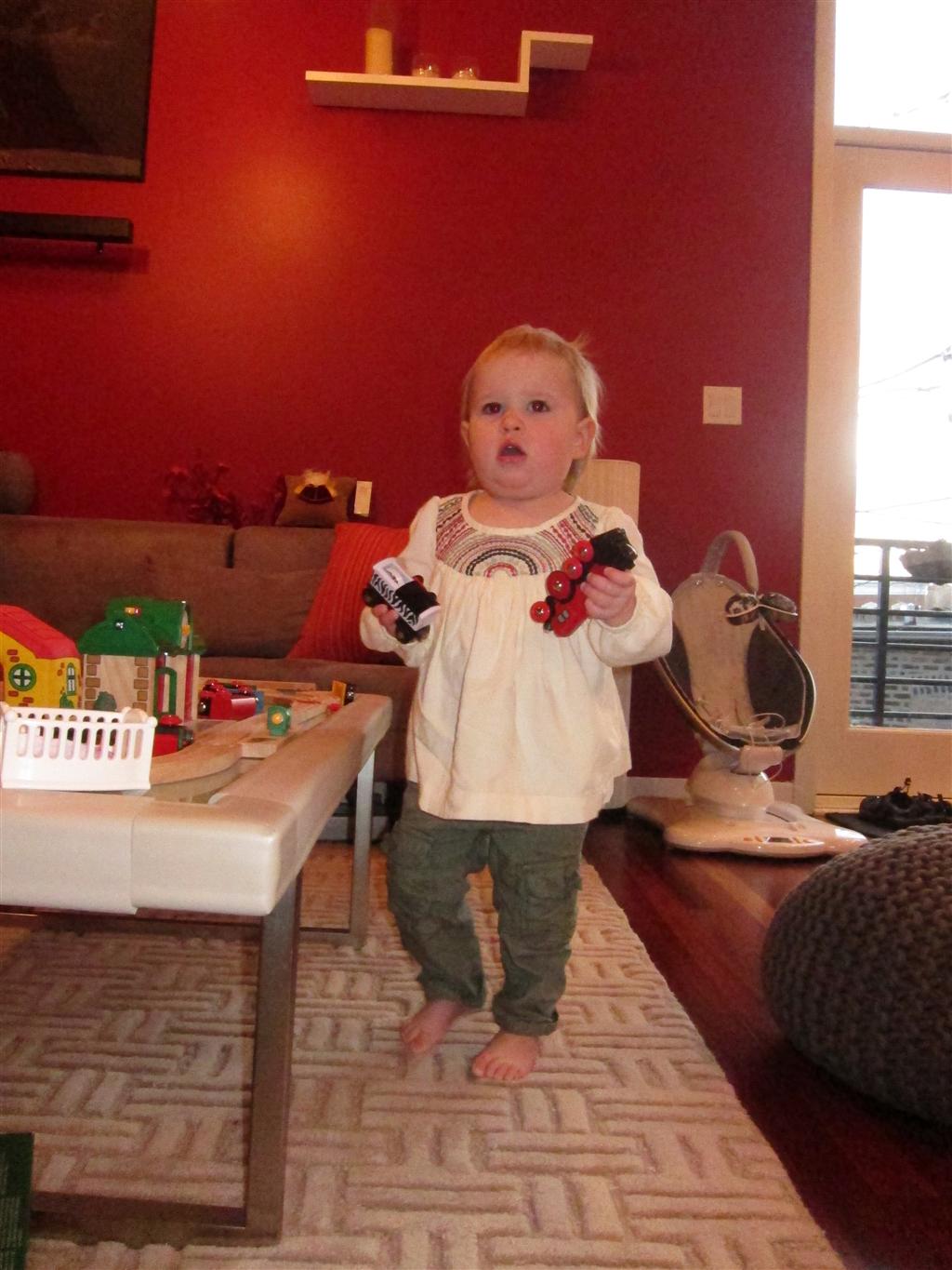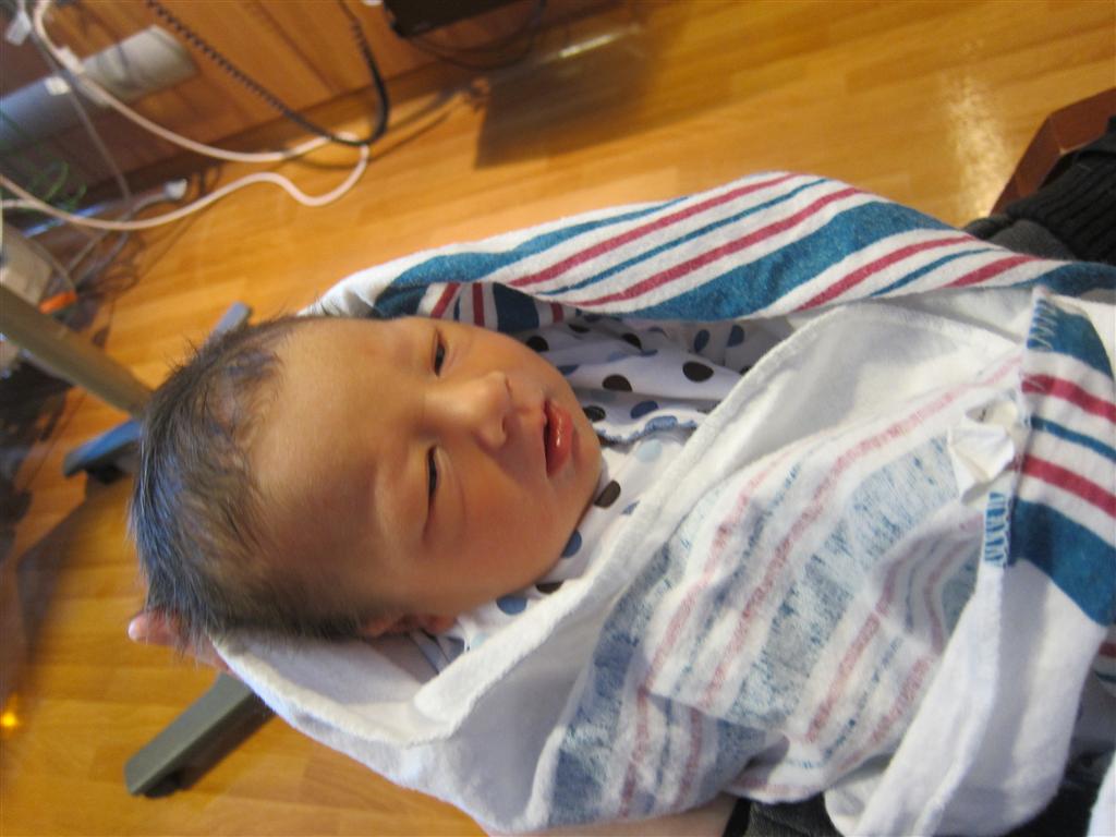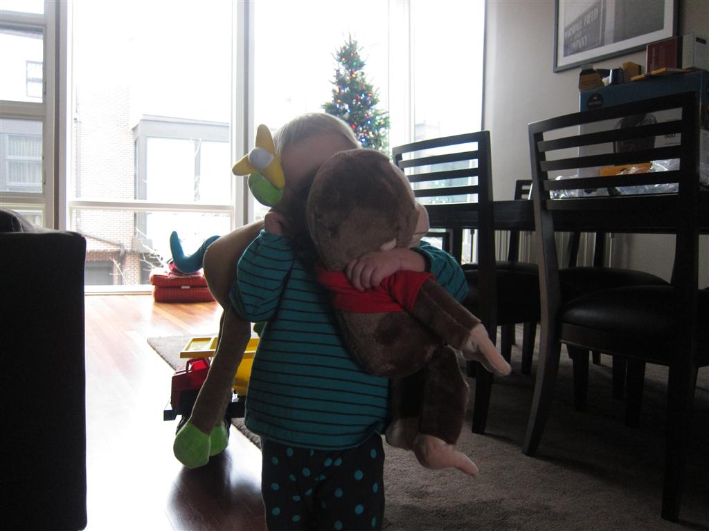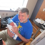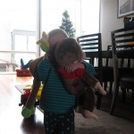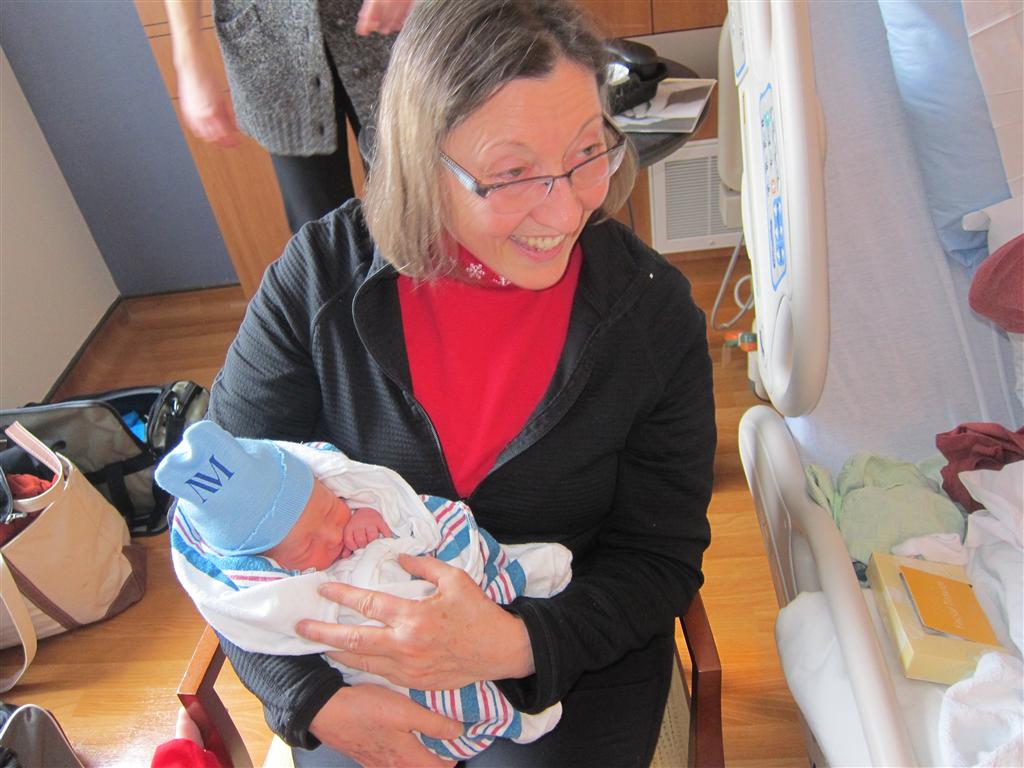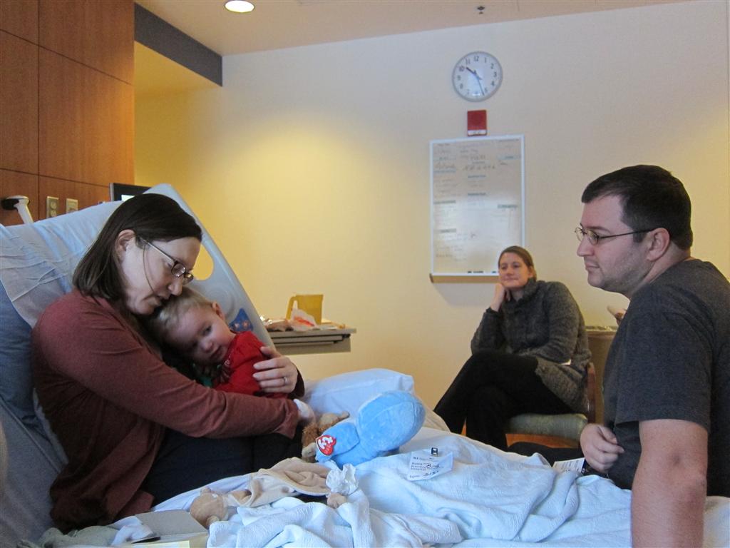 What a week! Amy, Eleanor and I were all surprised with the early arrival of Henry – I was sure that he wouldn’t be here until after Christmas – but he had other plans. Henry was born on Friday 12/16 at 12:13 PM. He was 19.6 inches and 6 pounds 15 ounces. Eleanor started the week as an only child, and she and Mom had a super fun day on Wednesday visiting the Christmas “El” train and then going to Nordstrom’s for a picture on Santa’s lap (well, technically Amy was on Santa’s lap, and Eleanor on hers). They finished the day with a fun dinner out at the Burger Bar. Then on Thursday night, Mimi came over to stay with Eleanor as Mom and Dad headed to the hospital. Aunt LaLa and Papa joined Mimi and took care of Eleanor all weekend. It was a long night on Thursday with little sleep and lots of beeping machines, a bit of a waiting game. Things started to get going around 7:00 AM on Friday, and by just after noon little Henry had joined the family. He even got a red Santa hat from the hospital in honor of his December arrival. It took Amy and I a little while to finalize on the name (being 2+ weeks early there were/are a number of things that were supposed to get finished before his arrival that didn’t), and I think everyone was getting a bit anxious to here more details. We didn’t send out anything other than “Baby arrived, he and mom doing well” until 4 something that afternoon. Uncharacteristically, Uncle B was the first to actually call requesting additional info. Once we finalized the name and got settled in our new room, all three took a quick nap. Friday night Uncle B, Aunt Tia, Breanne and Aunt LaLa all came to visit. Henry was quite good through the night, giving us one 4+ hour interval of sleep! On Saturday, Eleanor came with Mimi, Papa and LaLa for a visit. Her first reaction was to say “aise” (her word for Eyes) and point to Henry’s eyes. Past that, she wasn’t too interested. Once she settled into the room, she got a little more curious, and decided to play the “bump” game with Henry, where you say the word “Bump!” and then either tap your own head or tap the other person’s head. She of course opted for tapping Henry’s head, in the first of what I’m sure will be many incidents of sibling “love taps”. On Sunday, Henry came home with Mom and Dad and everyone was glad to be able to relax a bit. Not surprisingly, there are lots of pictures this week – enjoy!