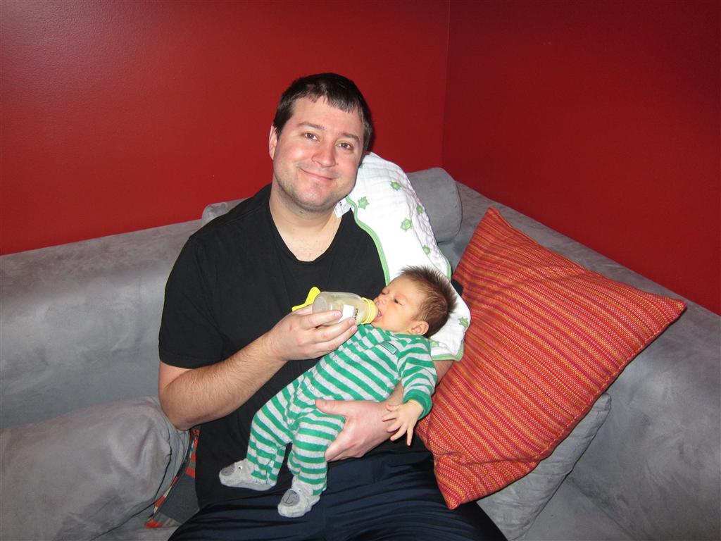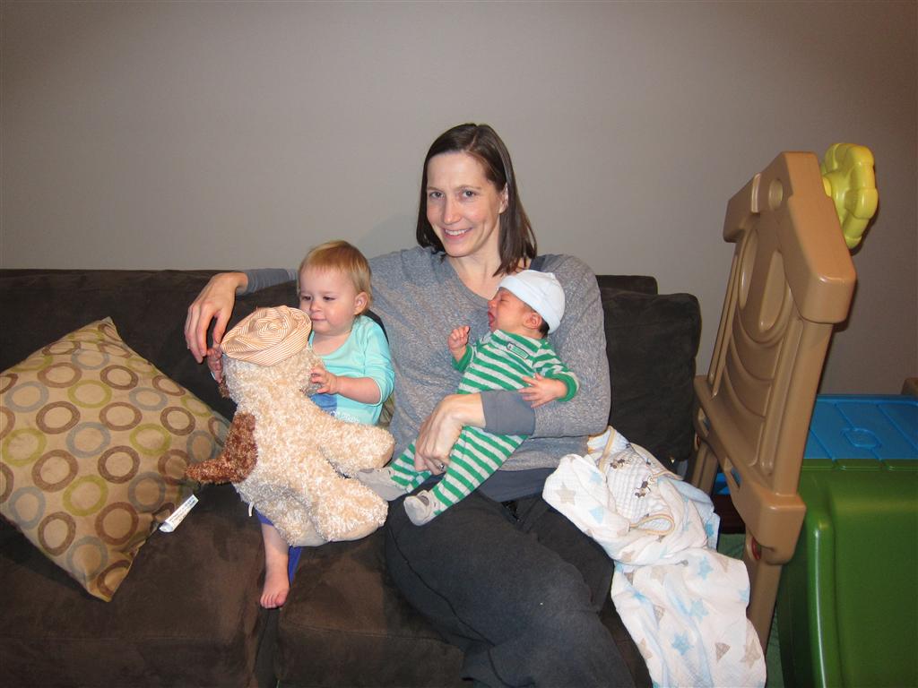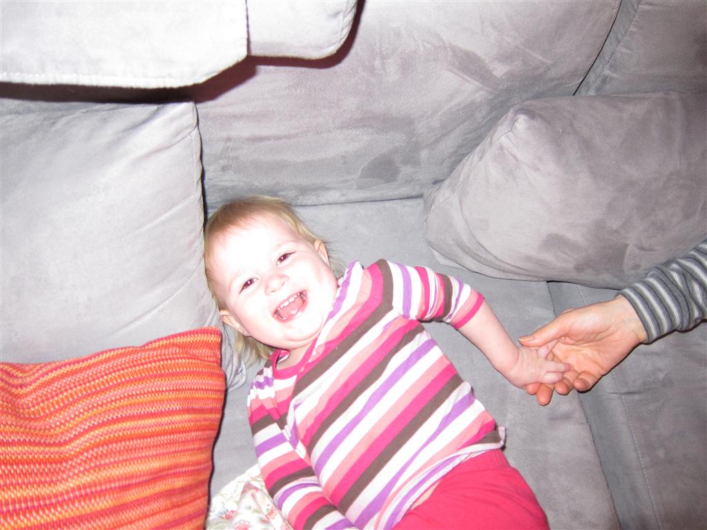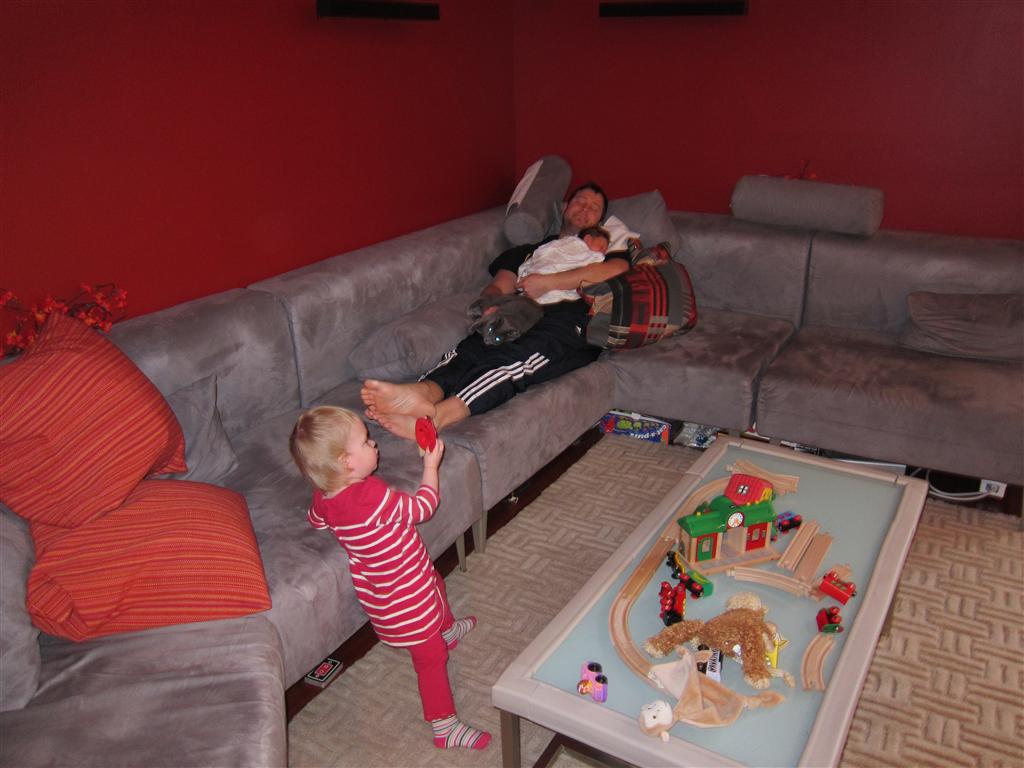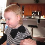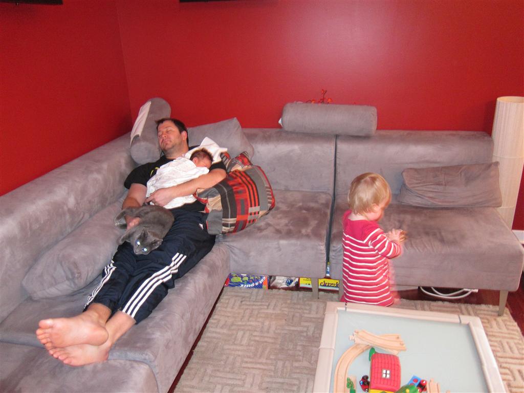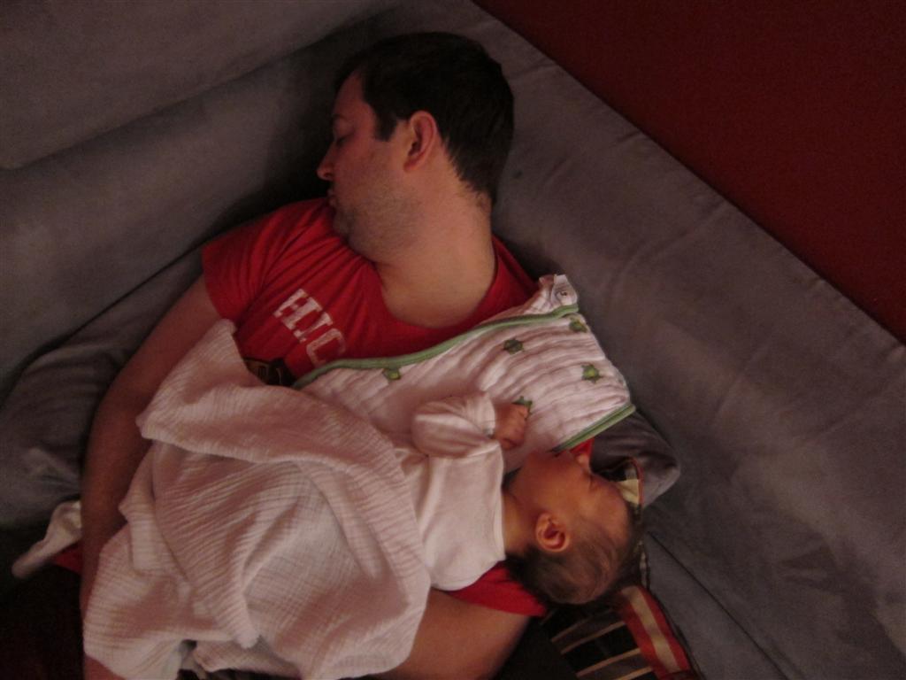 Eleanor is picking up new words everyday it seems, adding “melt”, “rough” for example. I was pretty sure I heard her say “bye”, but Mom disagreed. Henry has been working on his sleep, and it is getting a bit more regular. He has given us a few 6-7 hour stretches at night, but other nights he is up every few hours. This weekend, I believe that Dad and Henry logged a total of about 8 hours sleeping on the gray couch – it’s a tough job, but I believe Dads should be actively involved in sleep training :)