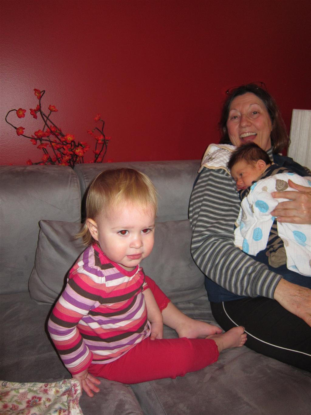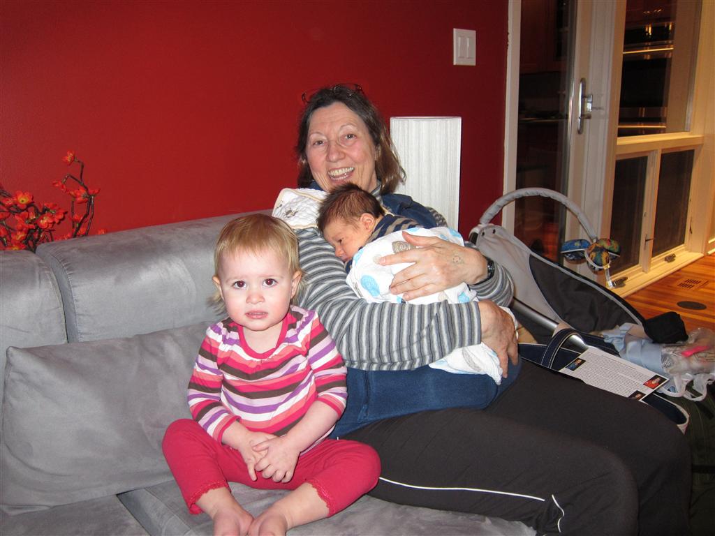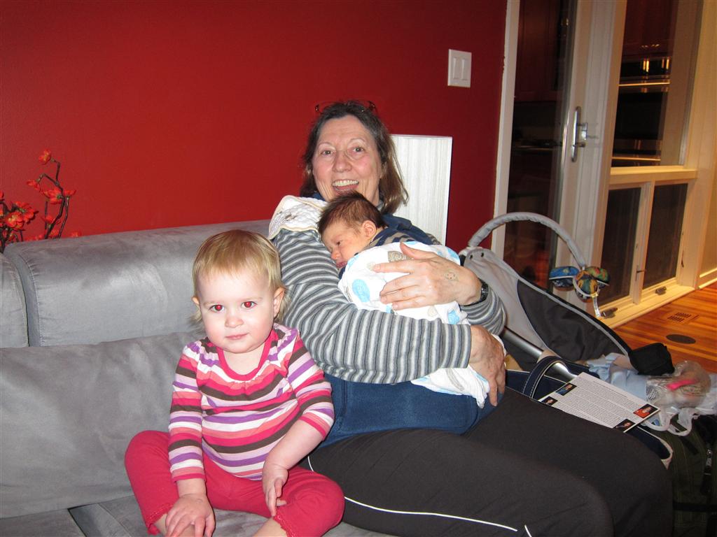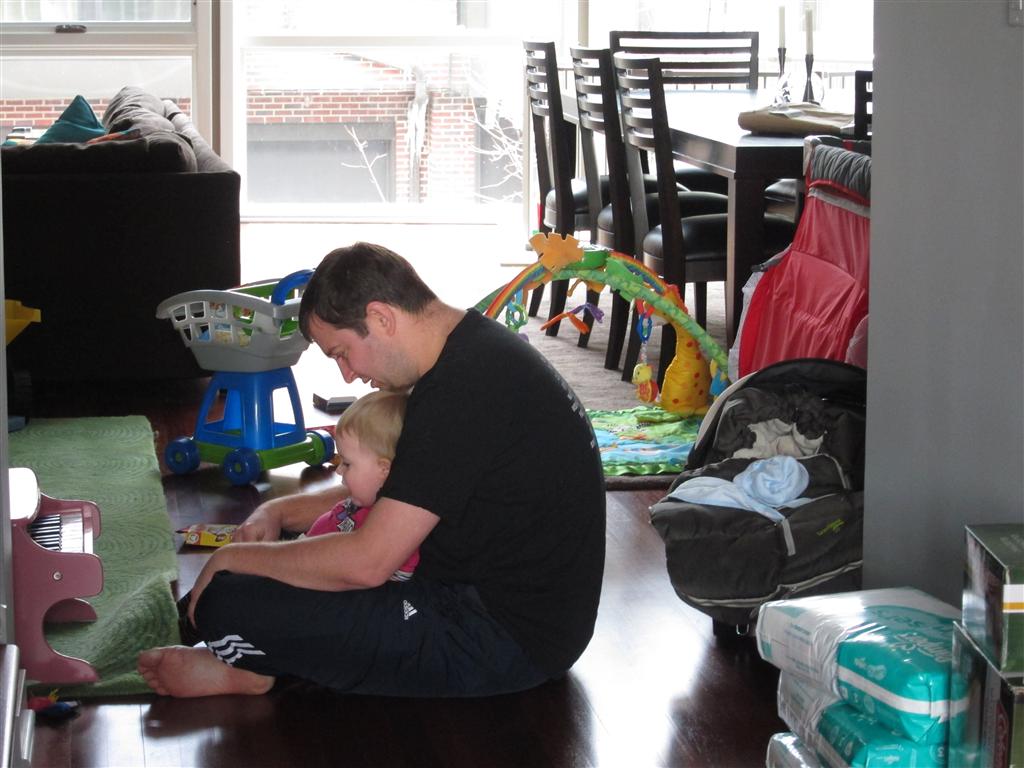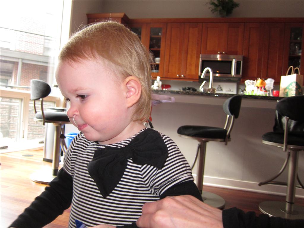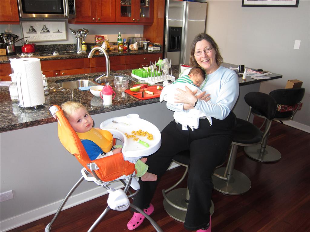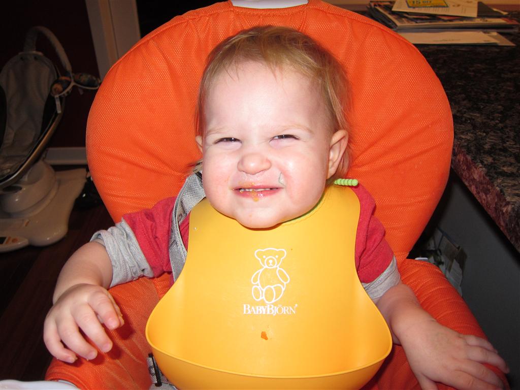 Eleanor is picking up new words everyday it seems, adding “melt”, “rough” for example. I was pretty sure I heard her say “bye”, but Mom disagreed. Henry has been working on his sleep, and it is getting a bit more regular. He has given us a few 6-7 hour stretches at night, but other nights he is up every few hours. This weekend, I believe that Dad and Henry logged a total of about 8 hours sleeping on the gray couch – it’s a tough job, but I believe Dads should be actively involved in sleep training :)