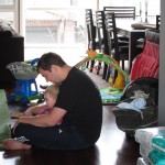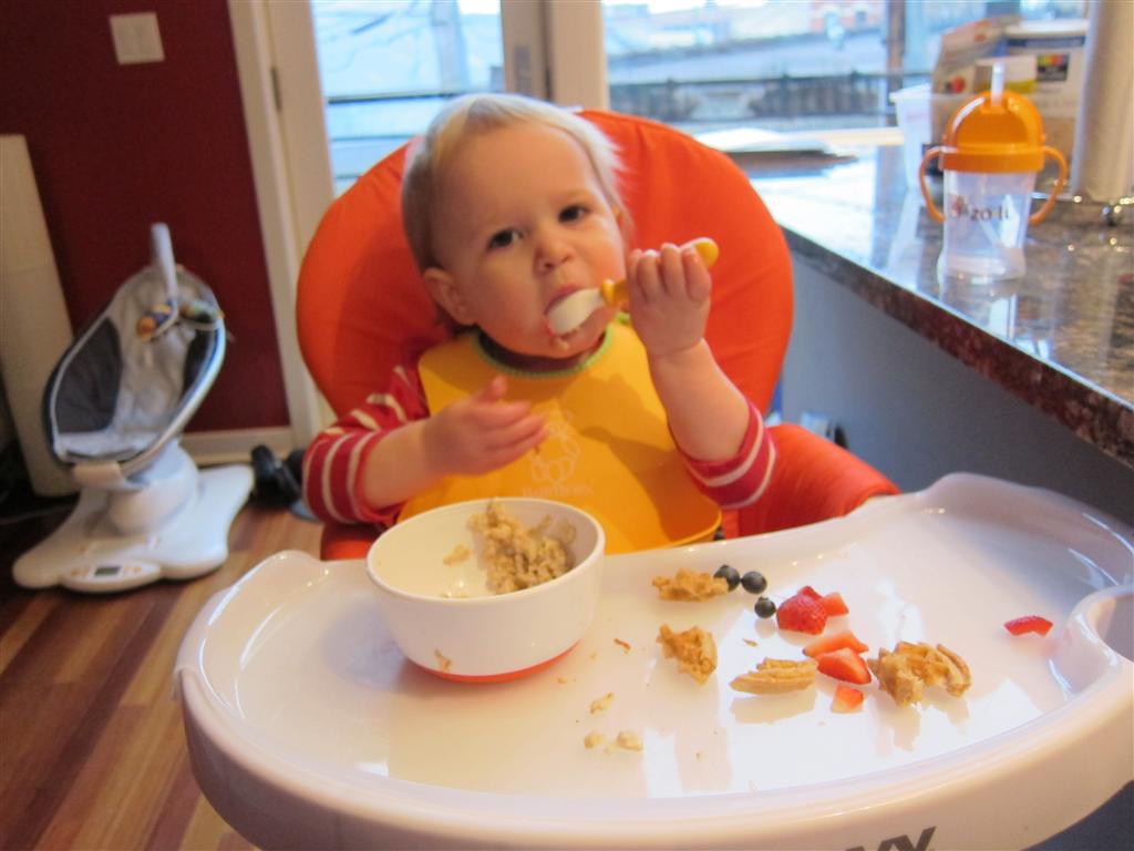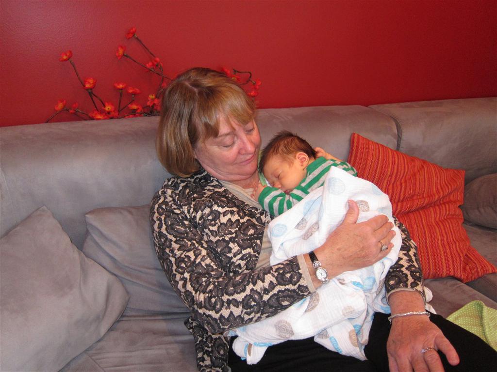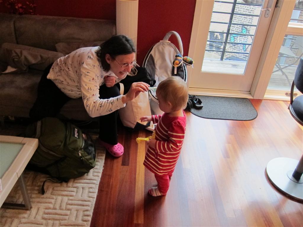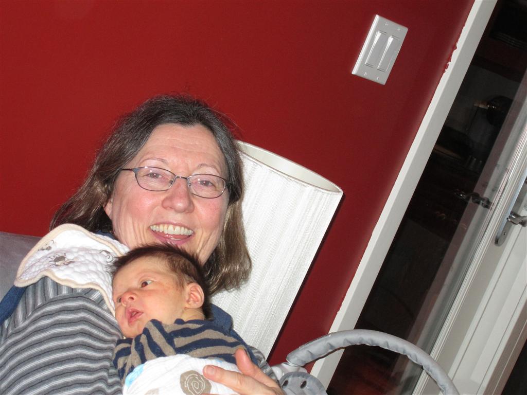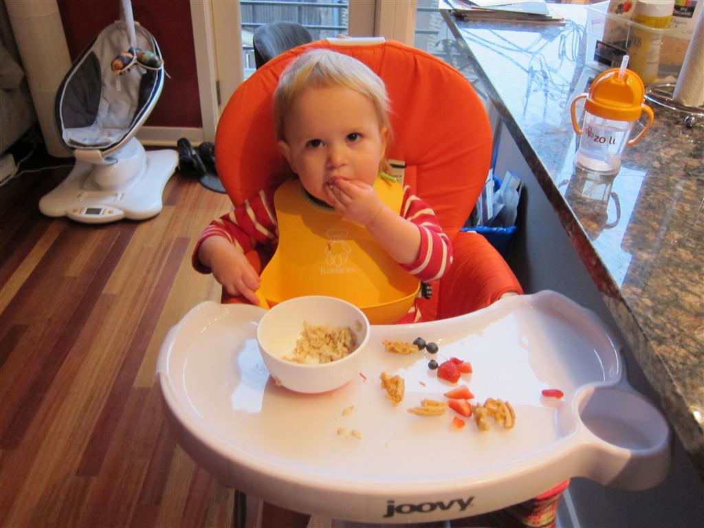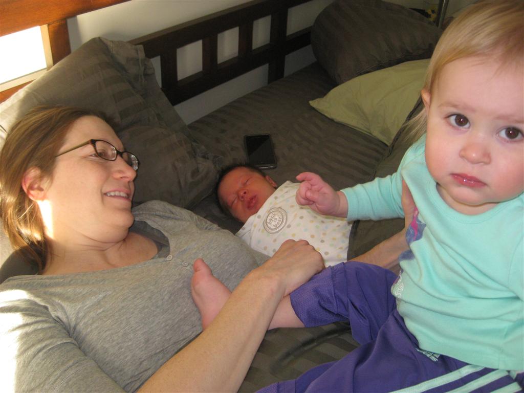 Eleanor is picking up new words everyday it seems, adding “melt”, “rough” for example. I was pretty sure I heard her say “bye”, but Mom disagreed. Henry has been working on his sleep, and it is getting a bit more regular. He has given us a few 6-7 hour stretches at night, but other nights he is up every few hours. This weekend, I believe that Dad and Henry logged a total of about 8 hours sleeping on the gray couch – it’s a tough job, but I believe Dads should be actively involved in sleep training :)
