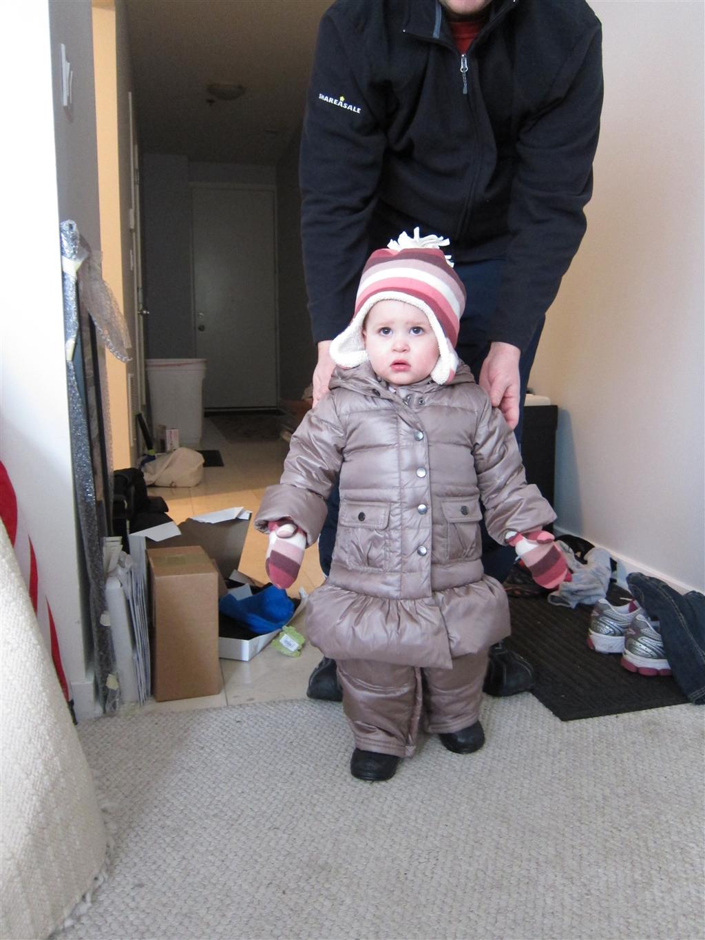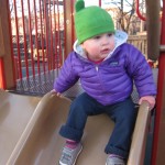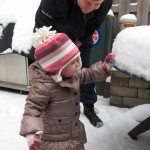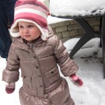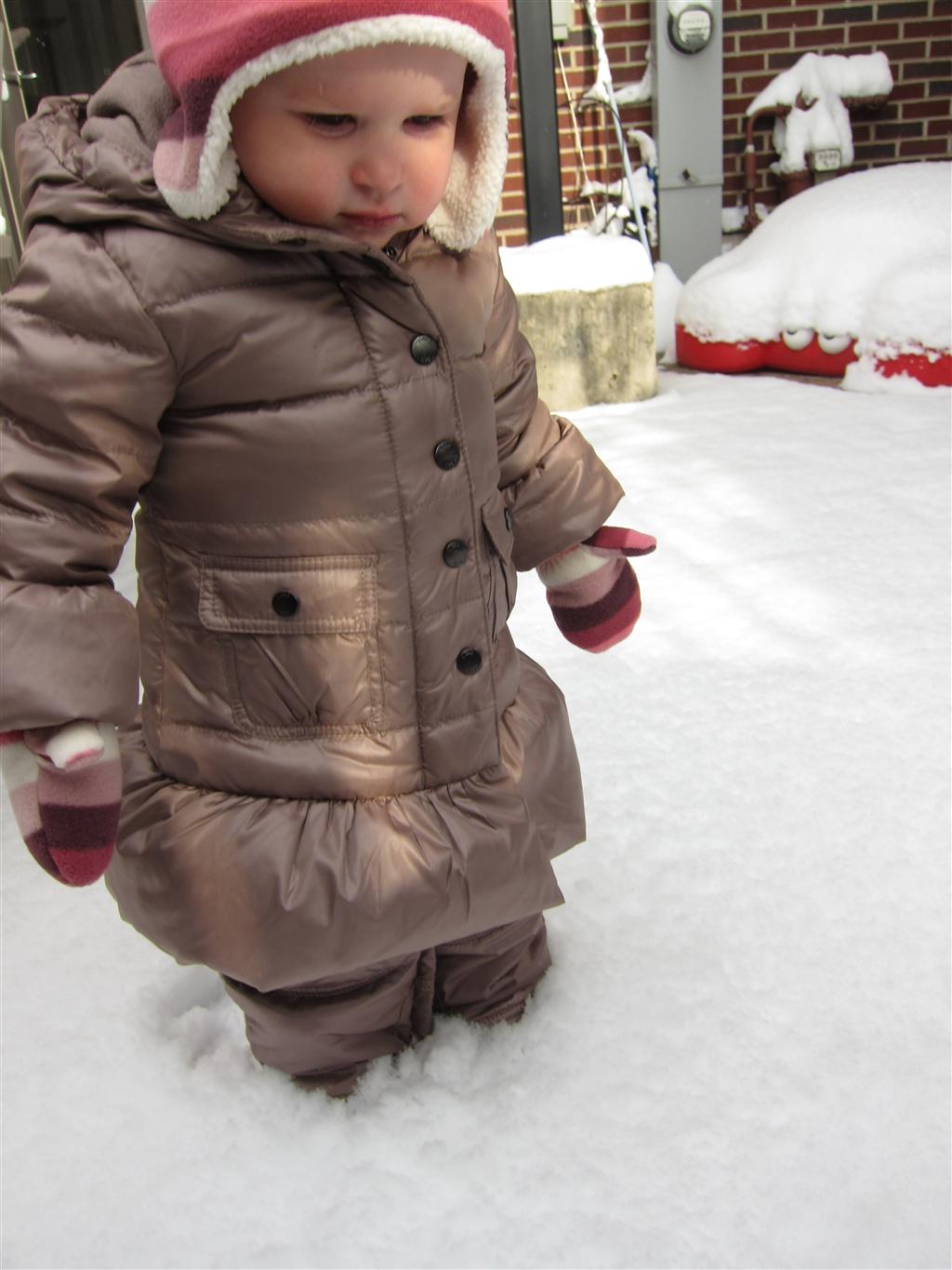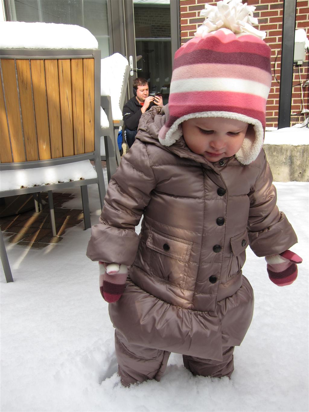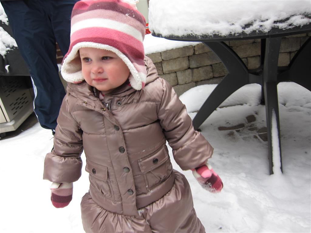 This week brought a few inches of snow on the ground, and we took the opportunity to bundle Eleanor up and take her out into the backyard (Sorry Henry – You’ll have to wait until next year…) It took about 15 minutes to get her all dressed up into her winter finest, and about 3 minutes outside before she’d had enough and wanted to come back inside. We did get a few cute pictures though. Henry had a few firsts this week, including taking a bottle and using a pacifier. The bottle was highly successful, the pacifier only lasted a few minutes. Both Eleanor and Henry went to their first birthday party for a “friend” – Zach our neighbor. He hosted the party at a play gym that Eleanor loved. Henry slept for a bit, and then cried for the rest.