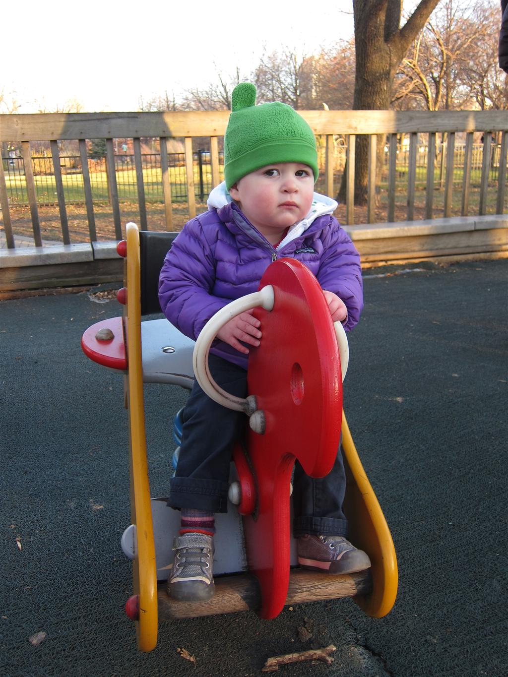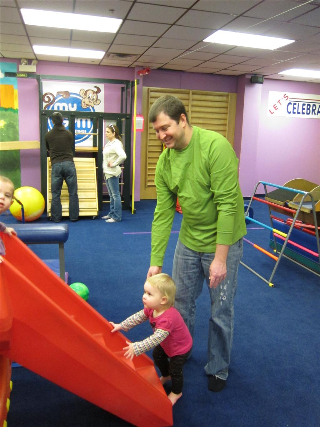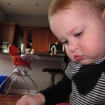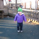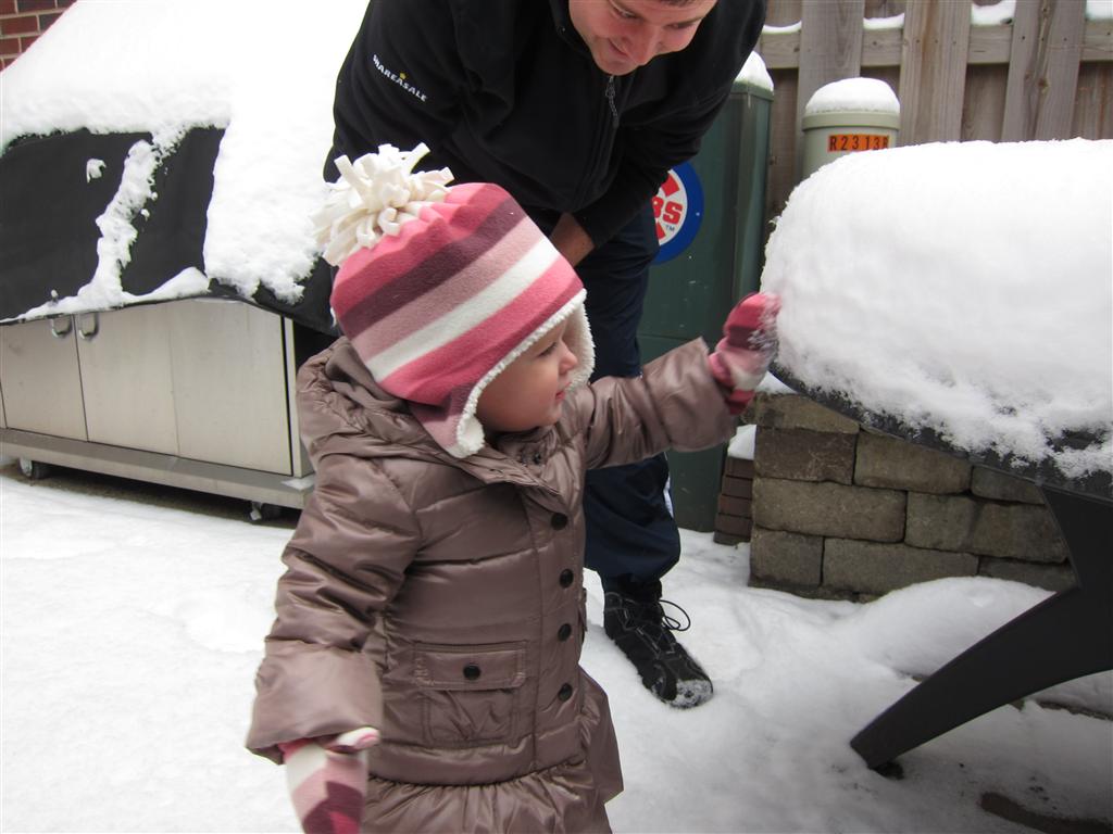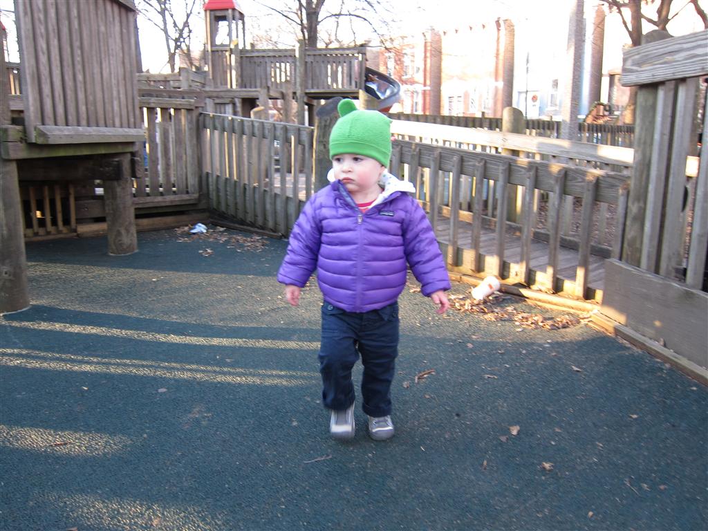 This week brought a few inches of snow on the ground, and we took the opportunity to bundle Eleanor up and take her out into the backyard (Sorry Henry – You’ll have to wait until next year…) It took about 15 minutes to get her all dressed up into her winter finest, and about 3 minutes outside before she’d had enough and wanted to come back inside. We did get a few cute pictures though. Henry had a few firsts this week, including taking a bottle and using a pacifier. The bottle was highly successful, the pacifier only lasted a few minutes. Both Eleanor and Henry went to their first birthday party for a “friend” – Zach our neighbor. He hosted the party at a play gym that Eleanor loved. Henry slept for a bit, and then cried for the rest.
