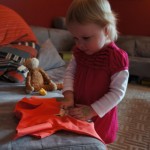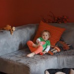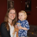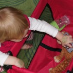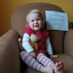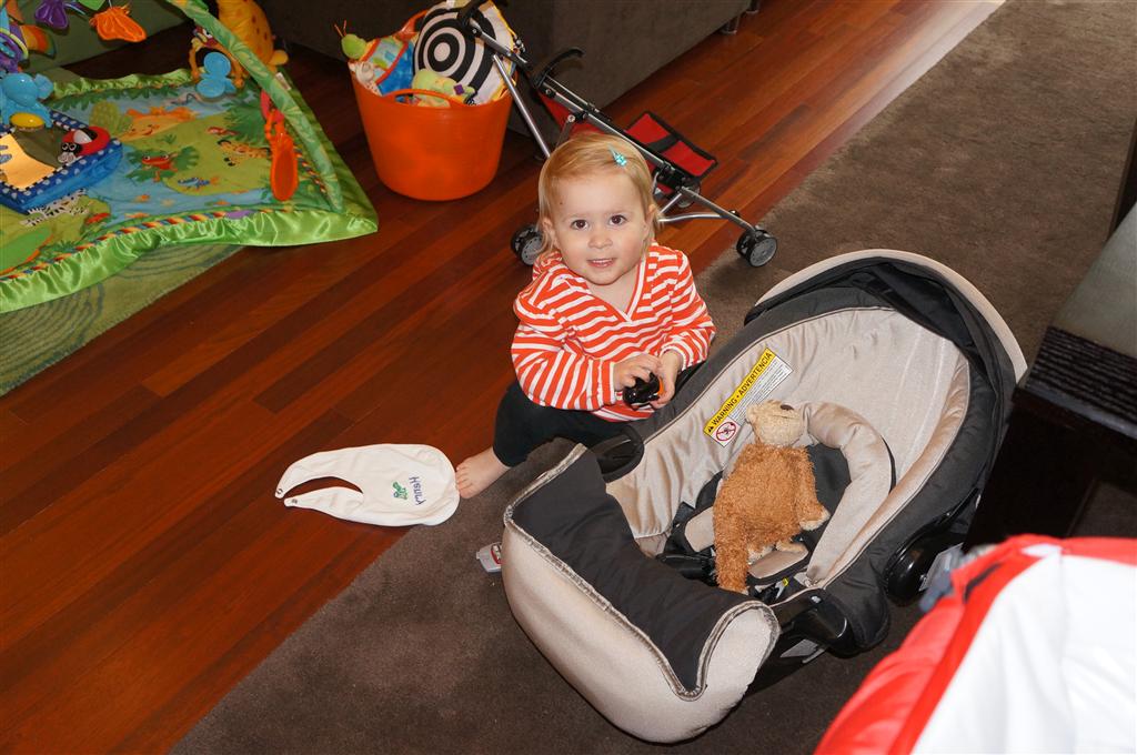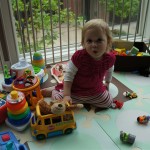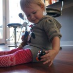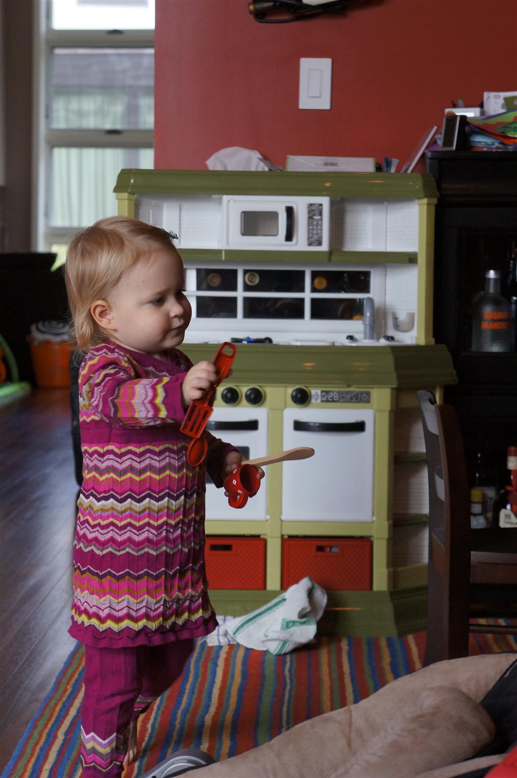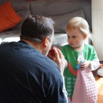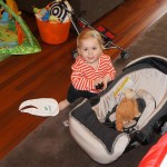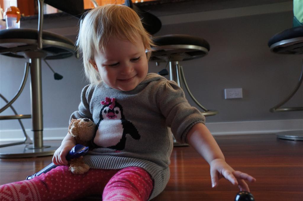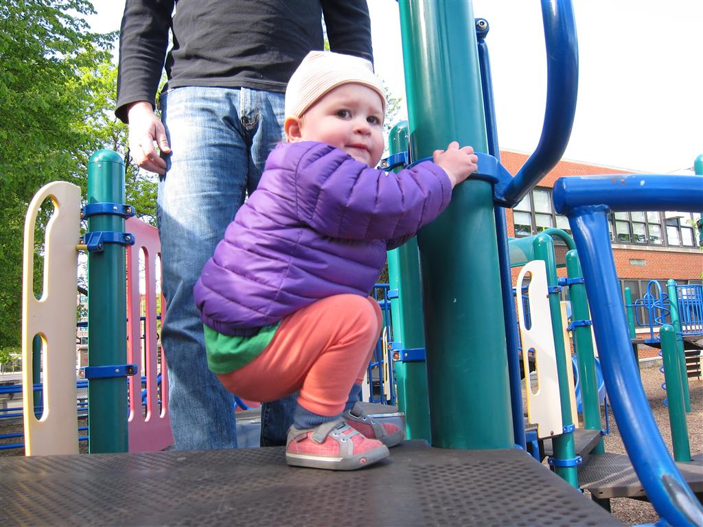 Eleanor has been working on saying longer phrases. She often says them in a kind of rapid mumble, so you have to be paying attention, but she will say four and even five word phrases. Most of the time it is imitating something that Mom or Dad does. We are also trying to teach her to smile for the camera – thus a few strange teeth bearing expressions in this week’s gallery :)