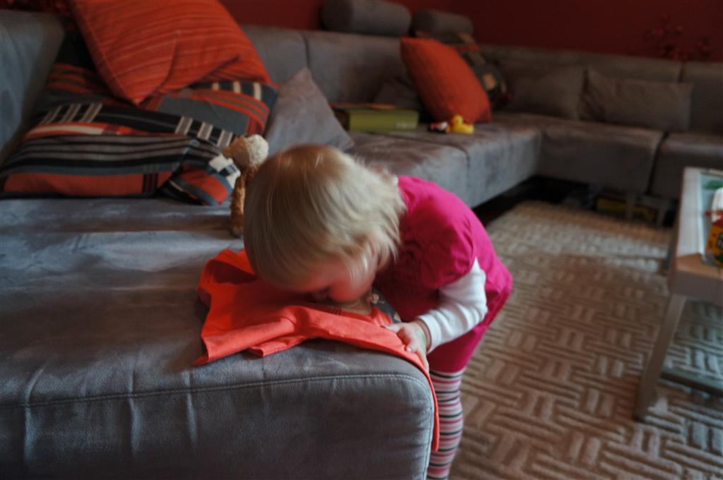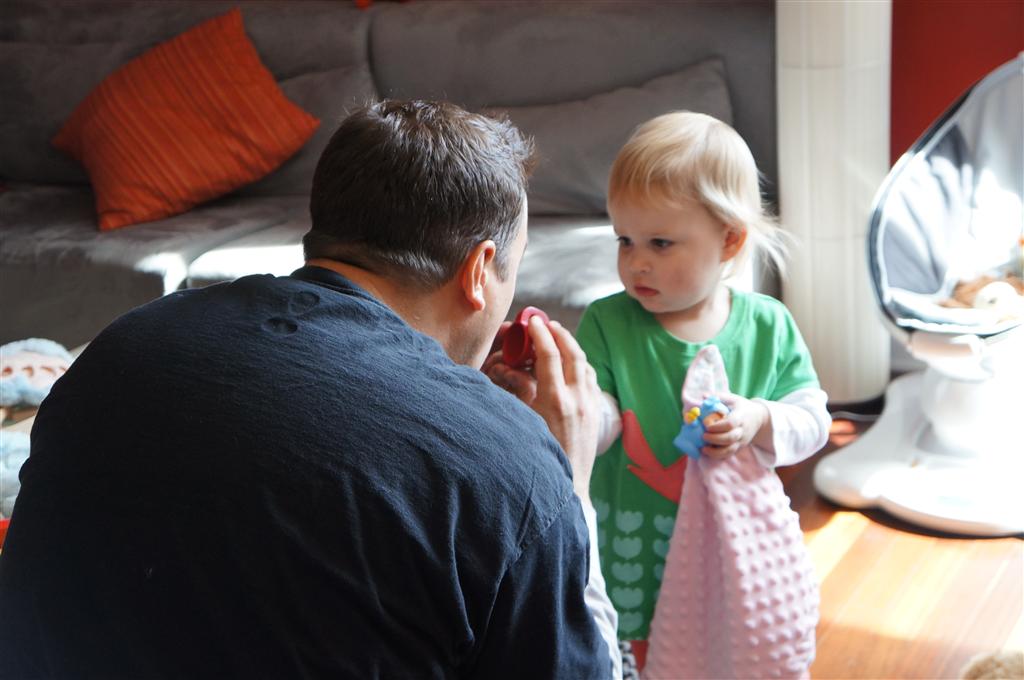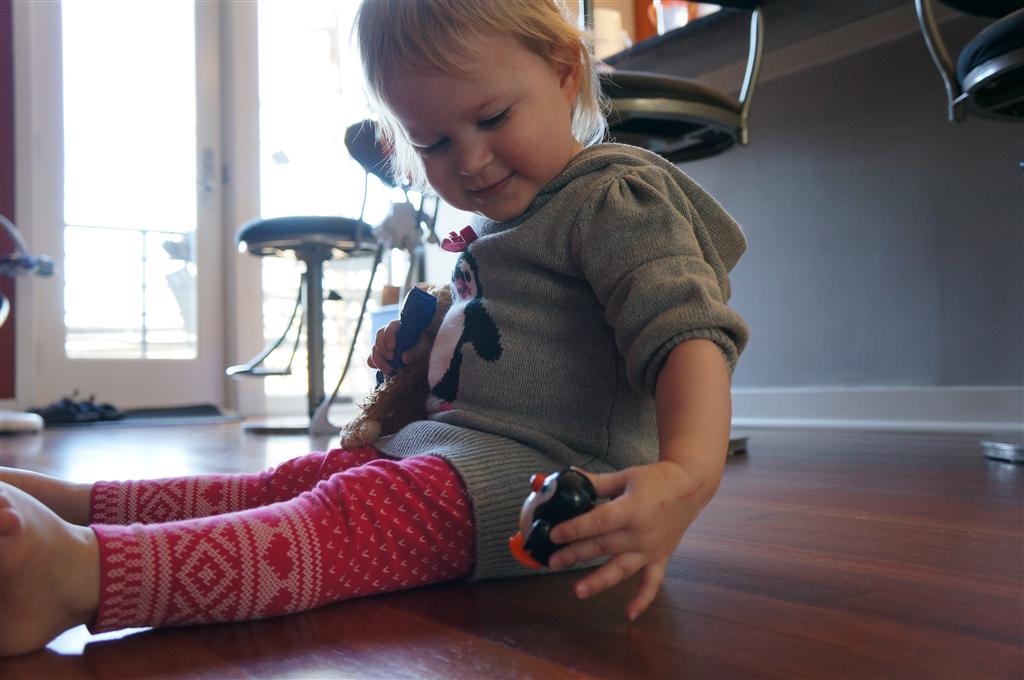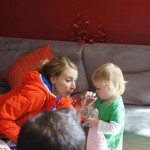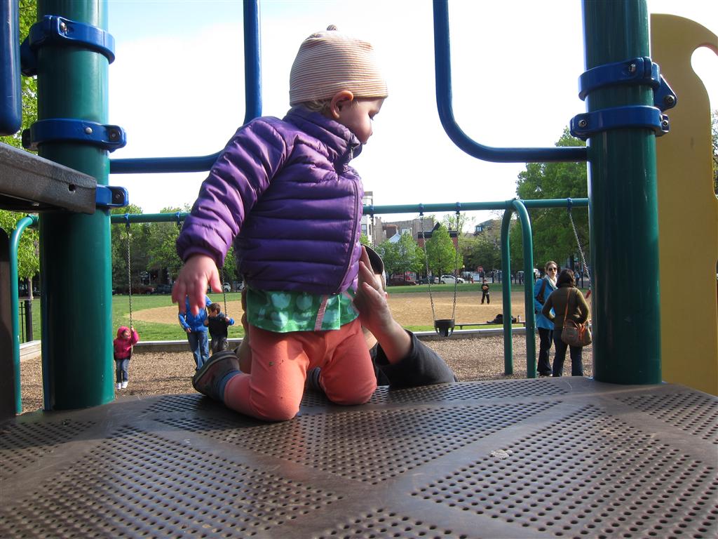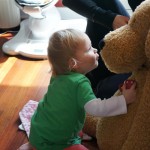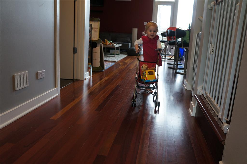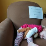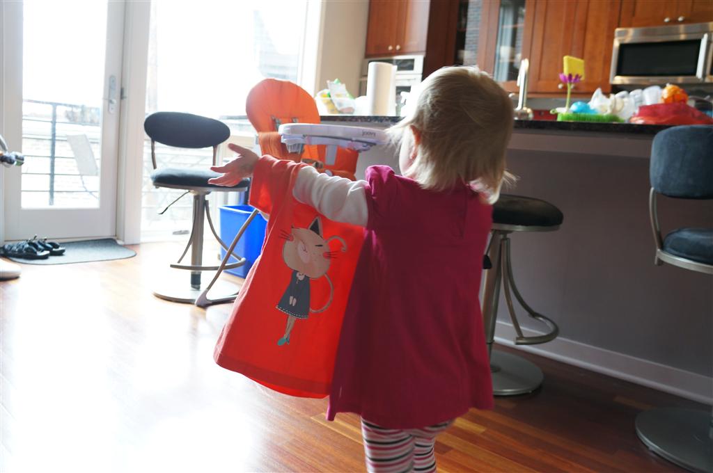 Eleanor has been working on saying longer phrases. She often says them in a kind of rapid mumble, so you have to be paying attention, but she will say four and even five word phrases. Most of the time it is imitating something that Mom or Dad does. We are also trying to teach her to smile for the camera – thus a few strange teeth bearing expressions in this week’s gallery :)