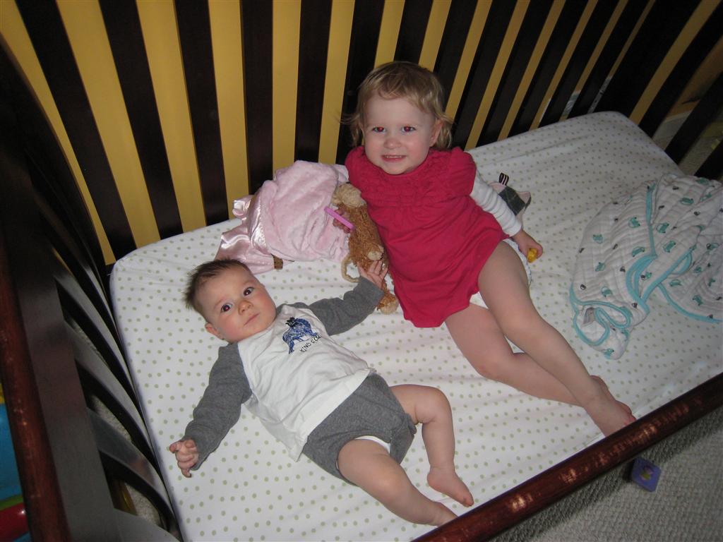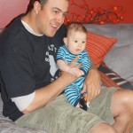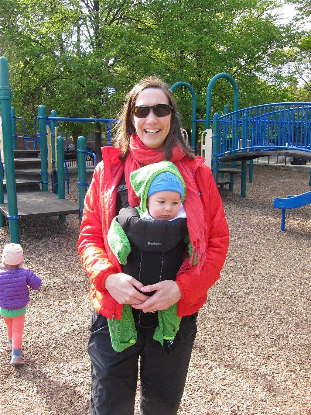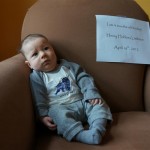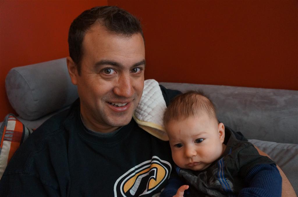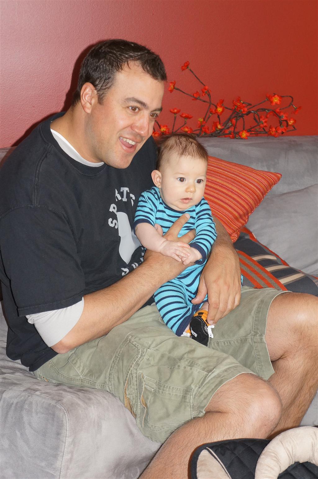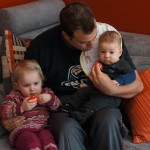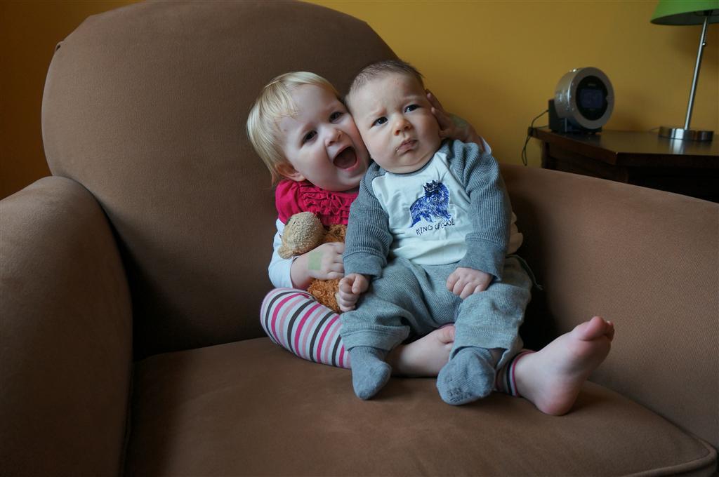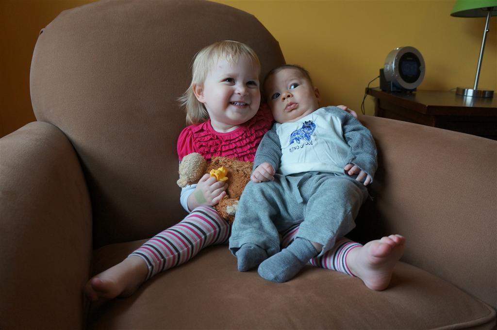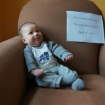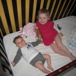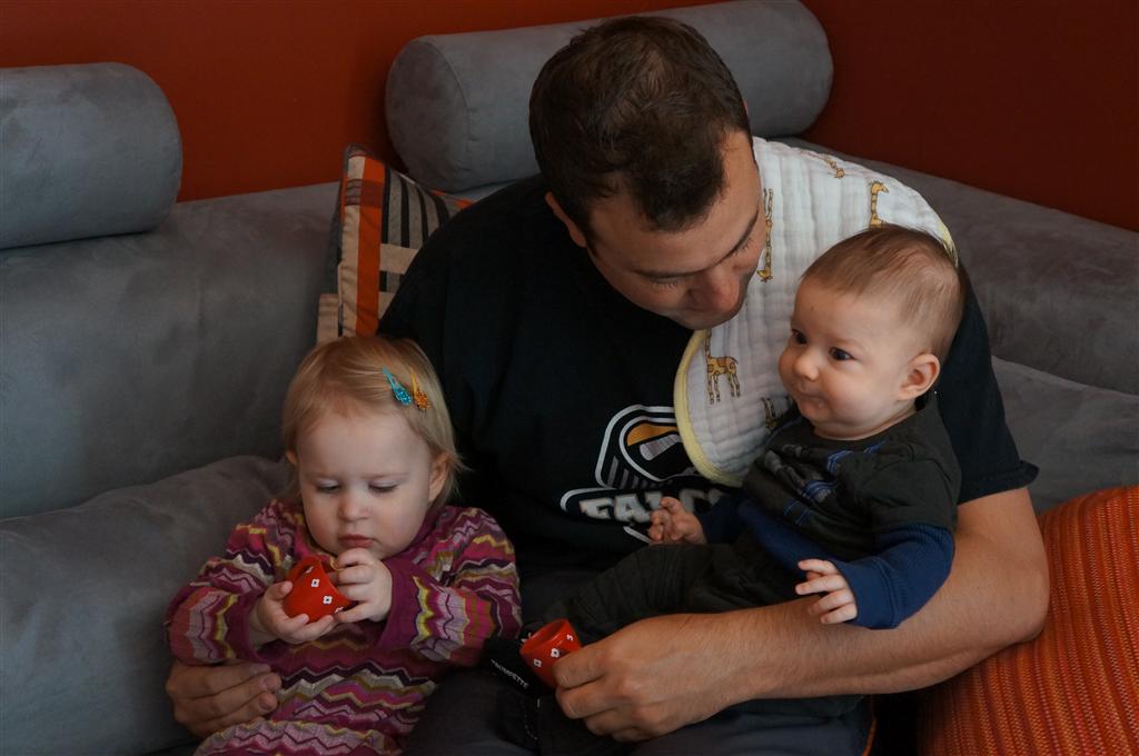 Henry turned four months old this week! He celebrated with a couple of new tricks. First, he can now make a razzing noise, and second, he can roll over if we prop him up on his arms during tummy time. I’m not quite ready to give him full credit for rolling over, becuse we have to help him get his arms under him, but it is definitely close. His head control is also coming along, he can now sit in the bumpo chair, and tonight he tried the jumparoo for the first time. Eleanor’s response was “El-nor”, which is her typical response when Henry is doing something, and it means “now it’s Eleanor’s turn”. We had to explain to her that she would no longer fit in the jumparoo. Henry can also now grab his own toes – which is always fun.