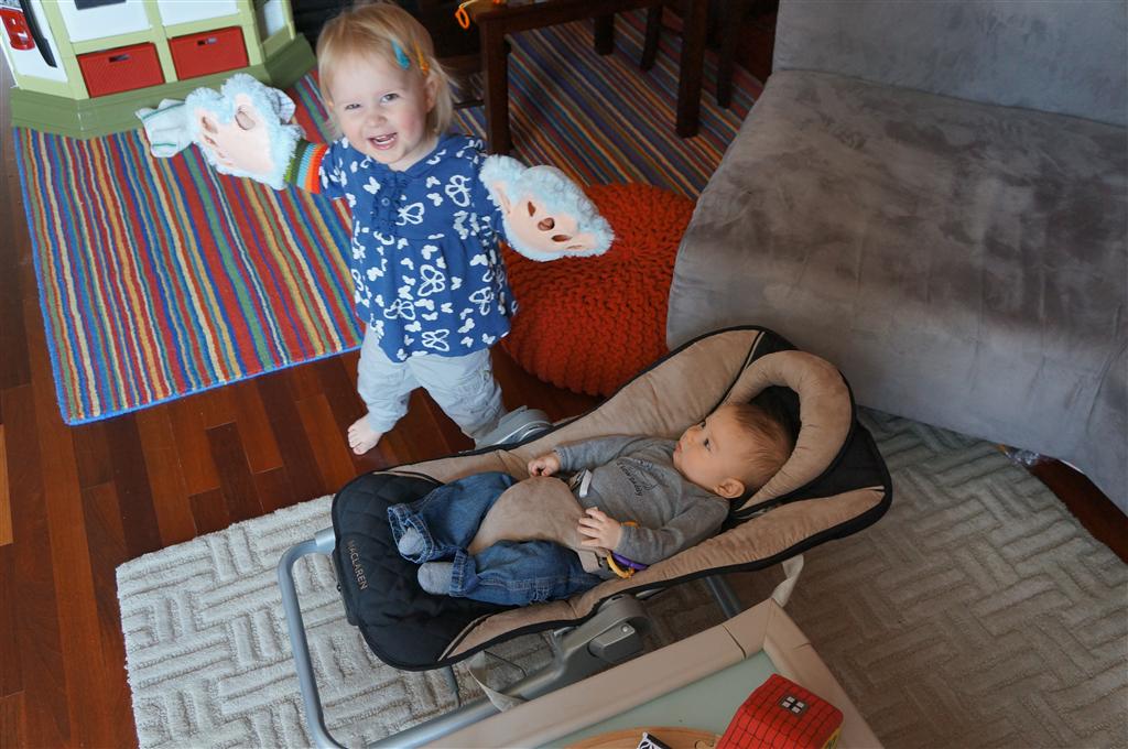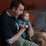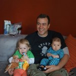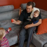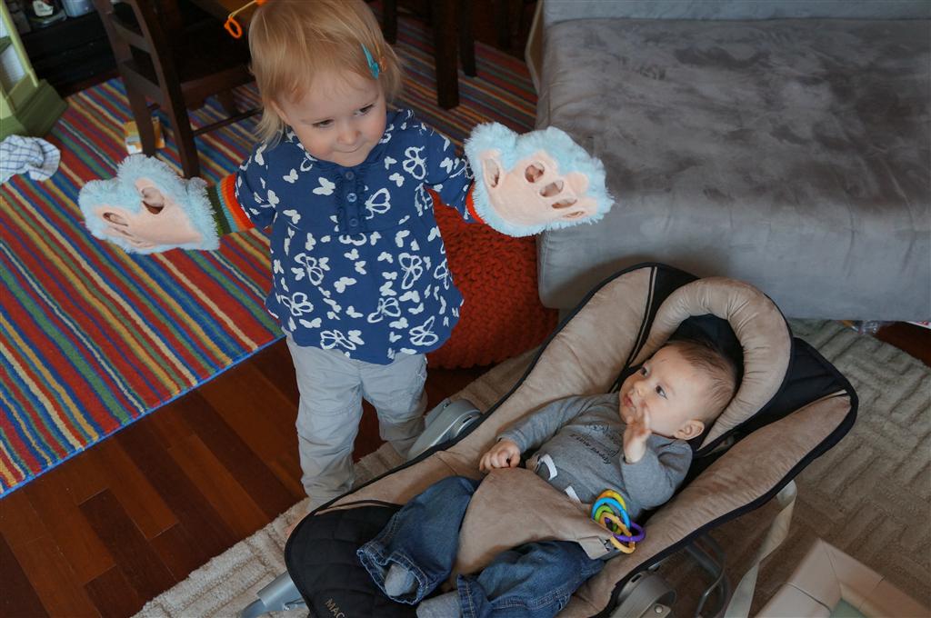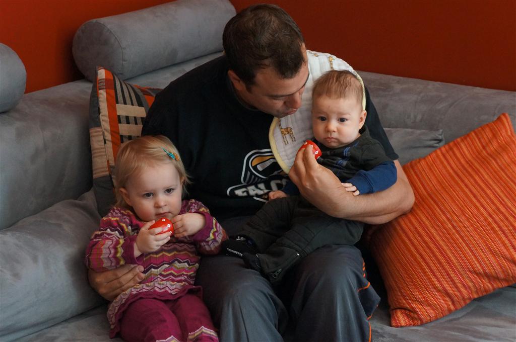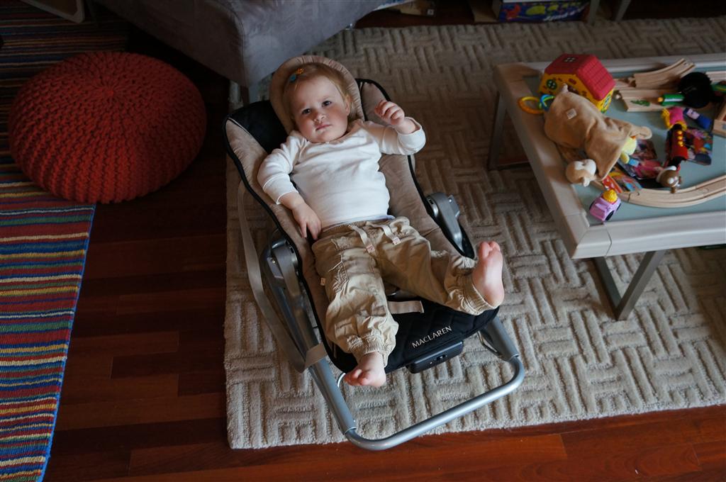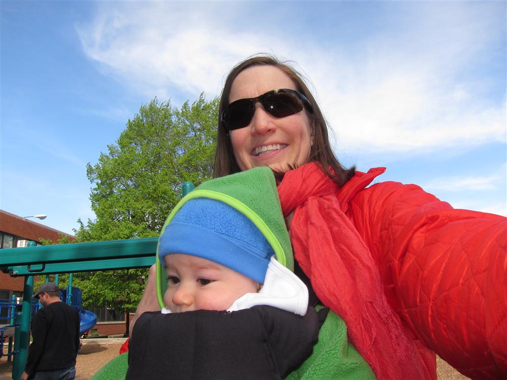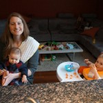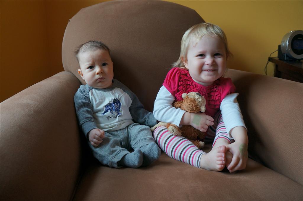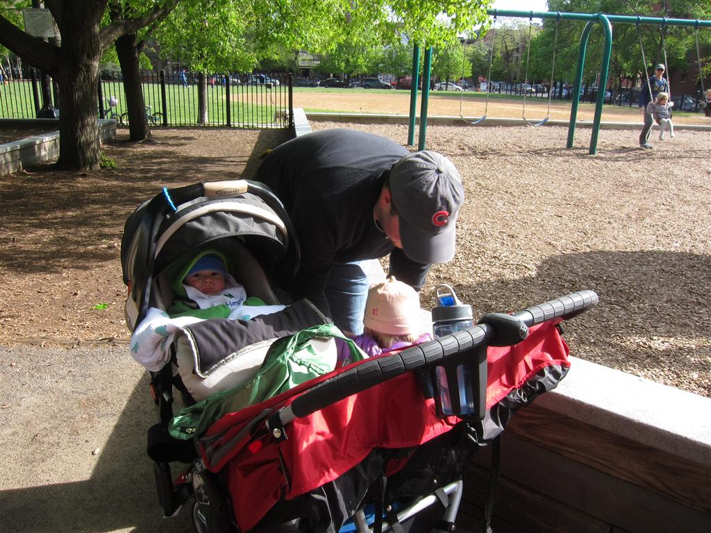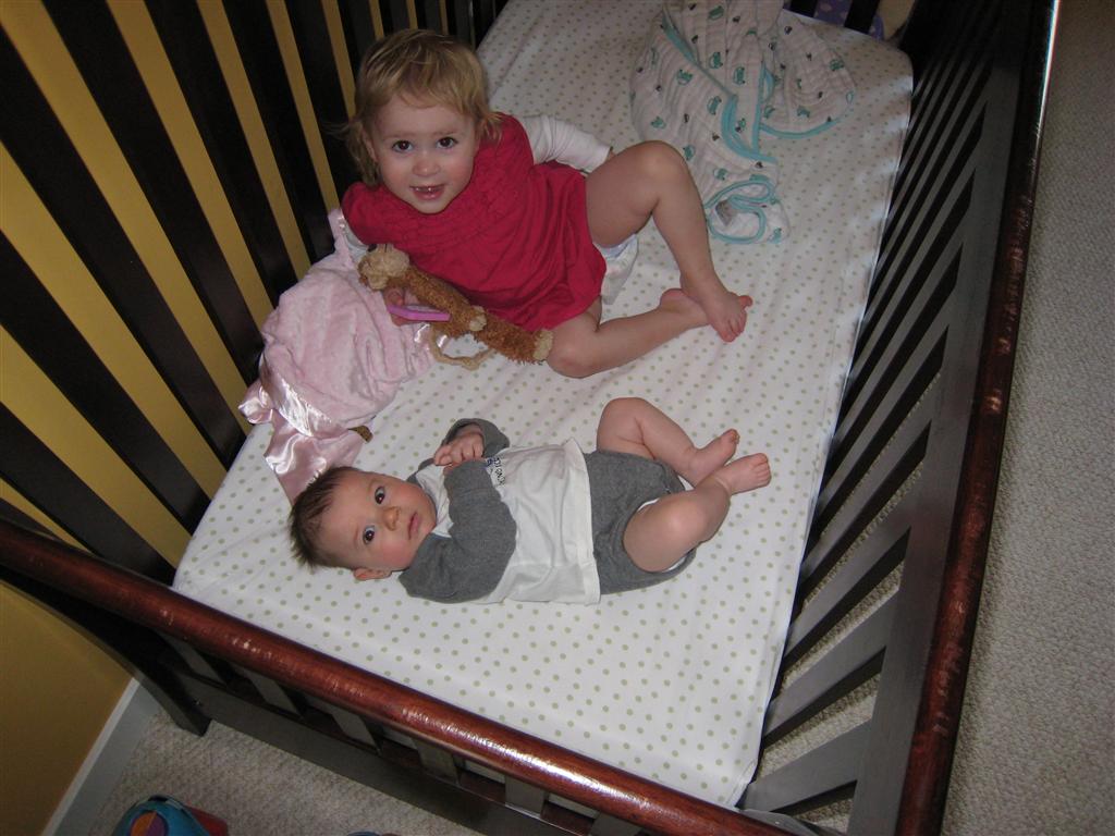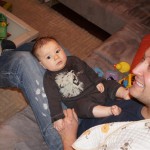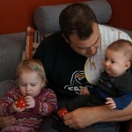 Henry turned four months old this week! He celebrated with a couple of new tricks. First, he can now make a razzing noise, and second, he can roll over if we prop him up on his arms during tummy time. I’m not quite ready to give him full credit for rolling over, becuse we have to help him get his arms under him, but it is definitely close. His head control is also coming along, he can now sit in the bumpo chair, and tonight he tried the jumparoo for the first time. Eleanor’s response was “El-nor”, which is her typical response when Henry is doing something, and it means “now it’s Eleanor’s turn”. We had to explain to her that she would no longer fit in the jumparoo. Henry can also now grab his own toes – which is always fun.