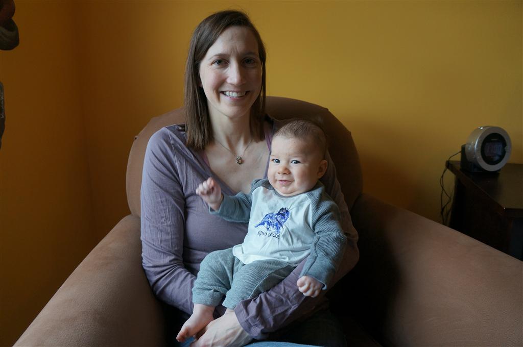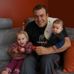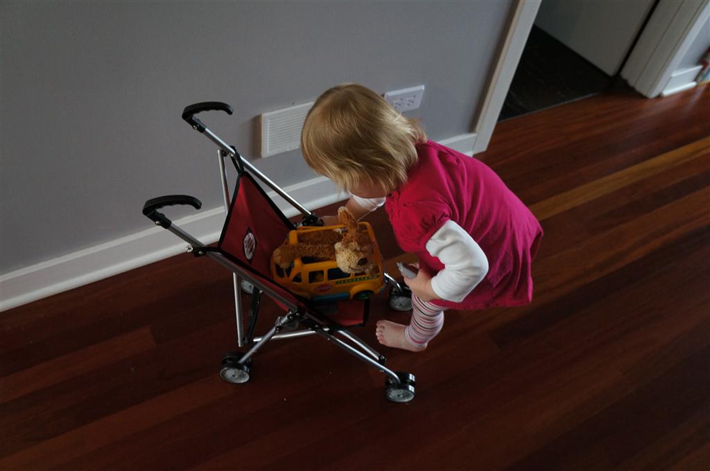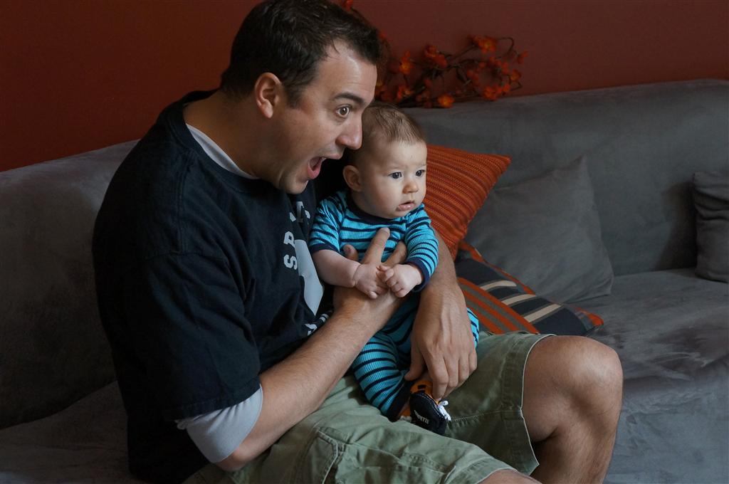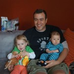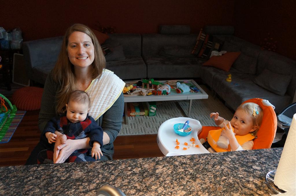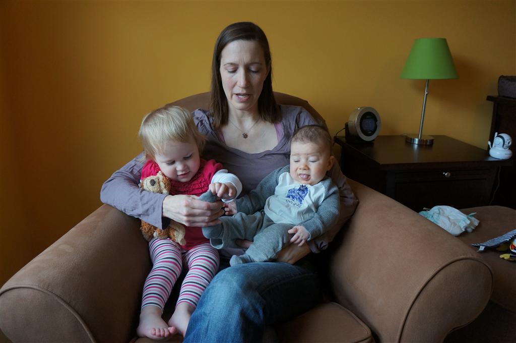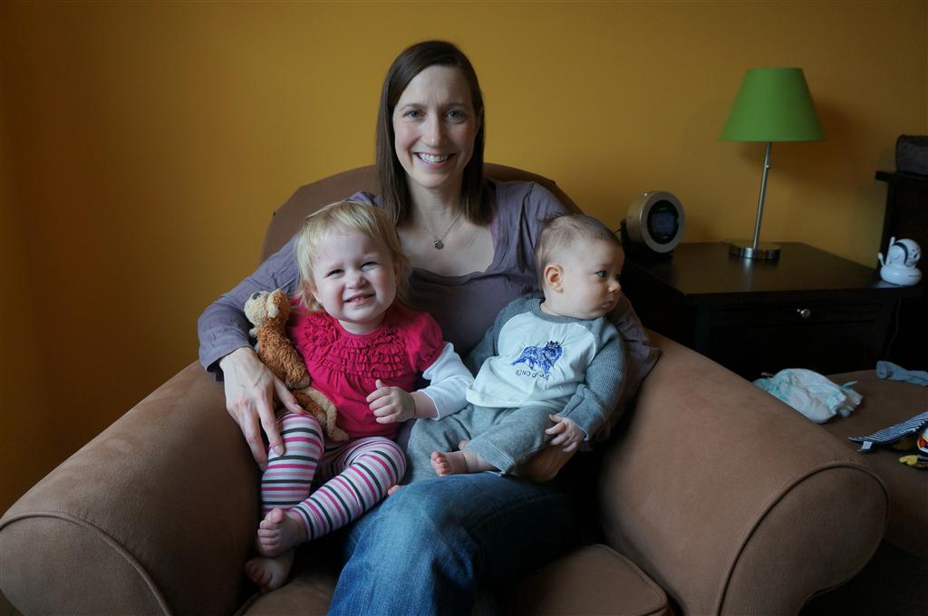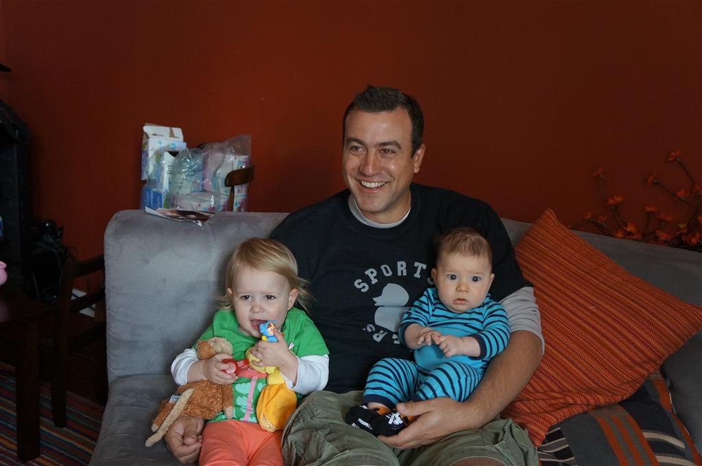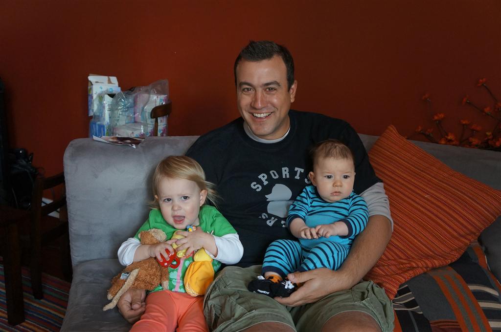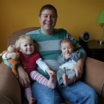 Henry turned four months old this week! He celebrated with a couple of new tricks. First, he can now make a razzing noise, and second, he can roll over if we prop him up on his arms during tummy time. I’m not quite ready to give him full credit for rolling over, becuse we have to help him get his arms under him, but it is definitely close. His head control is also coming along, he can now sit in the bumpo chair, and tonight he tried the jumparoo for the first time. Eleanor’s response was “El-nor”, which is her typical response when Henry is doing something, and it means “now it’s Eleanor’s turn”. We had to explain to her that she would no longer fit in the jumparoo. Henry can also now grab his own toes – which is always fun.