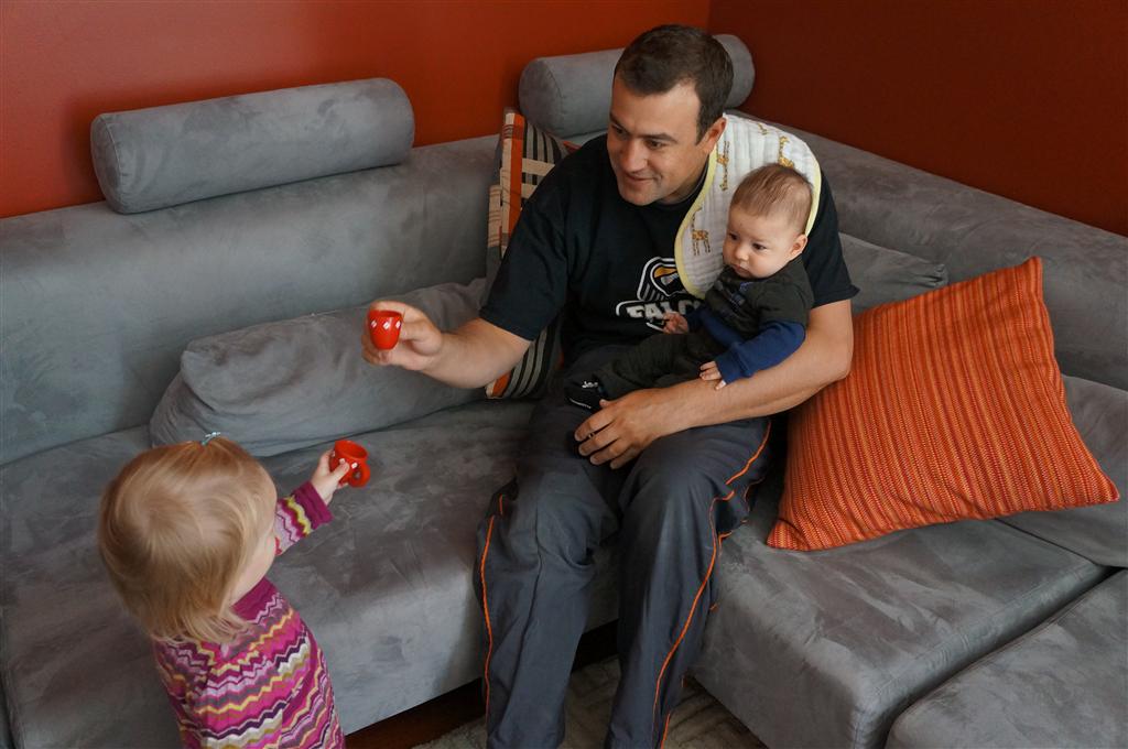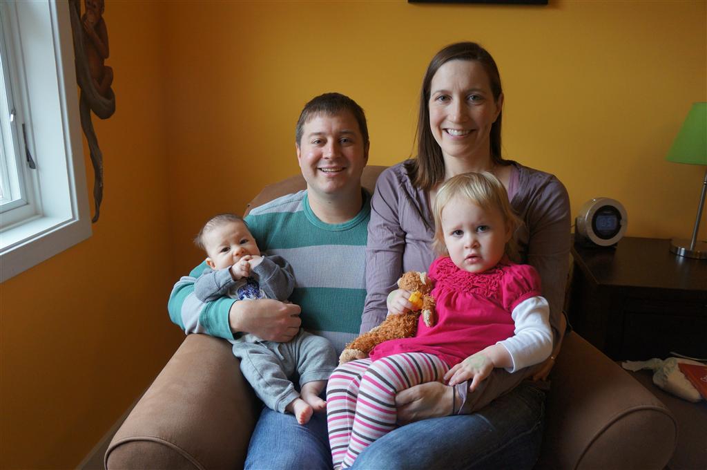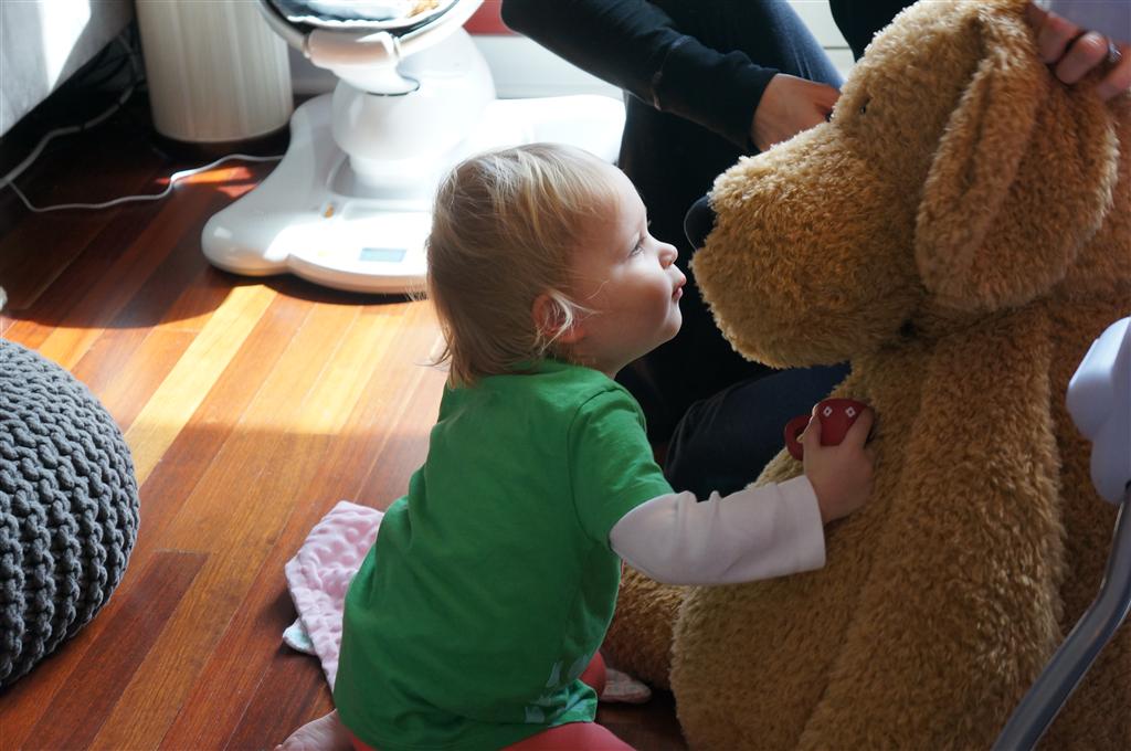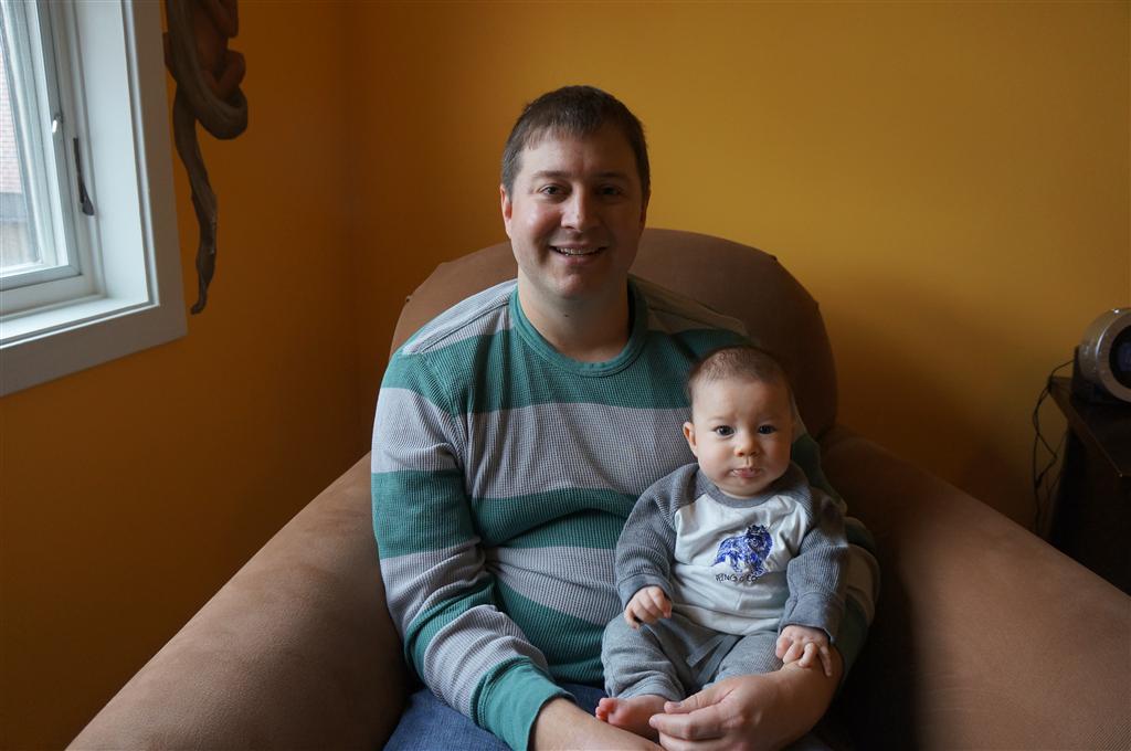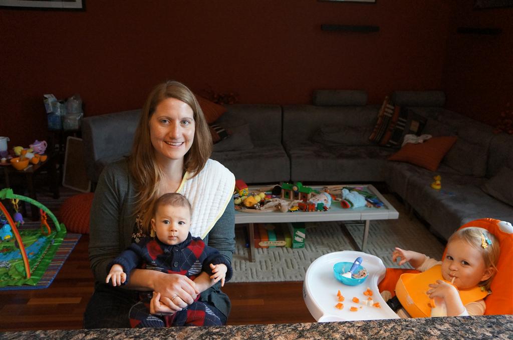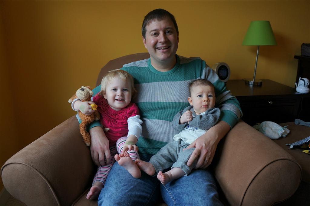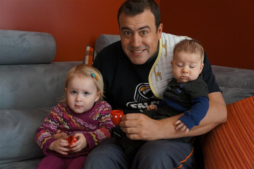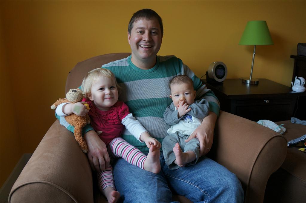 Henry turned four months old this week! He celebrated with a couple of new tricks. First, he can now make a razzing noise, and second, he can roll over if we prop him up on his arms during tummy time. I’m not quite ready to give him full credit for rolling over, becuse we have to help him get his arms under him, but it is definitely close. His head control is also coming along, he can now sit in the bumpo chair, and tonight he tried the jumparoo for the first time. Eleanor’s response was “El-nor”, which is her typical response when Henry is doing something, and it means “now it’s Eleanor’s turn”. We had to explain to her that she would no longer fit in the jumparoo. Henry can also now grab his own toes – which is always fun.