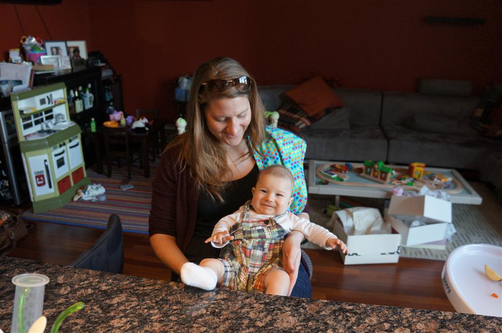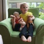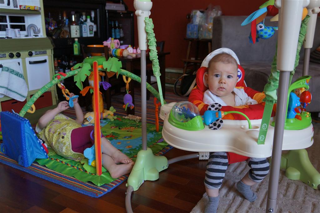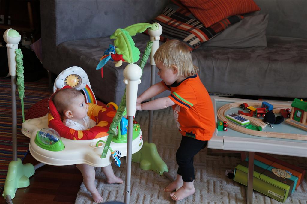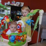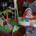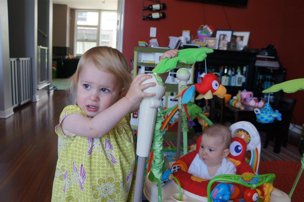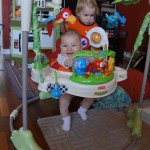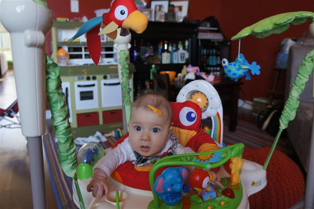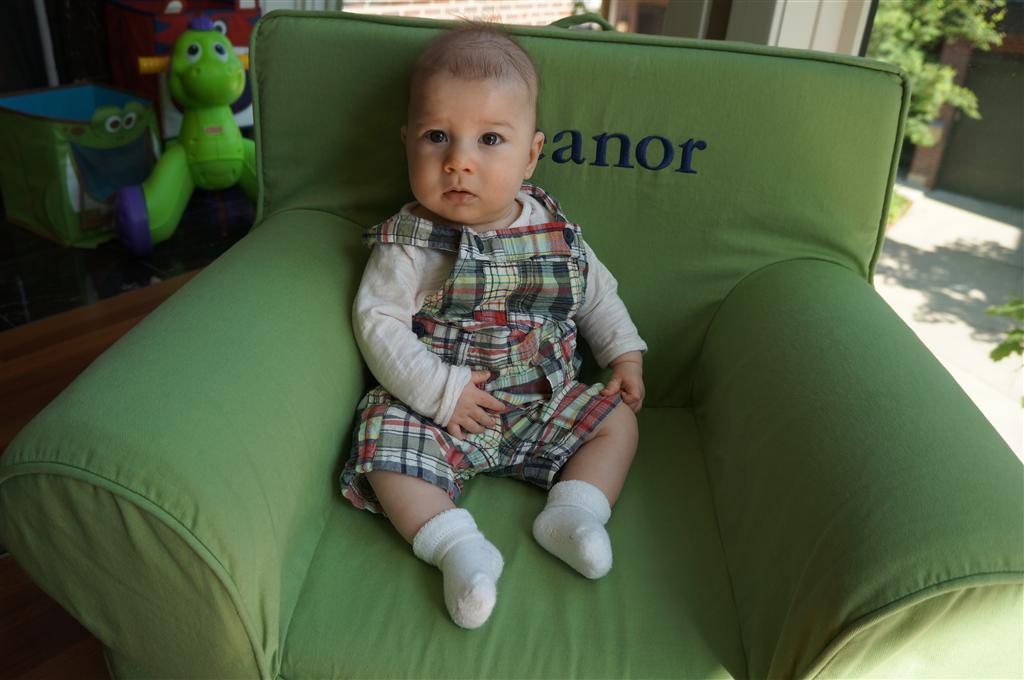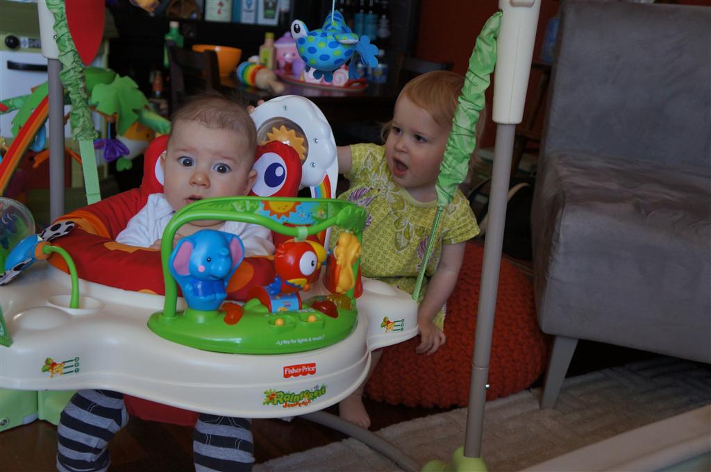 Happy Mother’s Day! It was a fun packed week, as the photo count will attest – this week’s selections were culled from 1200 pictures – all taken this week. Time to turn off the rapid fire feature of our camera. At any rate, I finally managed to capture Henry’s teeth – the two bottom front are coming in nicely. Henry is really taking to his jumparoo, it seems like just yesterday we put him in there for the first time, and now he jumps and bounces every time he gets the chance. Eleanor also enjoys giving him a little sisterly help, both with bouncing and reaching the toys. I’m pretty sure he is going to roll over any day now too – he has been really close a few times. Henry also had a barrette in his hair for the first time this week, I’m sure that won’t be the last “dress up” session that Eleanor ropes him into.
