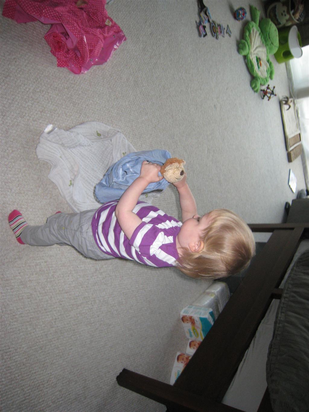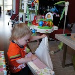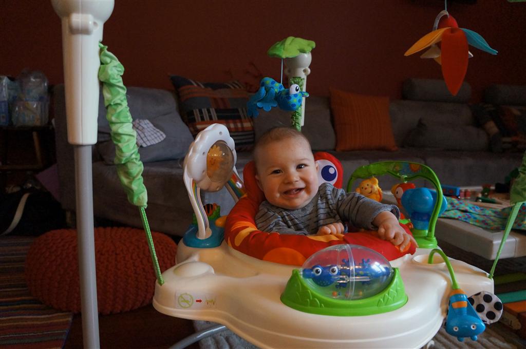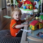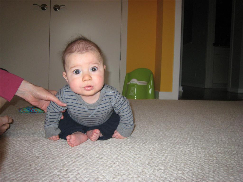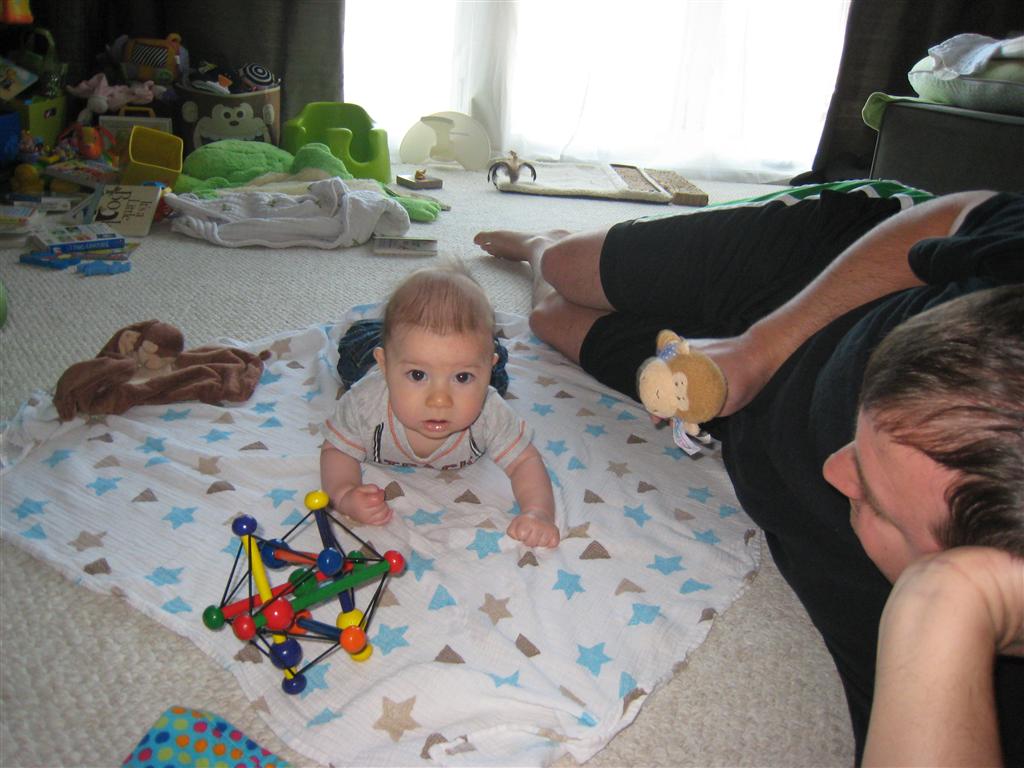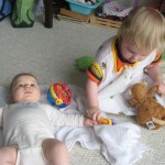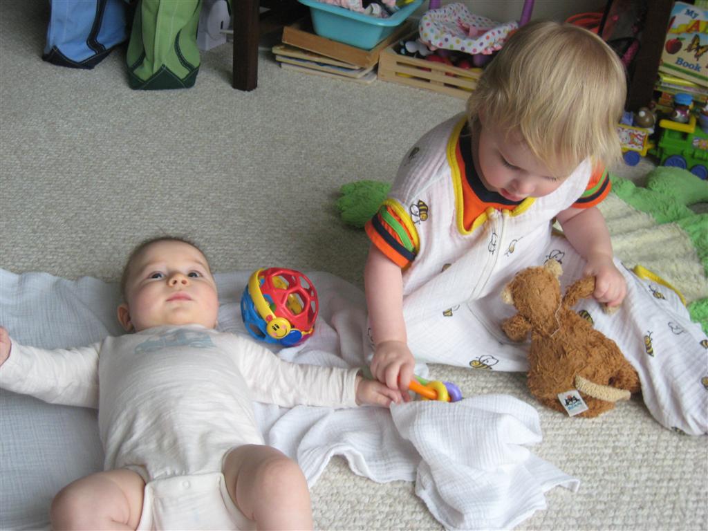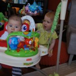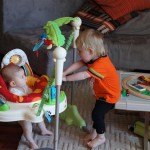 Happy Mother’s Day! It was a fun packed week, as the photo count will attest – this week’s selections were culled from 1200 pictures – all taken this week. Time to turn off the rapid fire feature of our camera. At any rate, I finally managed to capture Henry’s teeth – the two bottom front are coming in nicely. Henry is really taking to his jumparoo, it seems like just yesterday we put him in there for the first time, and now he jumps and bounces every time he gets the chance. Eleanor also enjoys giving him a little sisterly help, both with bouncing and reaching the toys. I’m pretty sure he is going to roll over any day now too – he has been really close a few times. Henry also had a barrette in his hair for the first time this week, I’m sure that won’t be the last “dress up” session that Eleanor ropes him into.