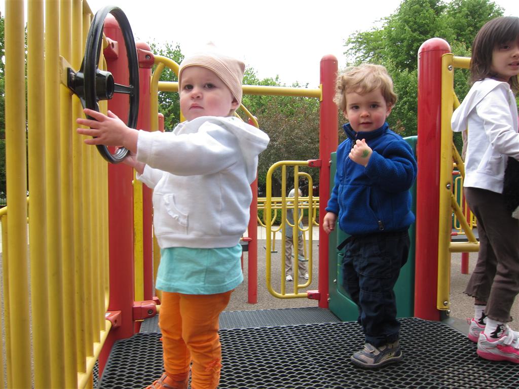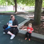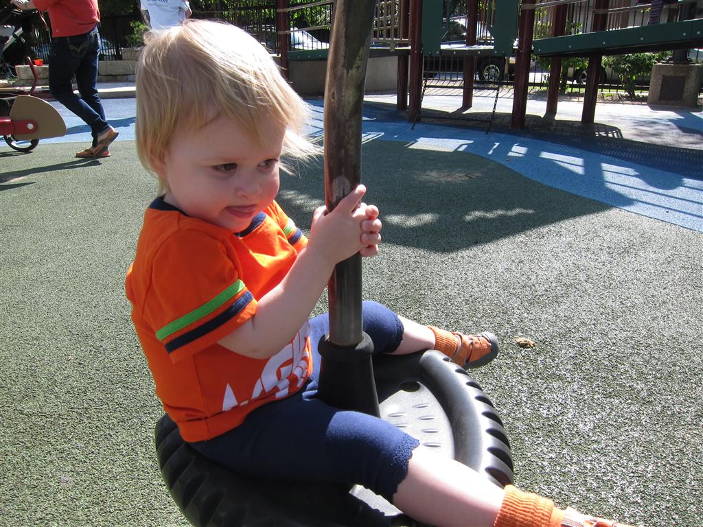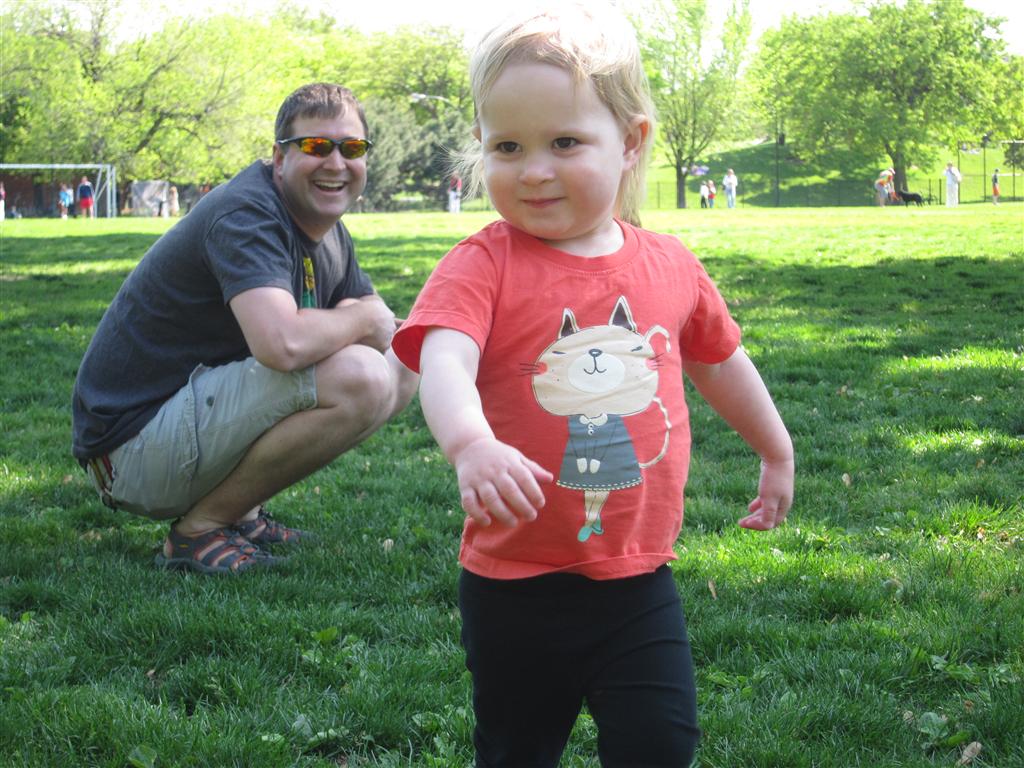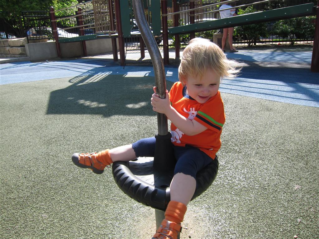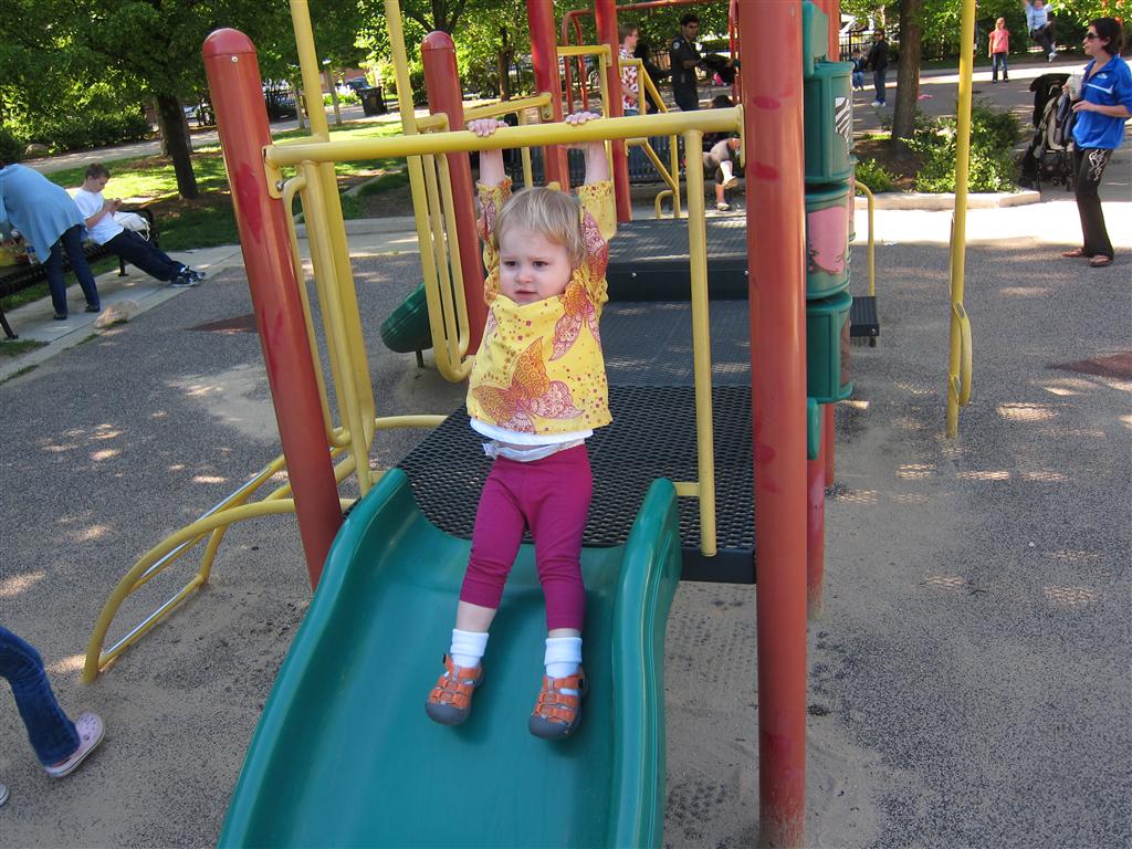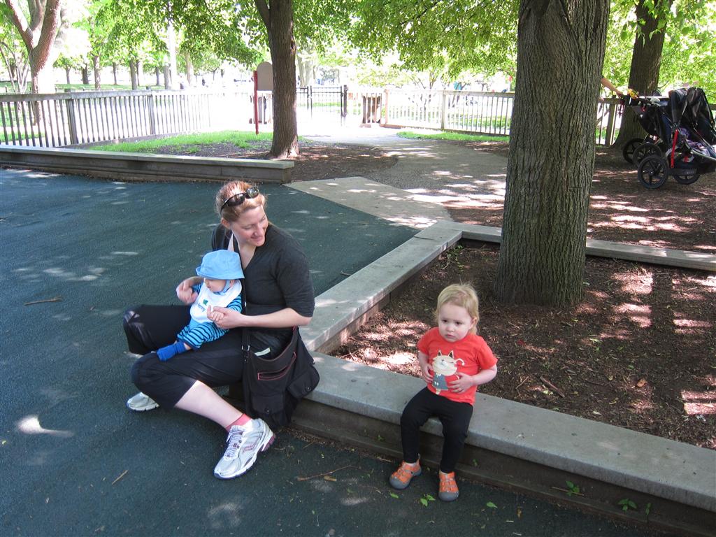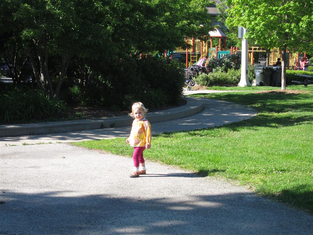 Eleanor got lots of park time this week – plus on Saturday she participated in her first “Fun Run” – a 3 mile stroller ride compliments of Mom and LaLa. She and Henry donned their Under Armor outfits for the occasion (thanks Grandma!) . We celebrated Mother’s Day with a fun day out at the park, and a visit to Dairy Queen – our first of the summer. Eleanor really enjoyed the extended park session, especially playing in the grass. I’m pretty sure she is looking forward to summertime.