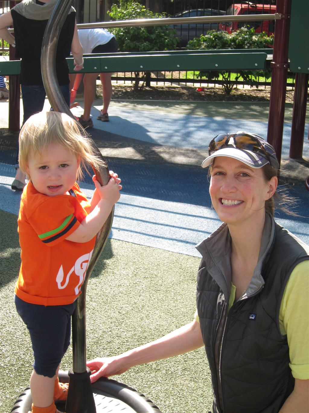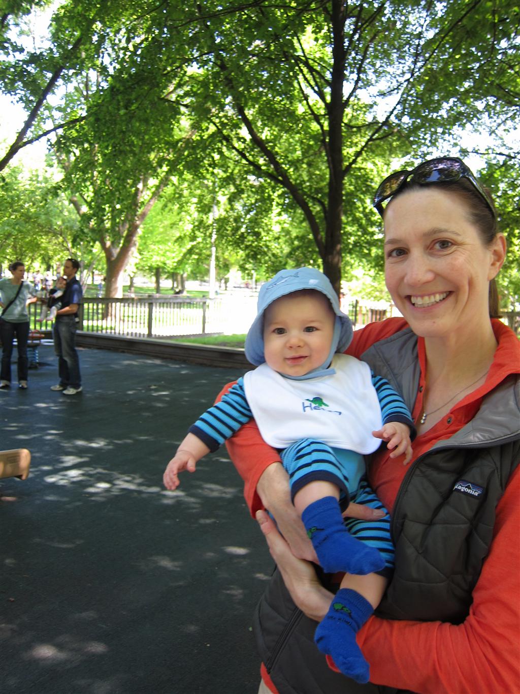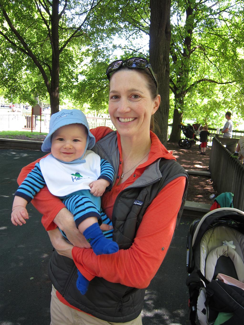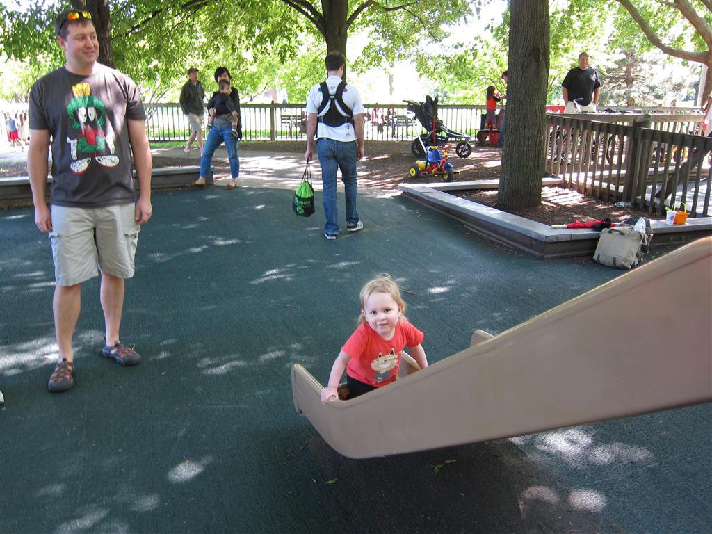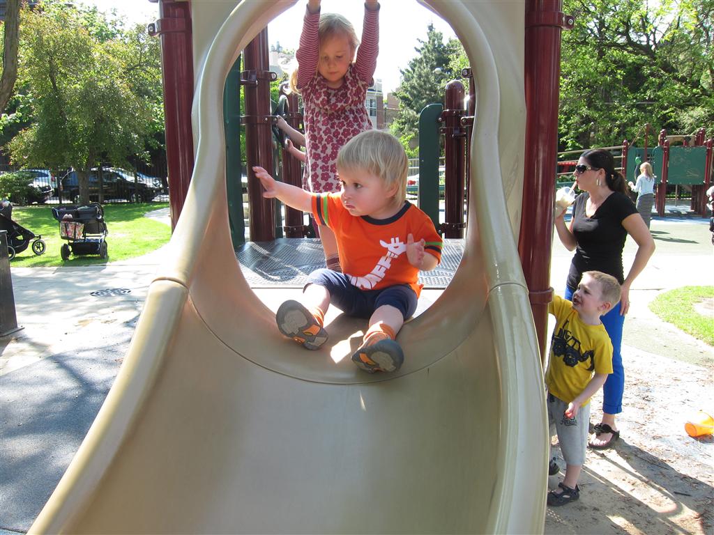 Eleanor got lots of park time this week – plus on Saturday she participated in her first “Fun Run” – a 3 mile stroller ride compliments of Mom and LaLa. She and Henry donned their Under Armor outfits for the occasion (thanks Grandma!) . We celebrated Mother’s Day with a fun day out at the park, and a visit to Dairy Queen – our first of the summer. Eleanor really enjoyed the extended park session, especially playing in the grass. I’m pretty sure she is looking forward to summertime.
